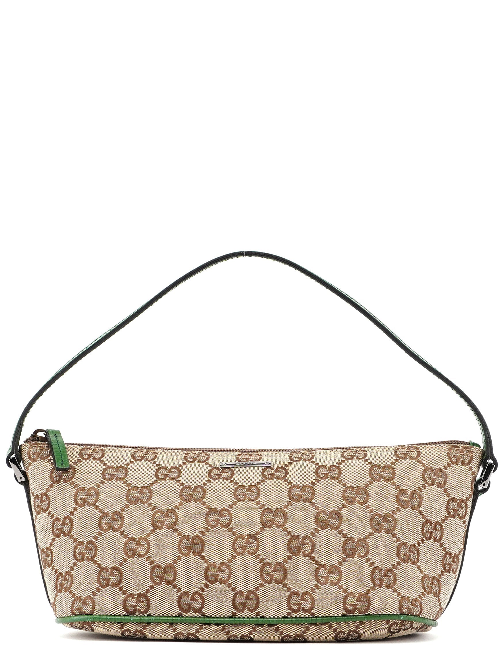 Explore timeless elegance with the Gucci GG Boat Pochette by Tom Ford, circa late 1990s. This exquisite piece combines beige GG canvas with green leather trim and silver-tone hardware. Its secure zip closure and satin-lined interior offer luxury and practicality, while the subtle Gucci plaque adds a touch of heritage.