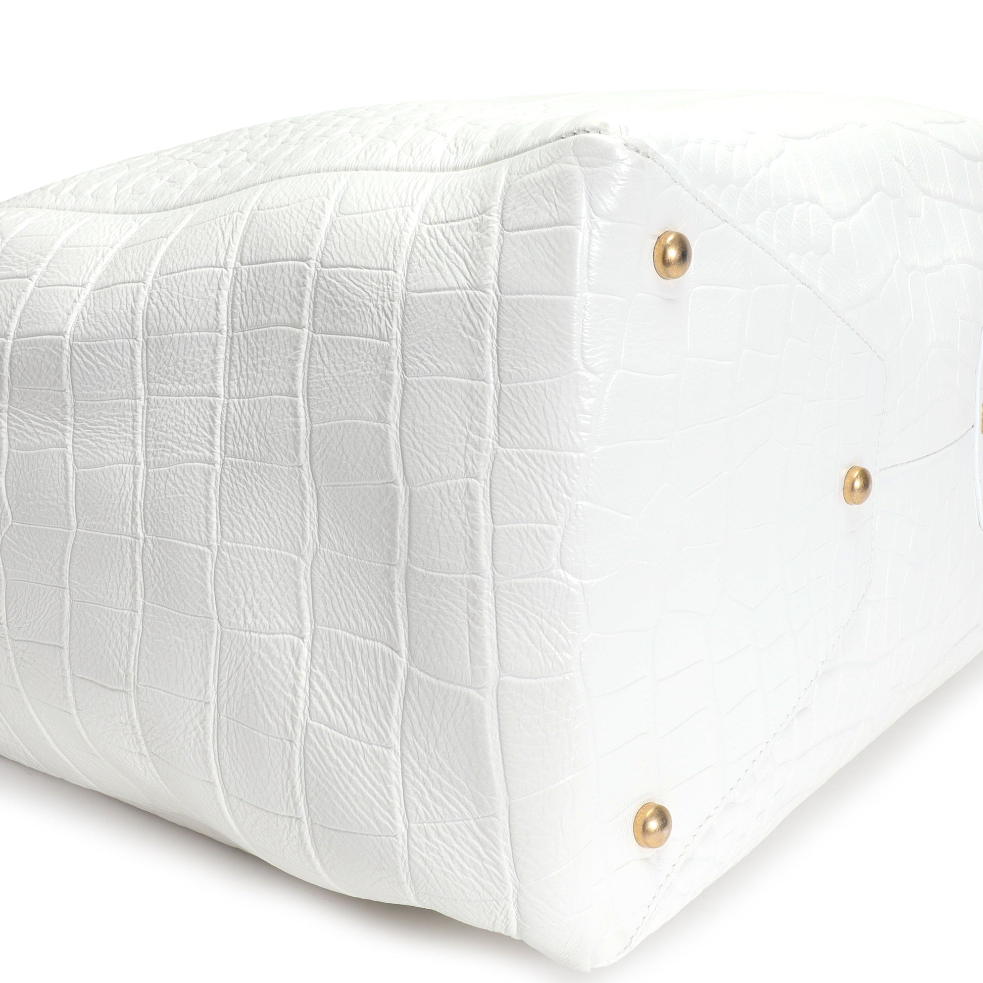 Chanel White Crocodile-Embossed Large Shopping Tote