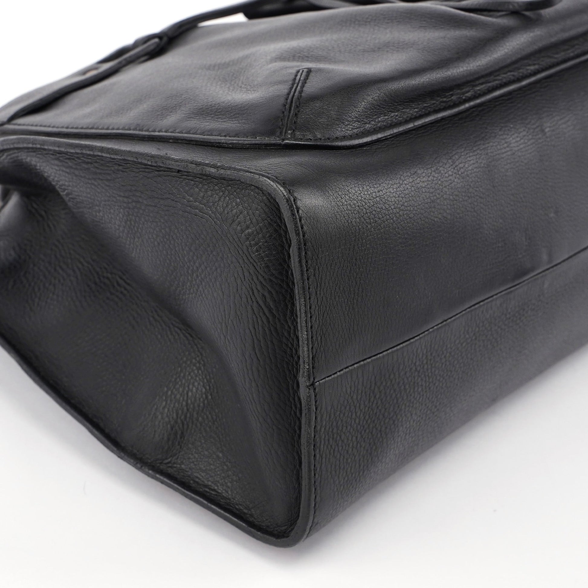 109138 Black Calfskin Bamboo Dual Handle Bag