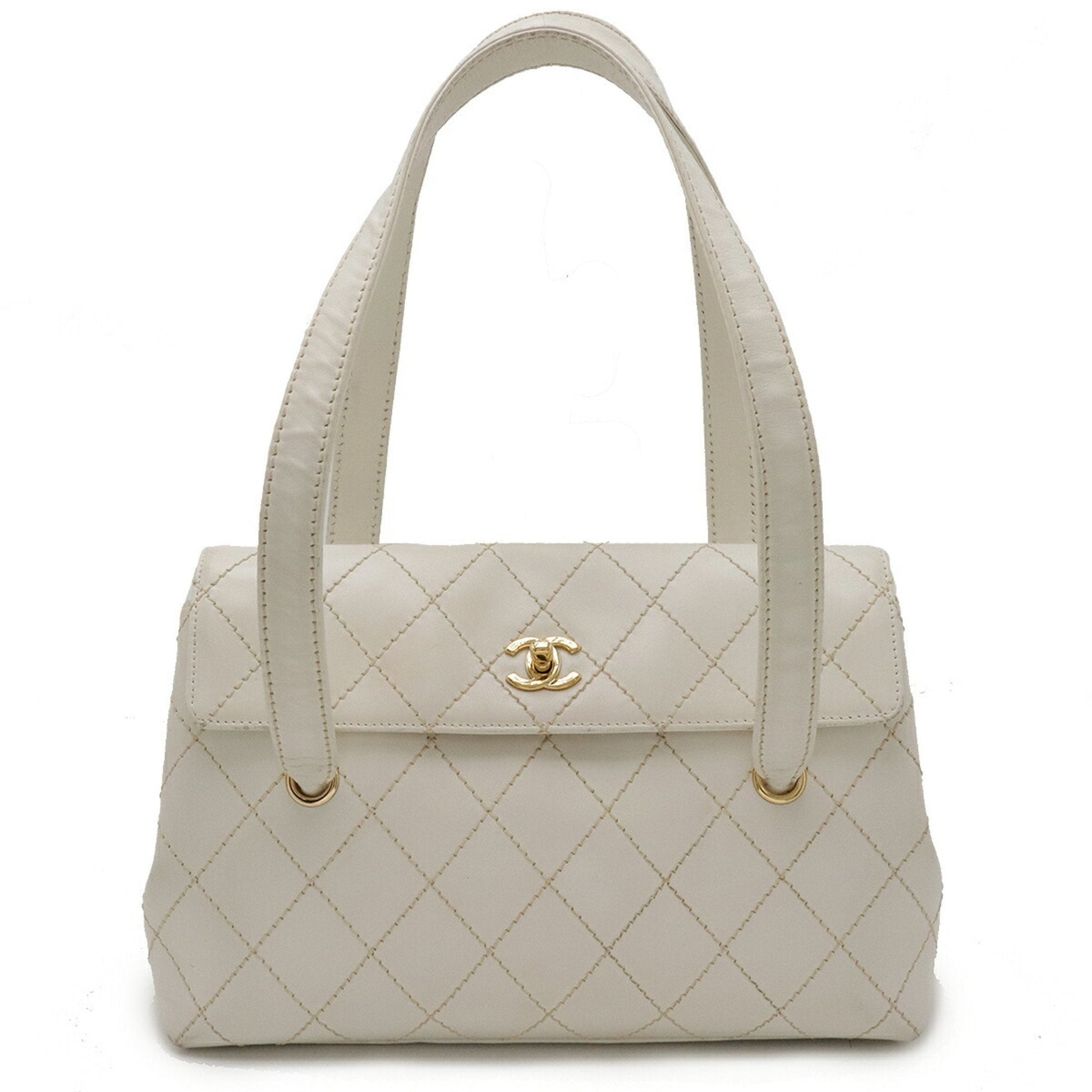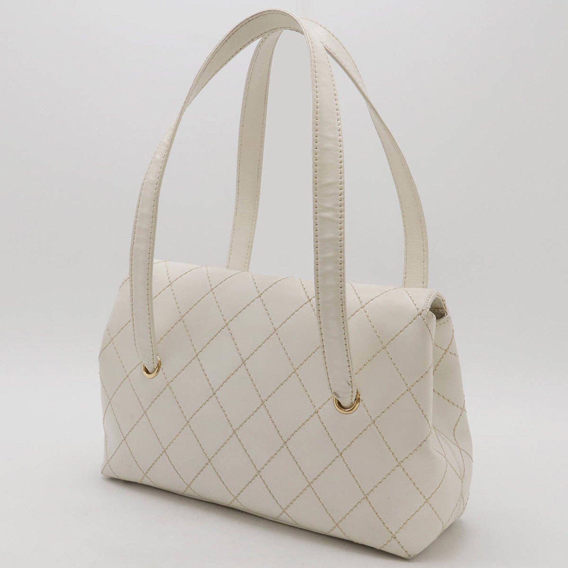 Chanel Wild Stitch White Leather Shoulder Bag Tote Bag ()