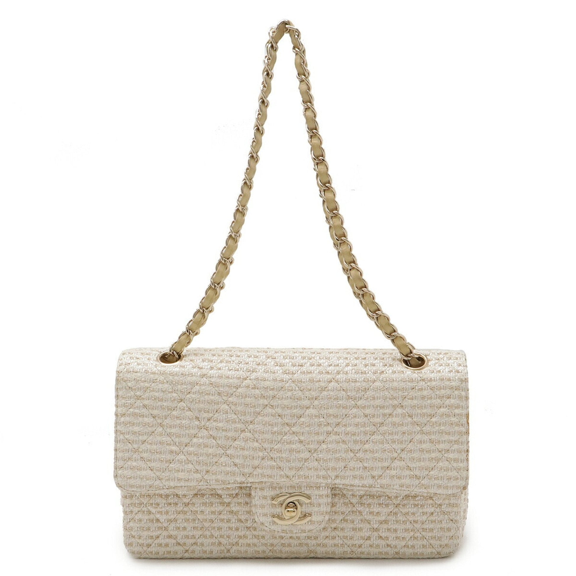 Brand: Chanel, Color: Beige, Ivory, Material: Tweed, Leather, Dimensions: 17cm x 25cm x 6.5cm / 6.69'' x 9.84'' x 2.55'', Condition: Rank AB. Rank AB Used - Traces of usage, scratches / dirt can be seen but generally in good condition. Before purchasing, please refer to the images for the exact condition of the item. Before purchasing, please refer to the images of the accessories included with the item. Damage Ranking: Slight, Insignificant