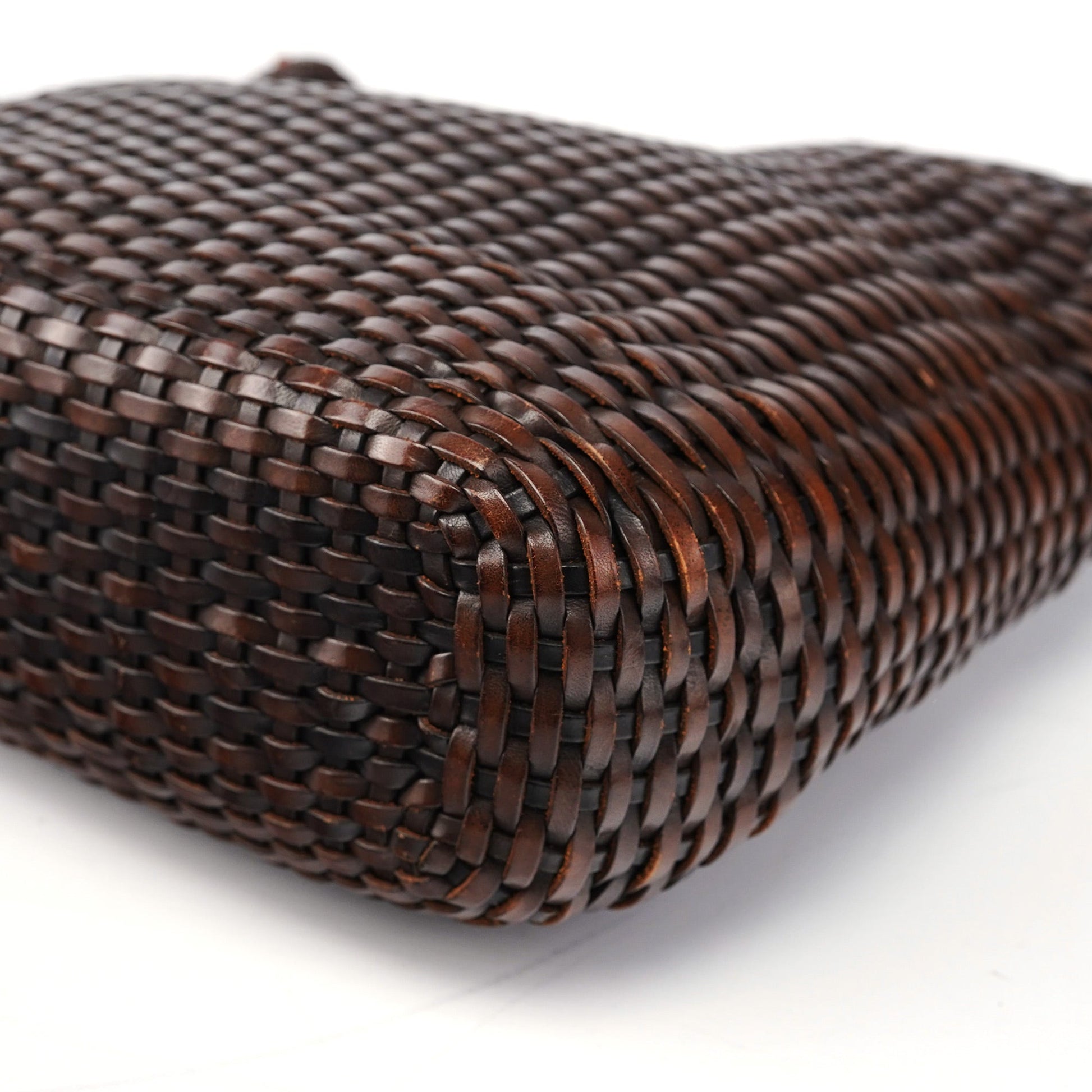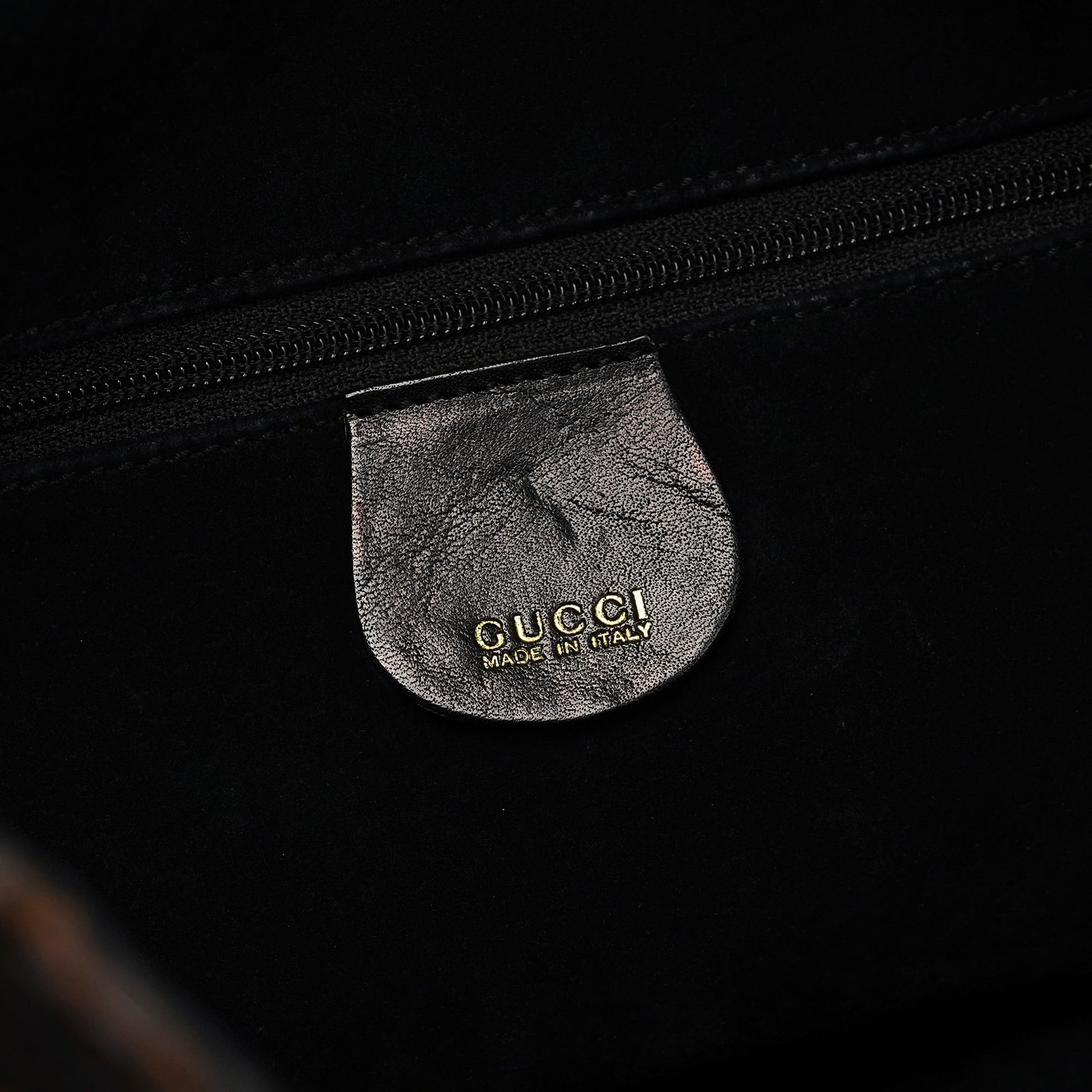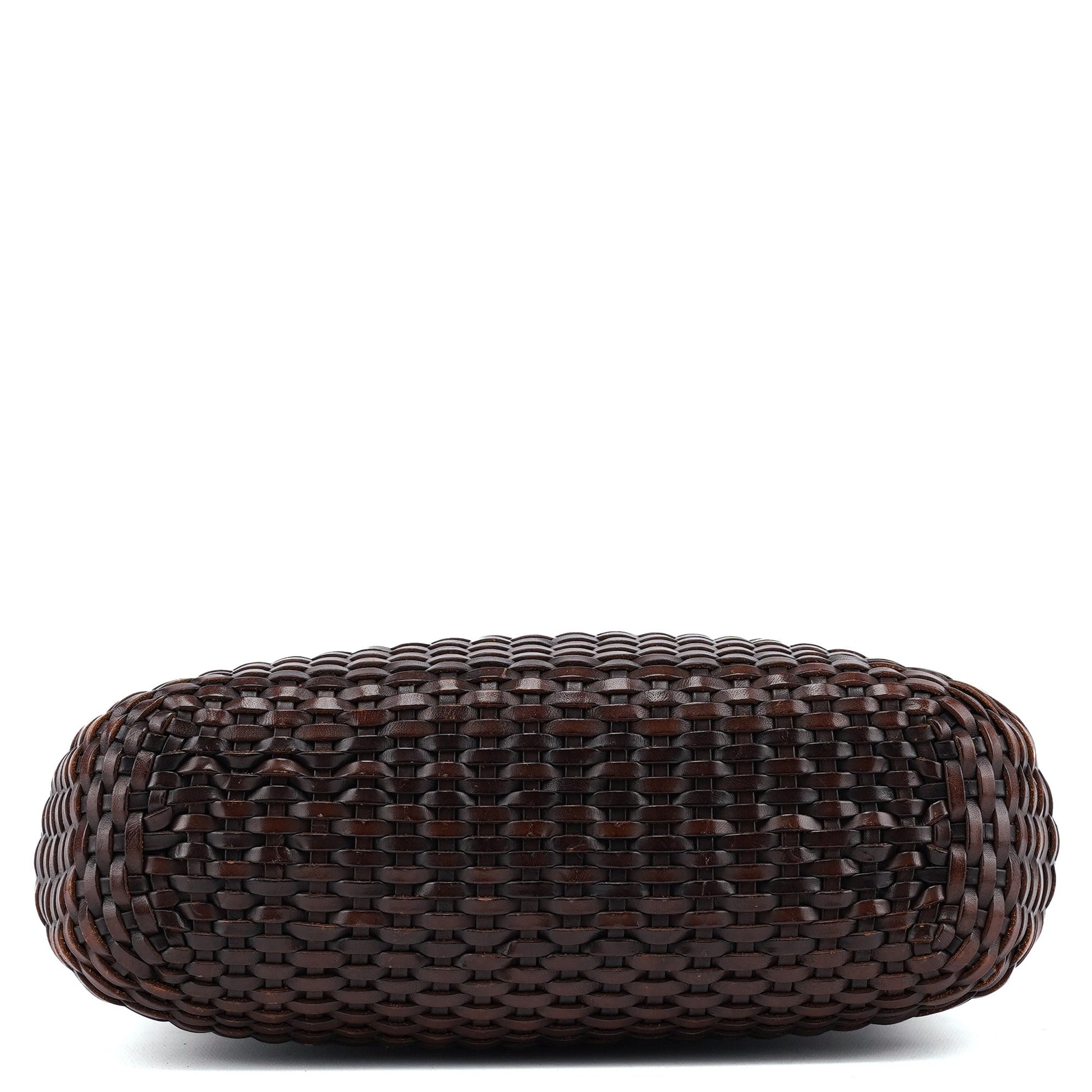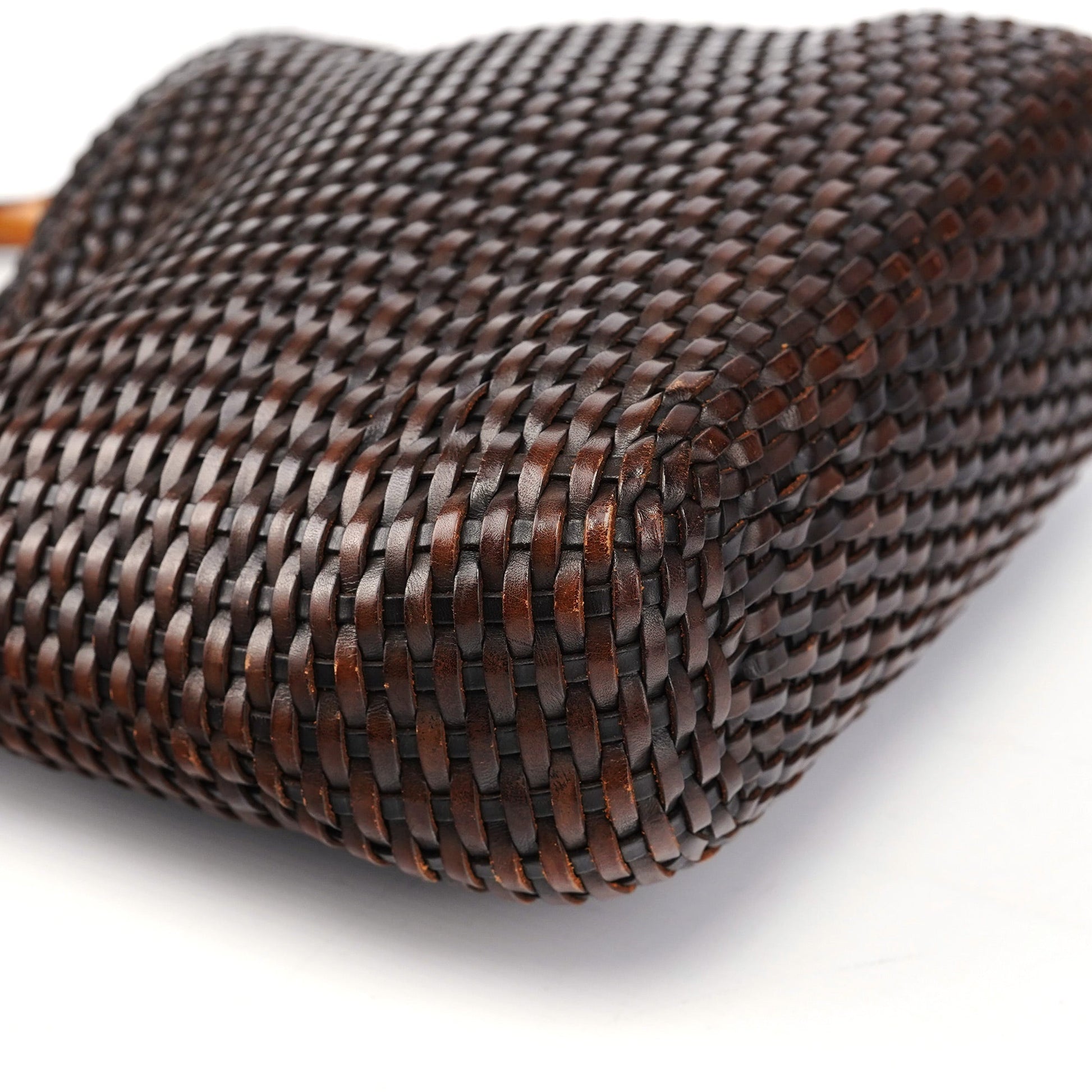 Designed by Tom Ford for Gucci's 1996 collection, this Bamboo bag is a testament to artisanal craftsmanship, handwoven in rich brown leather. It features a bamboo handle and luxurious gold-tone hardware, complemented by a magnetic closure for secure storage. The interior, elegantly lined with suede, includes an interior zipper pocket, blending functionality with Gucci's iconic elegance.