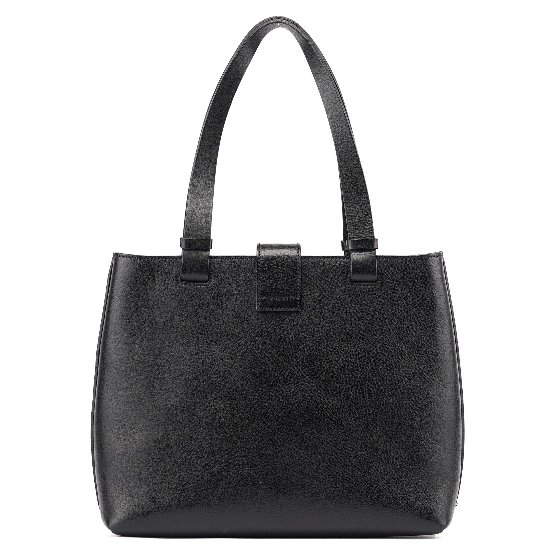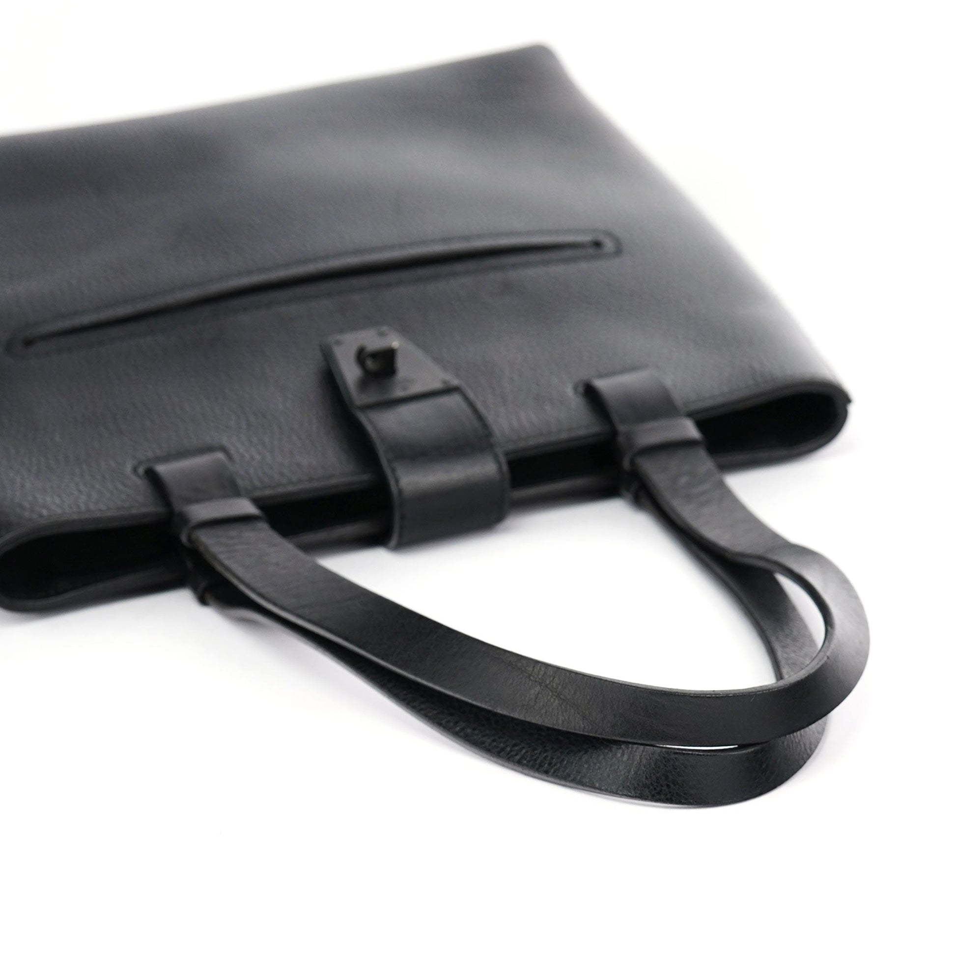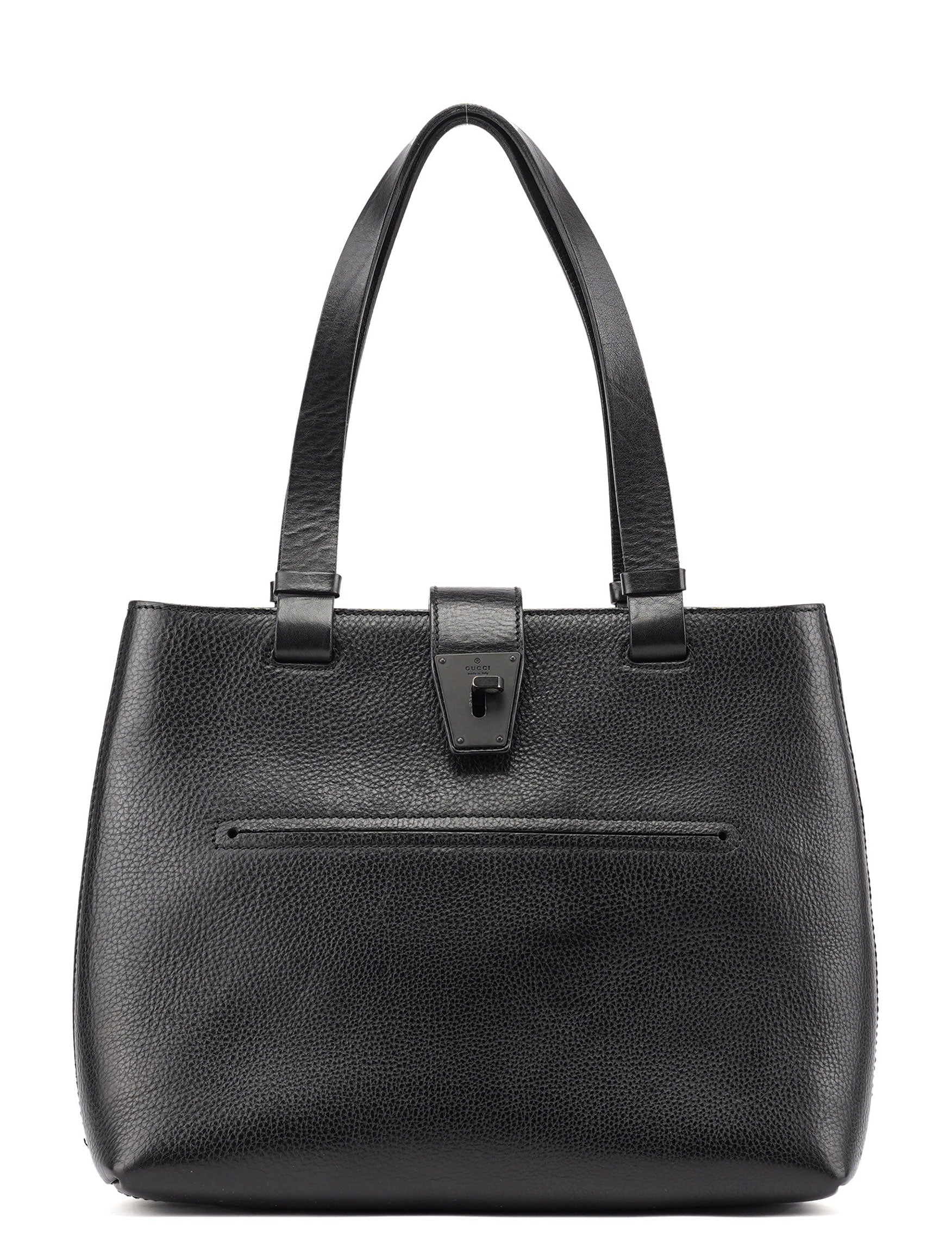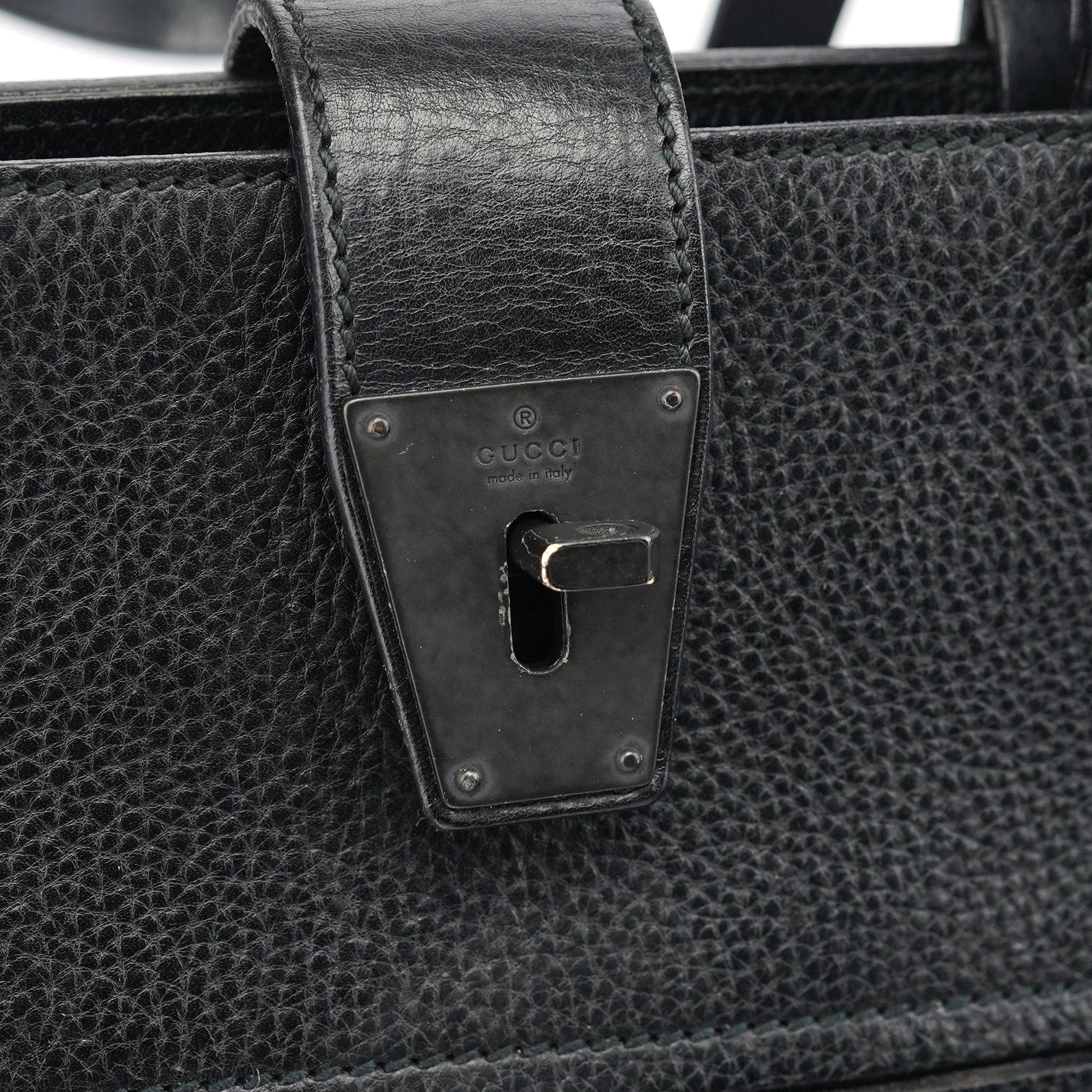 Designed by Tom Ford in 2002, this Gucci Turnlock bag is handcrafted from black leather with anthracite hardware engraved with the Gucci logo. It features a front pocket, a structured silhouette, and a signature turnlock closure. The suede-lined interior includes a zip pocket, blending refined design with everyday functionality.