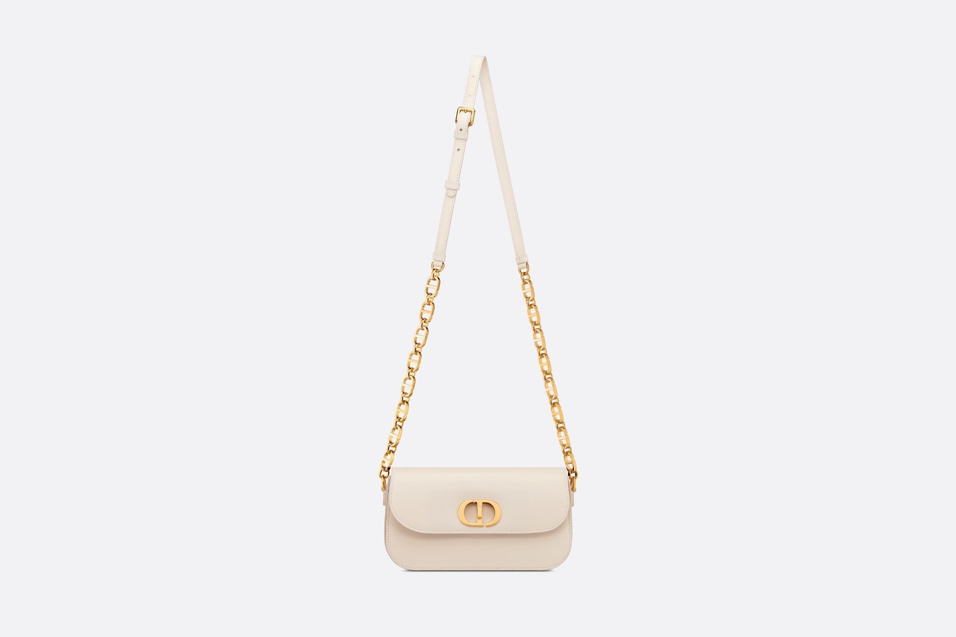 The 30 Montaigne Avenue bag enhances the hallmark line with a timeless and elegant style. Crafted in dusty ivory box calfskin, the rounded flap with delicate curves is punctuated by an antique gold-finish metal CD clasp inspired by the seal of a Christian Dior perfume bottle. The design is completed by other details, like the 30 Montaigne signature embossed on the back and the signature chain alternating gold-finish metal and tonal enamel links that match the leather. The gusseted bag features a spacious and refined silhouette that can be carried by hand, worn over the shoulder or crossbody.