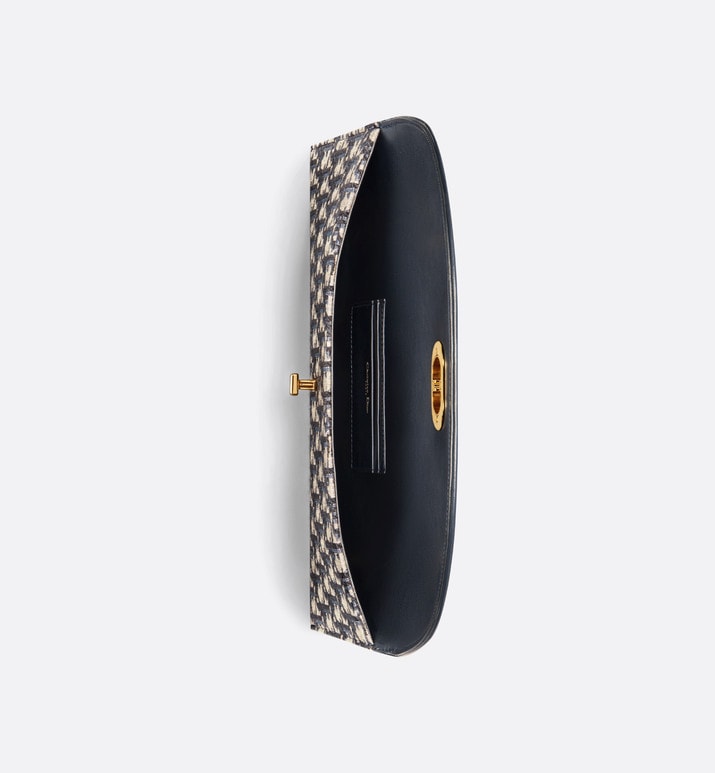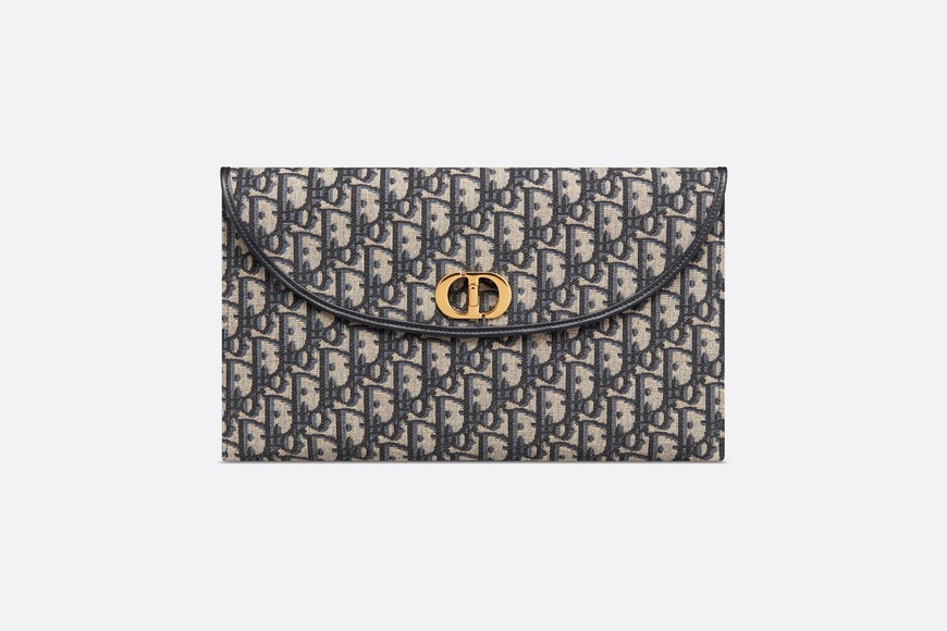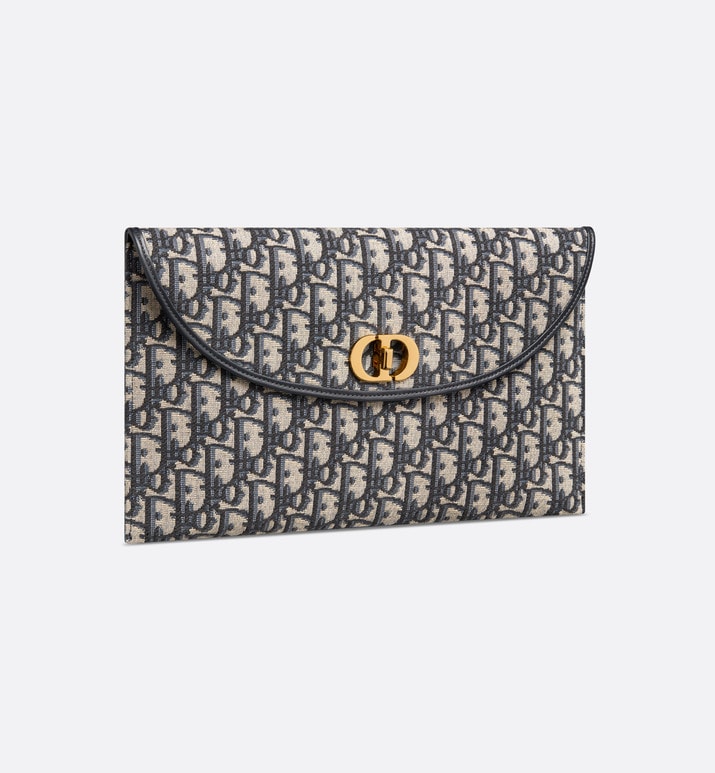 New for Fall 2023, the 30 Montaigne Avenue pouch with flap displays a modern design. Crafted in blue Dior Oblique jacquard, it possesses the codes of its namesake line, including the antique gold-finish metal CD twist clasp on the flap. The pouch will fit anywhere and can be coordinated with other 30 Montaigne Avenue creations.