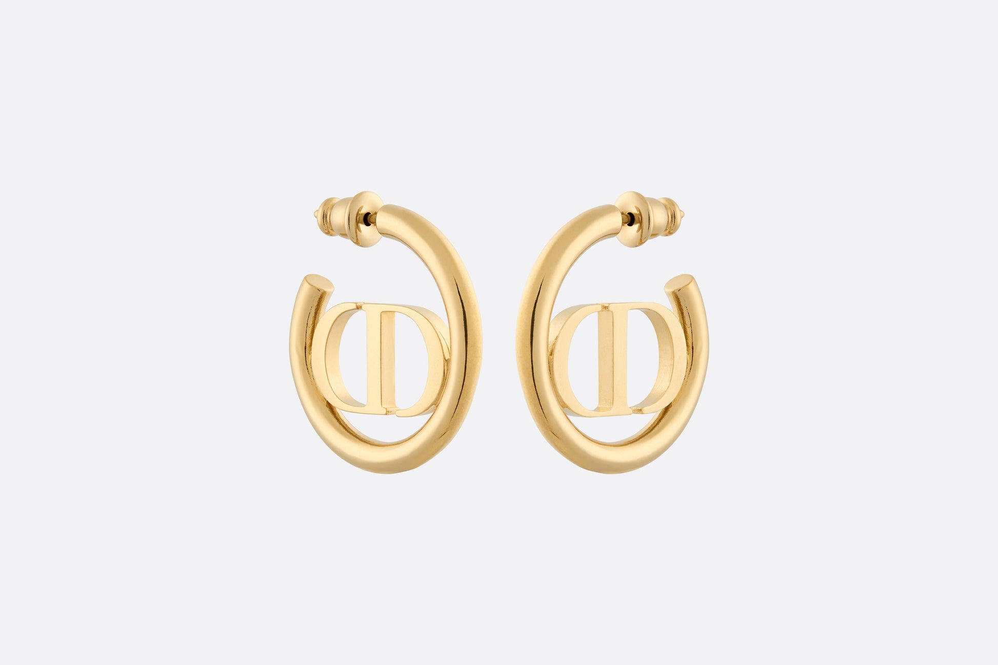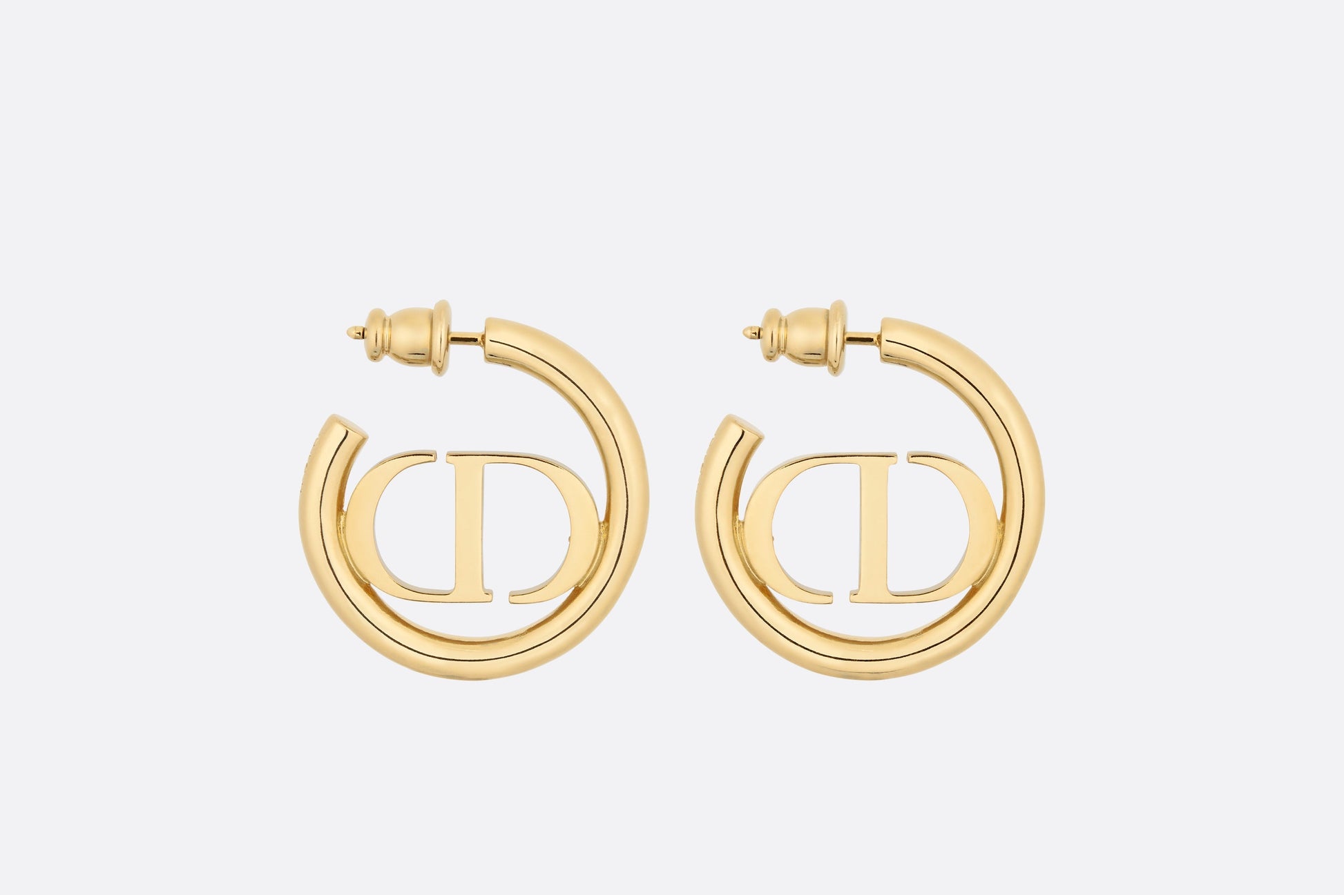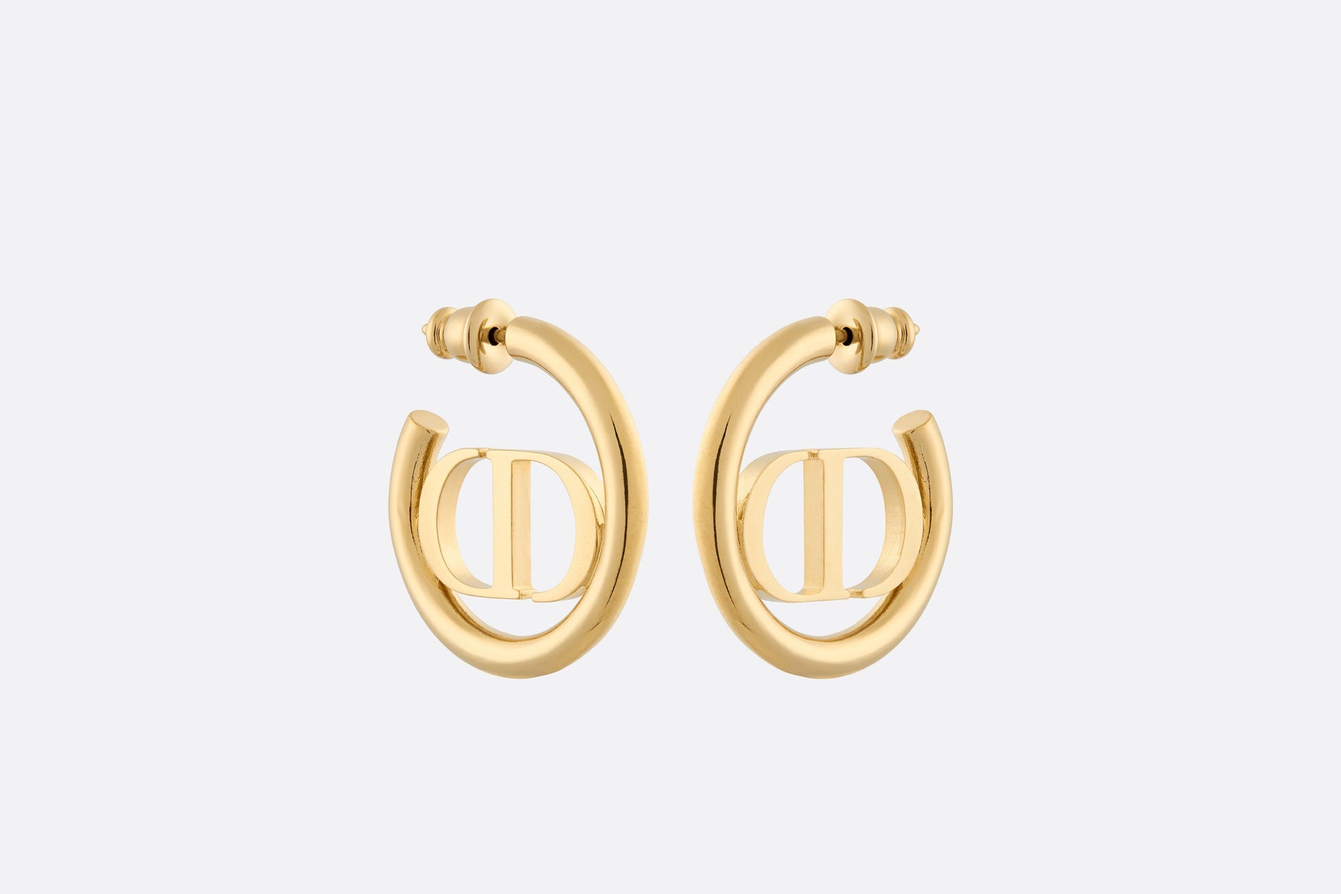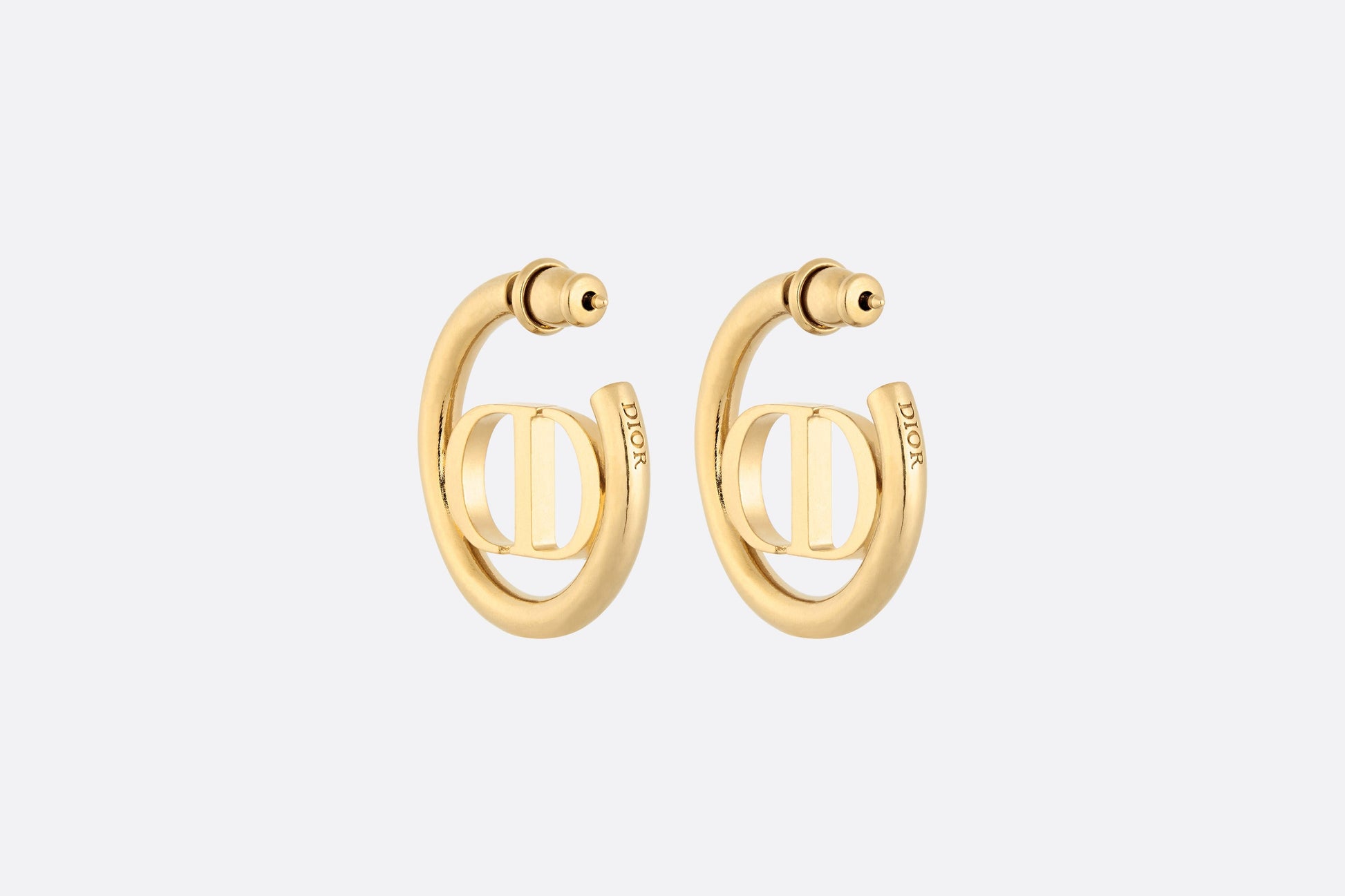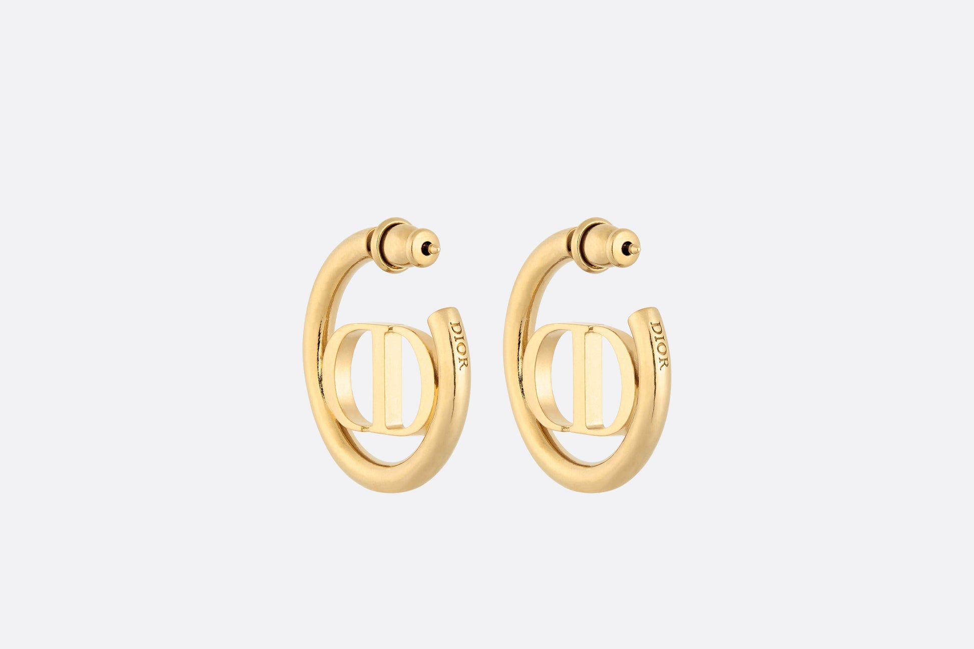 The 30 Montaigne earrings have a modern and elegant aesthetic. The finely crafted gold-finish metal ring encircles the 'CD' signature placed at the center. The earrings can be styled with other creations from the 30 Montaigne line.