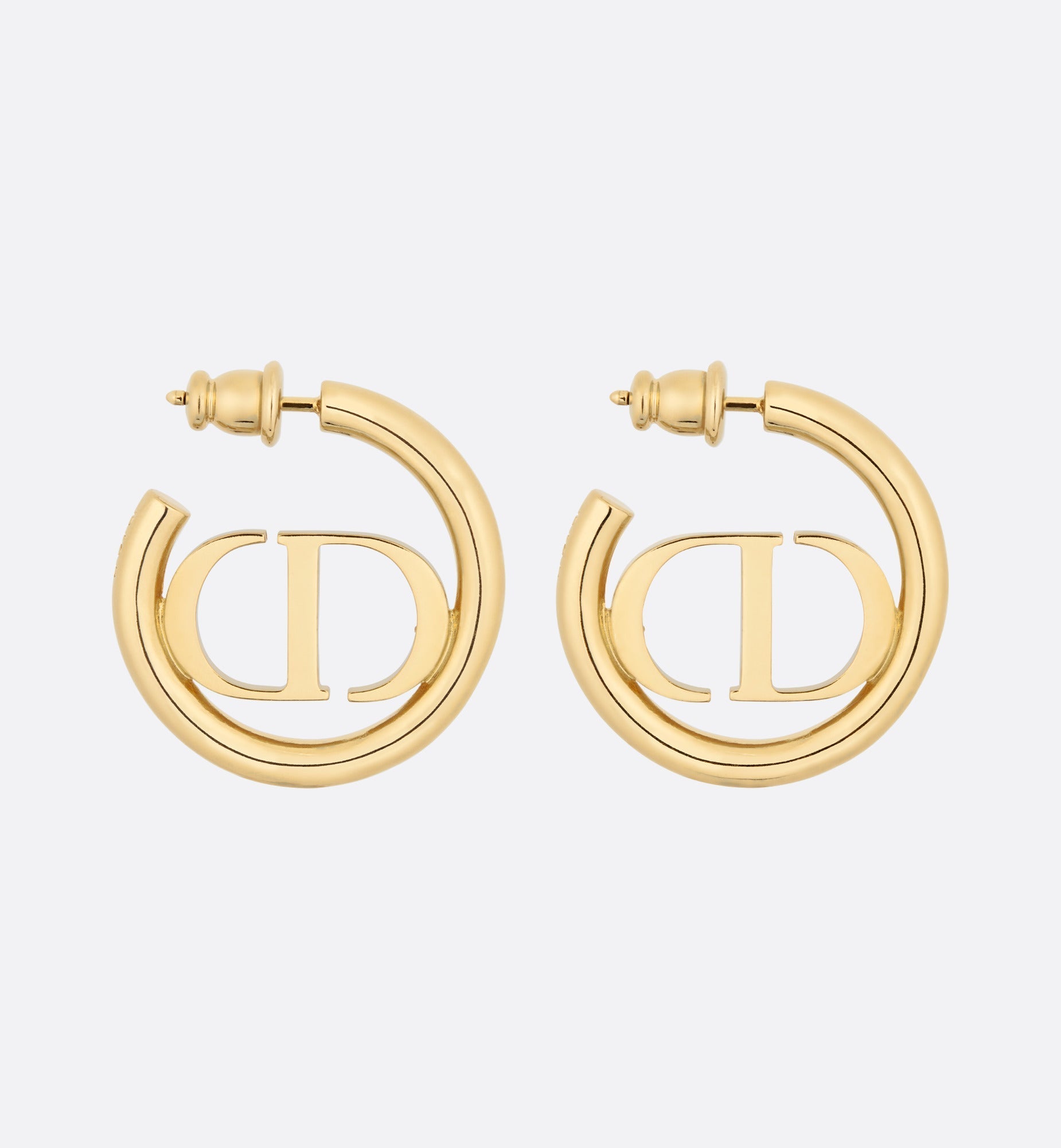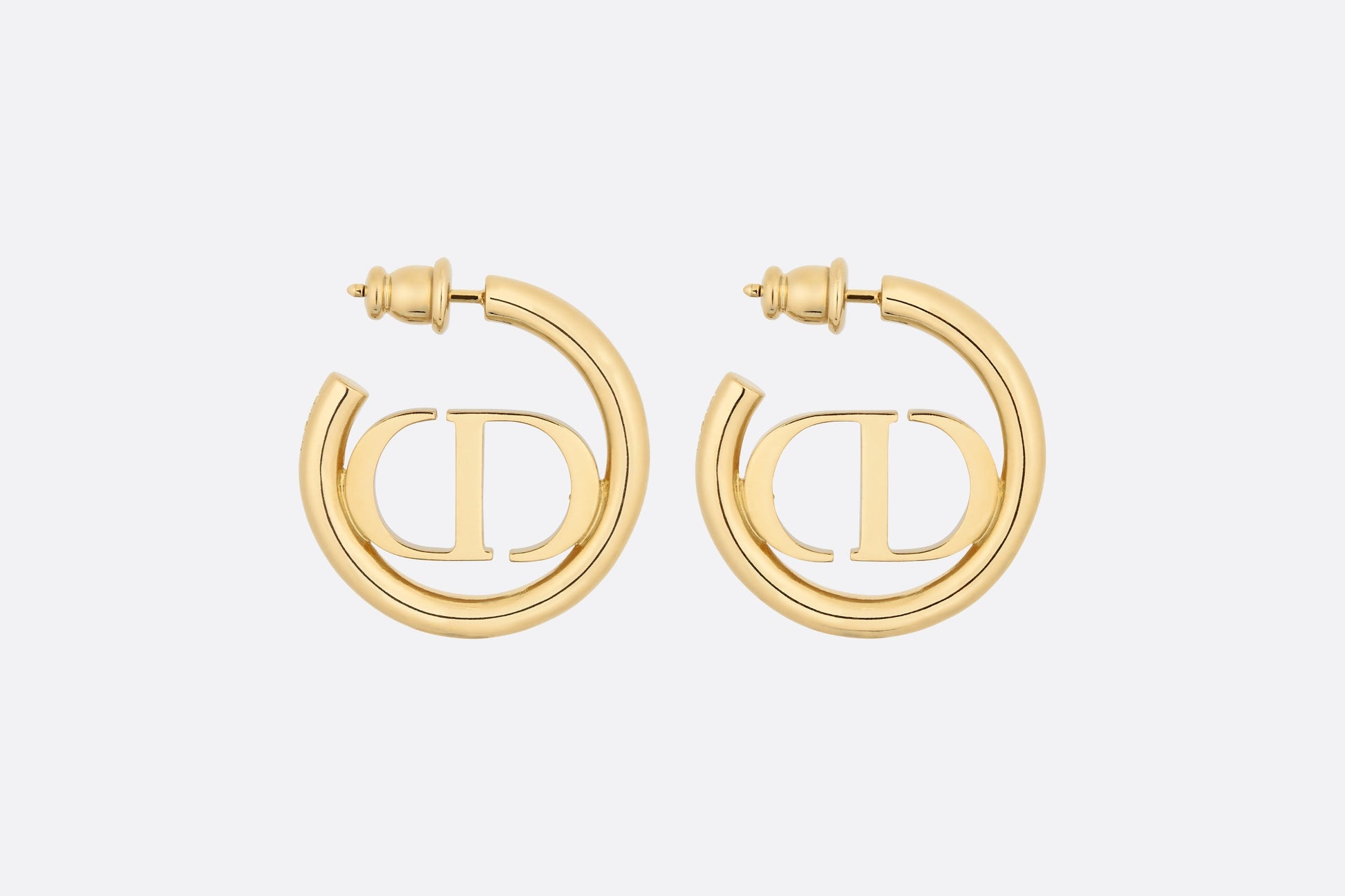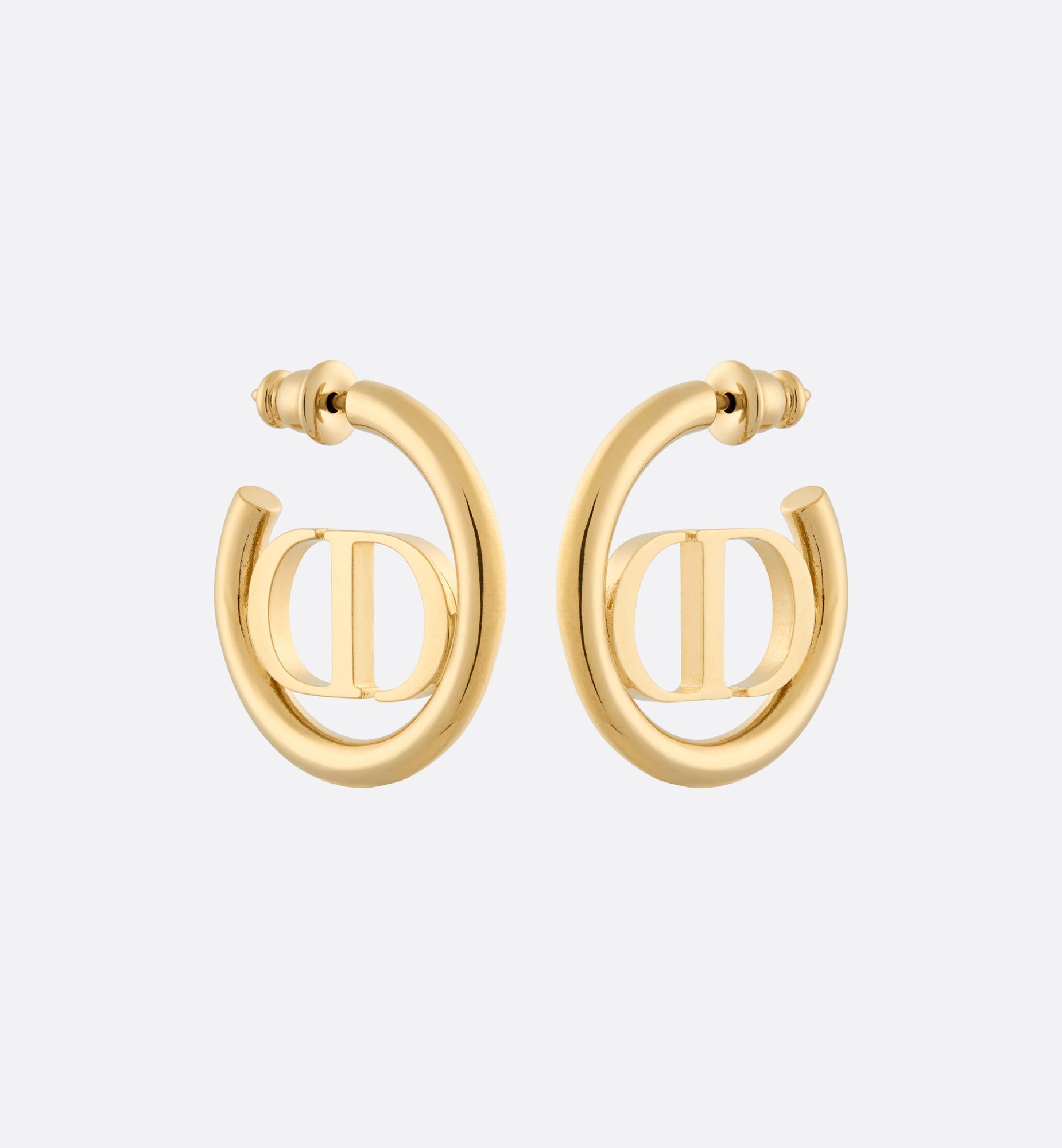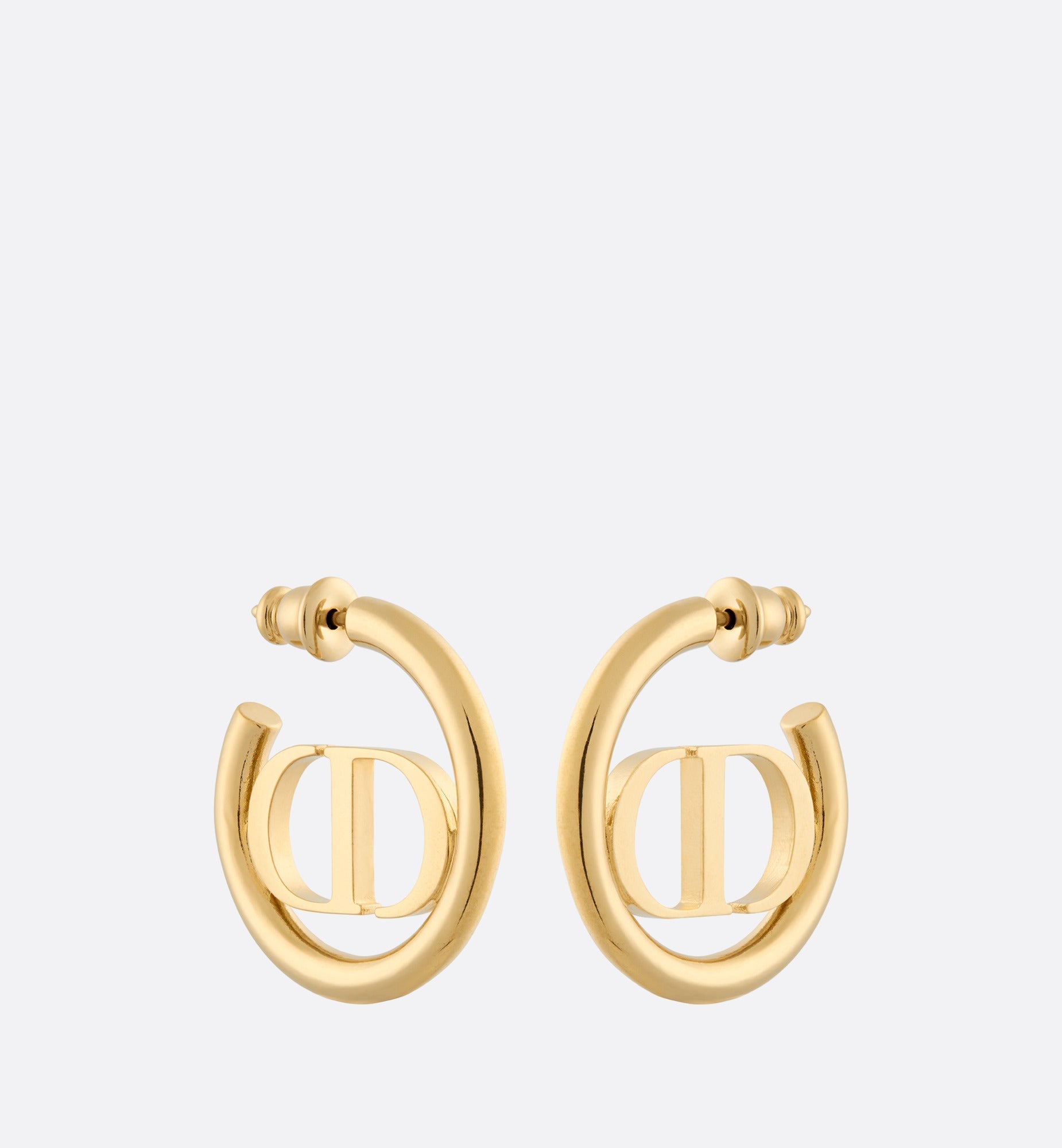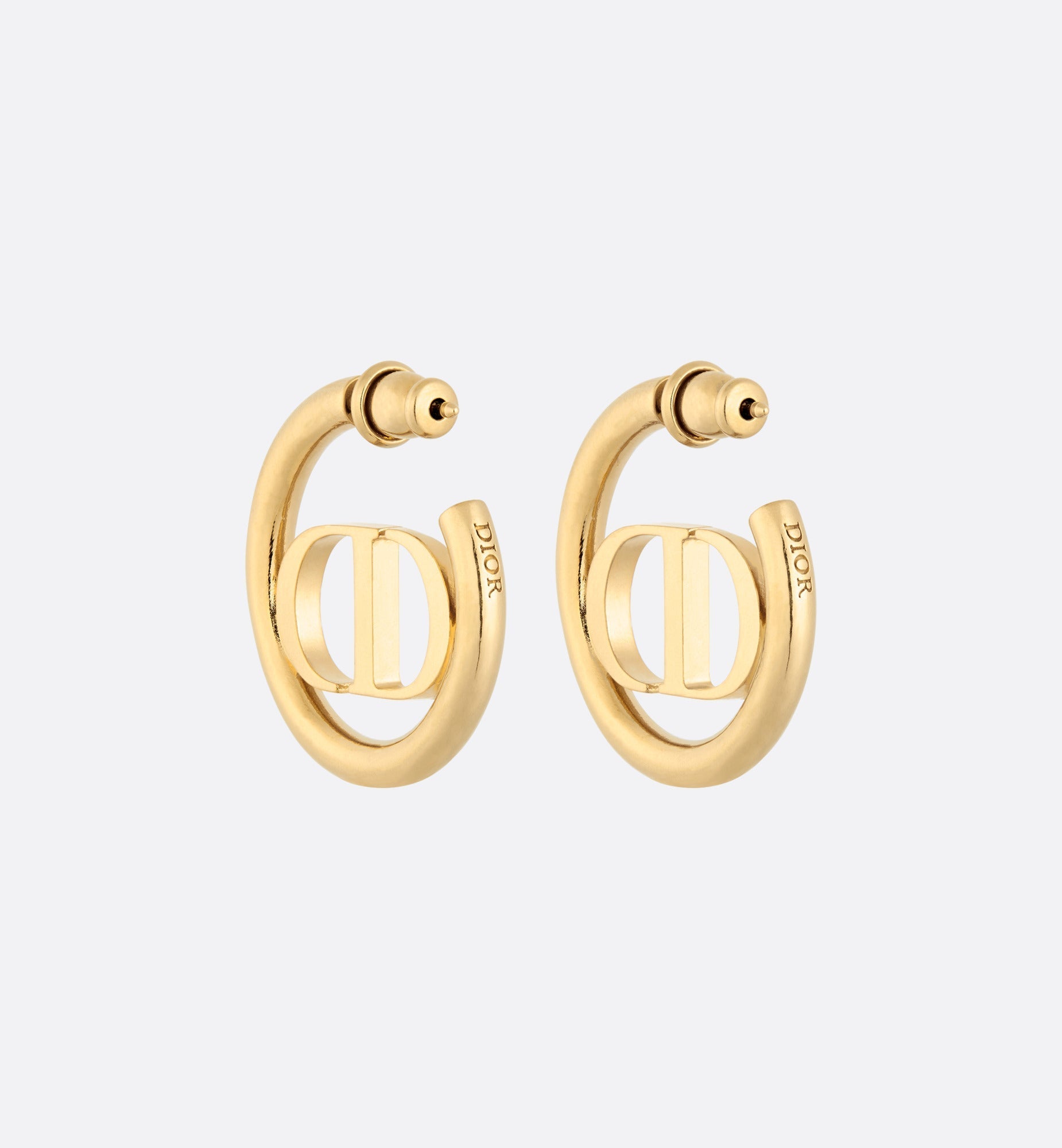 The 30 Montaigne earrings have a modern and elegant aesthetic. The finely crafted gold-finish metal ring encircles the 'CD' signature placed at the center. The earrings can be styled with other creations from the 30 Montaigne line.