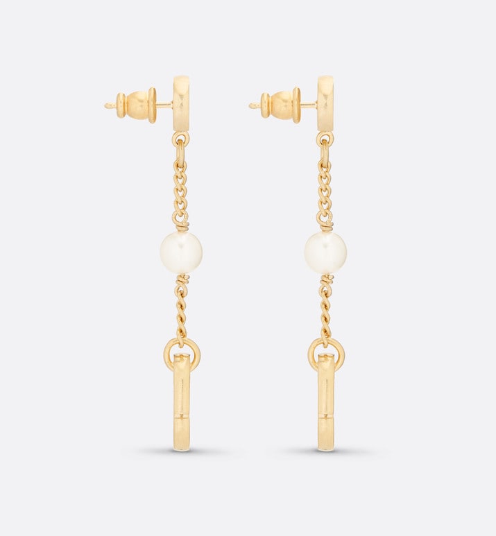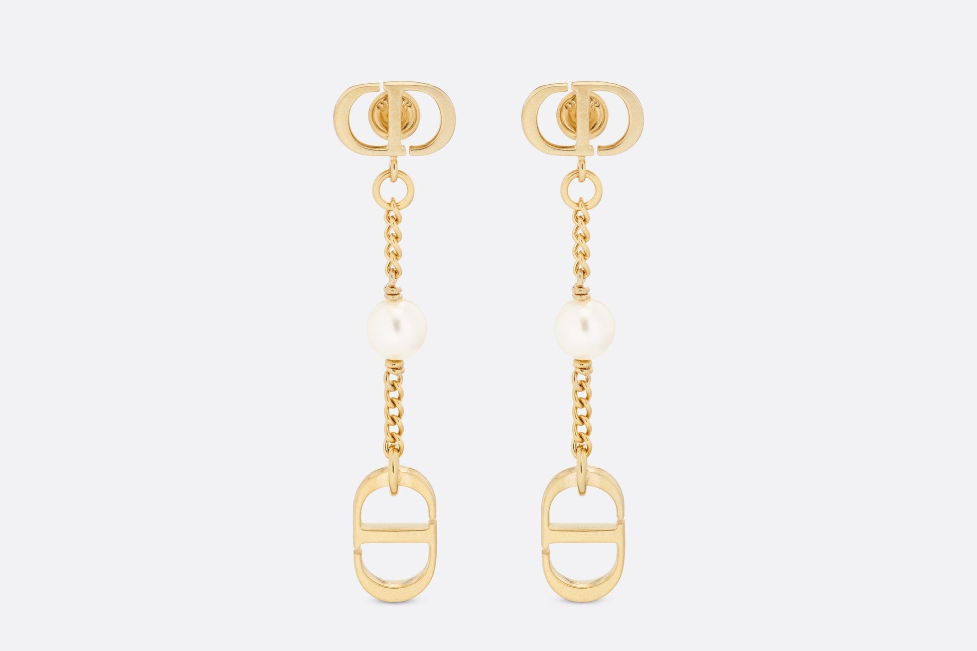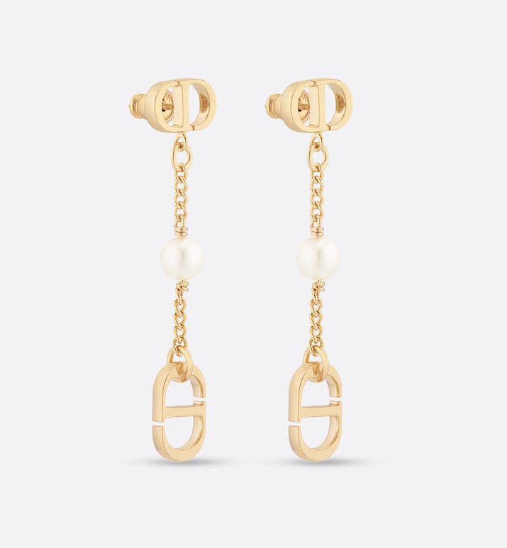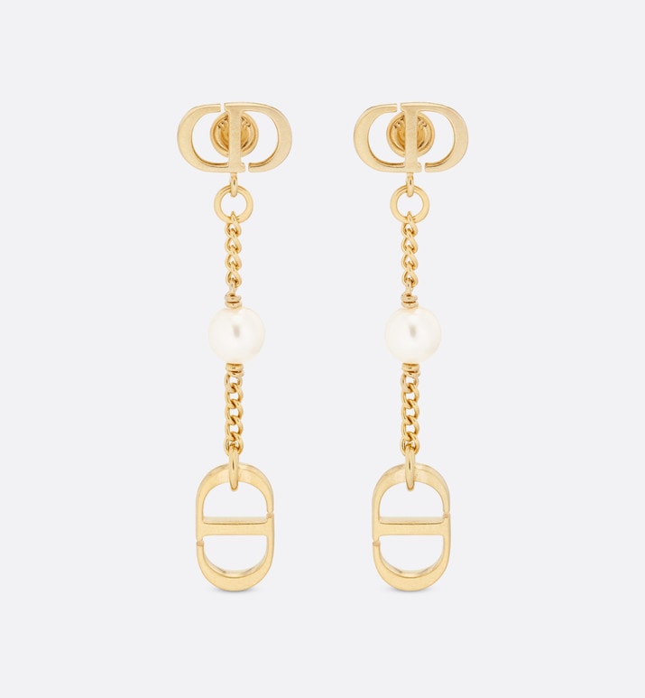 The 30 Montaigne earrings have a modern and elegant aesthetic. Finely crafted in gold-finish metal, they showcase the CD signature enhanced by a white resin pearl. The timeless earrings may be styled with other creations from the 30 Montaigne line.