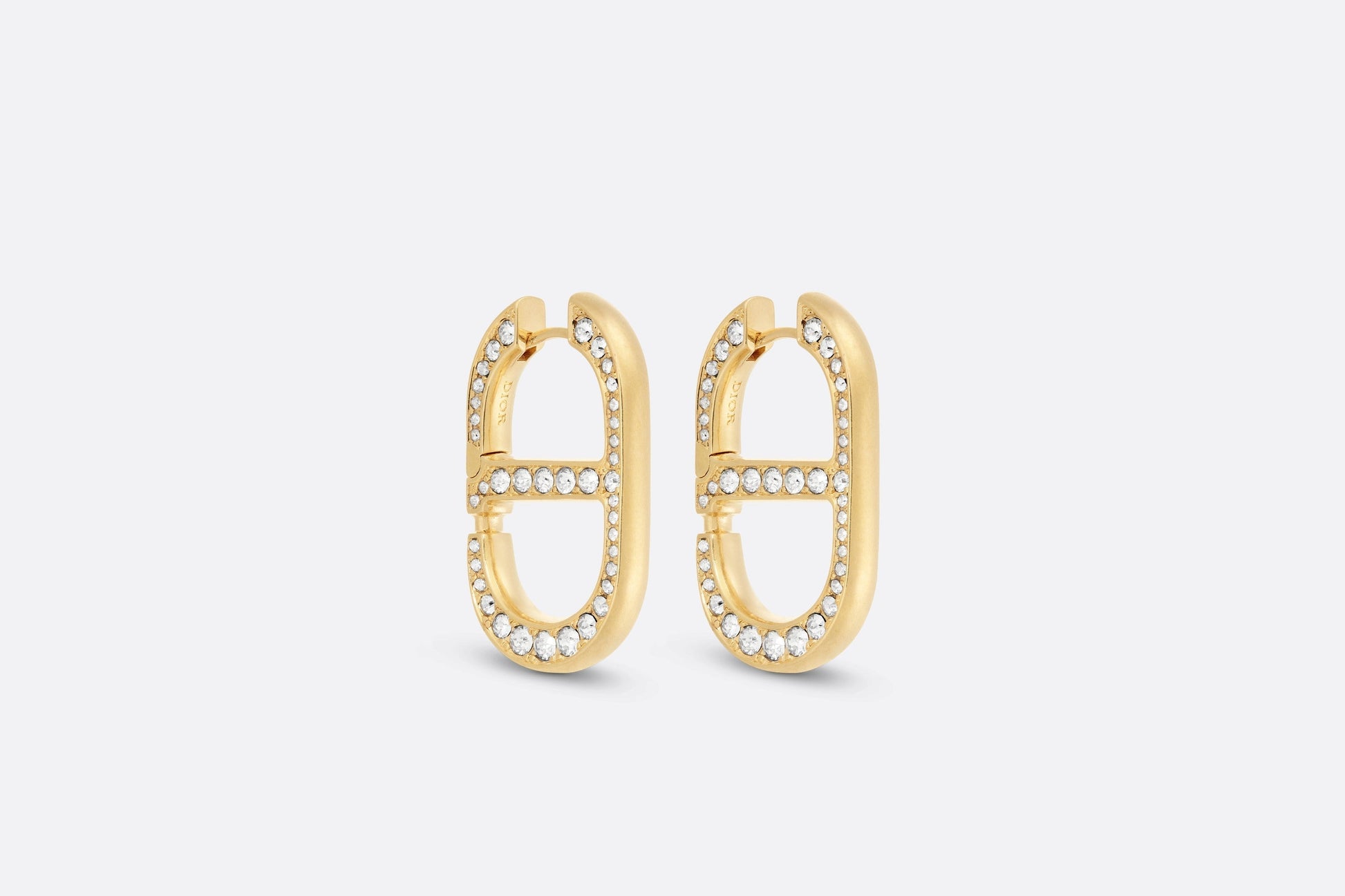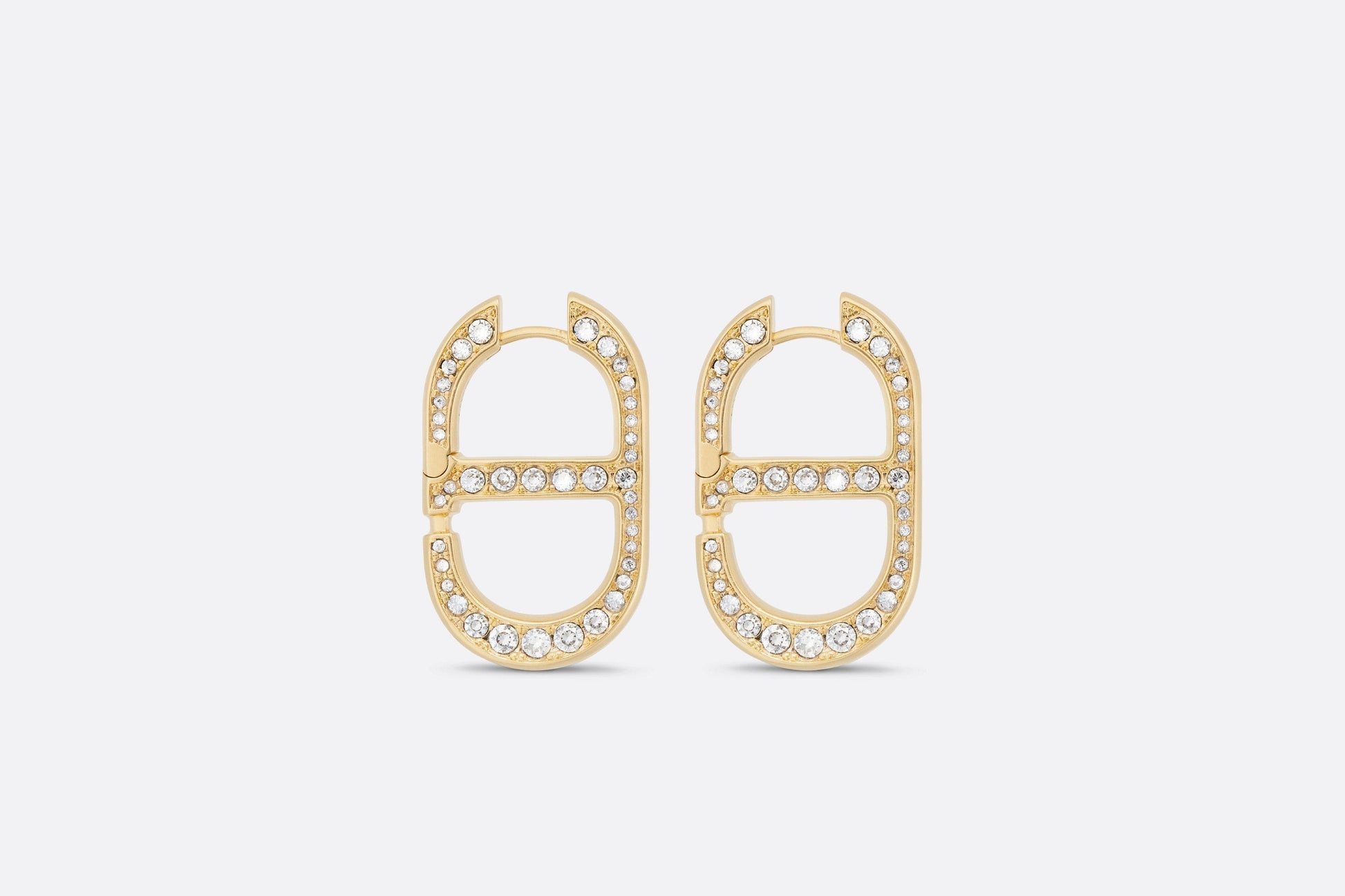 The 30 Montaigne earrings have a modern, elegant aesthetic. The gold-finish metal CD signature, in a pavé of silver-tone crystals, is featured on either side of the ear. The earrings can be styled with other creations from the 30 Montaigne line.