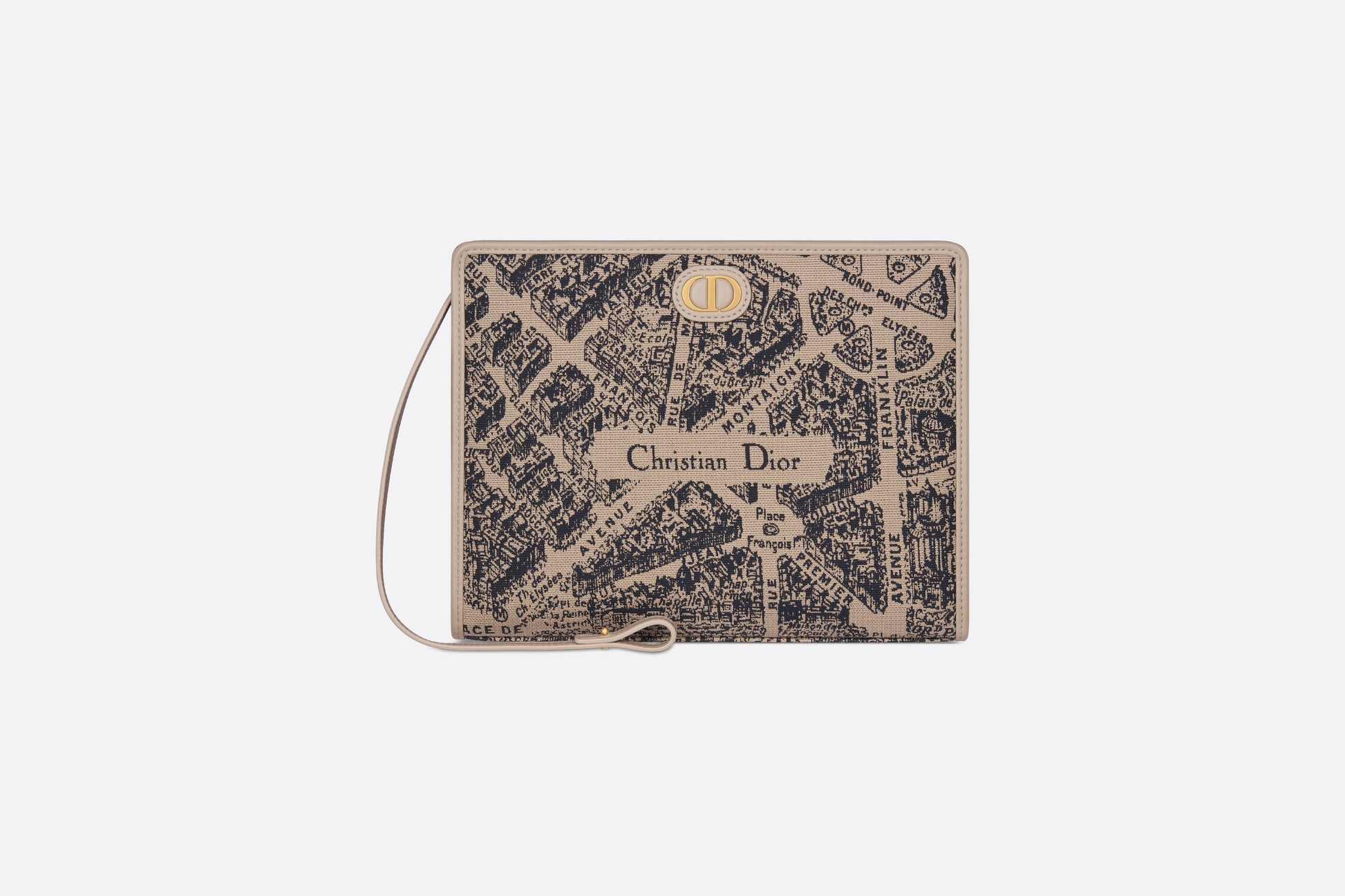 The 30 Montaigne medium pouch is a timeless and sophisticated accessory. Crafted in beige and black jacquard, it features the Plan de Paris motif, inspired by House archives and structured around Dior's historic Avenue Montaigne address. Showcasing a CD signature on the front, the creation reveals a spacious interior compartment that can hold all the essentials. The structured shape allows the pouch to be carried as a clutch or slipped into a Dior Book Tote.