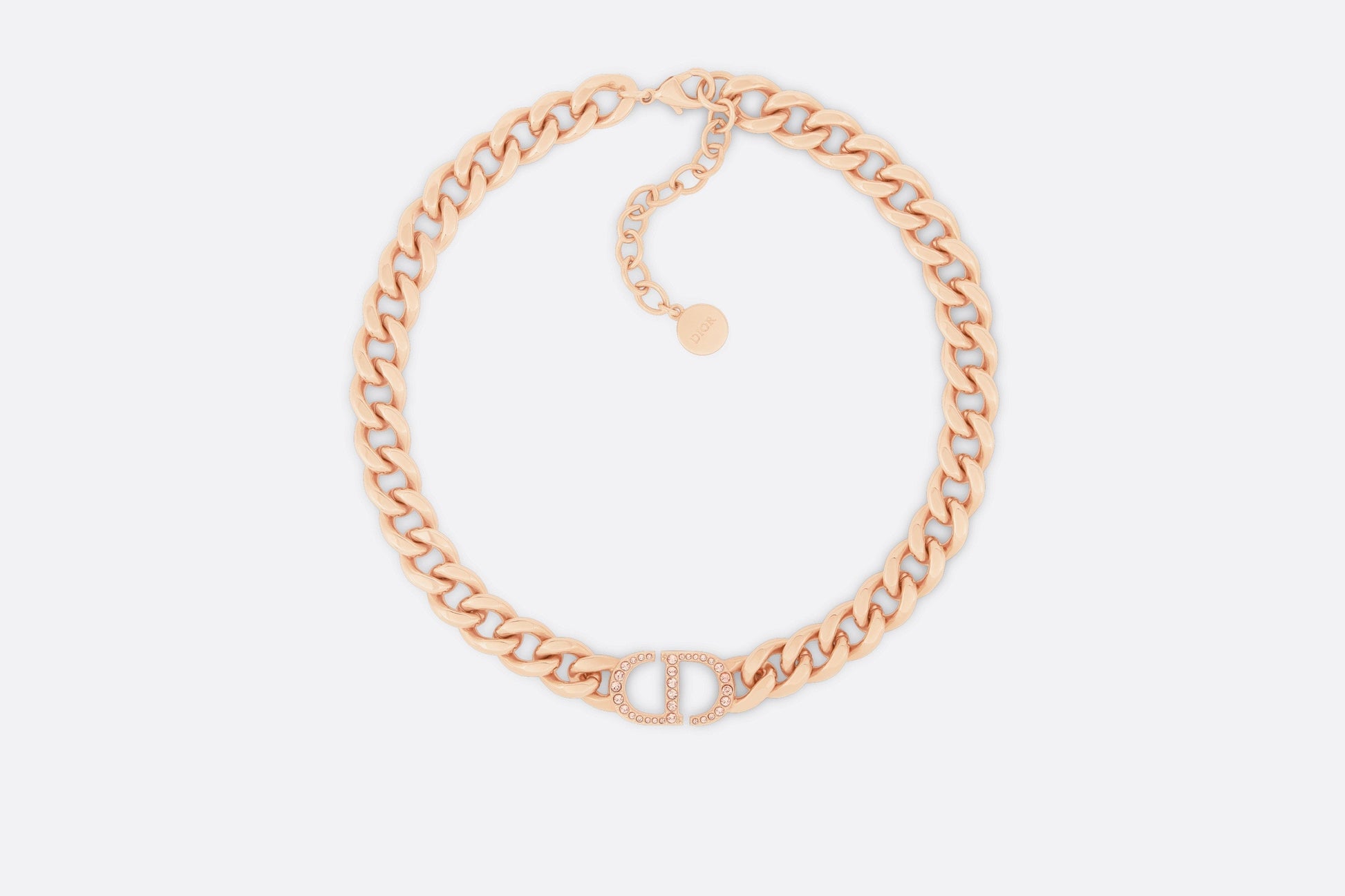 The 30 Montaigne necklace presents a modern, elegant look. Finely crafted in pink-finish metal links, the design is enhanced by a CD signature with a pavé of pink crystals. The sophisticated necklace may be paired with other creations from the 30 Montaigne line.