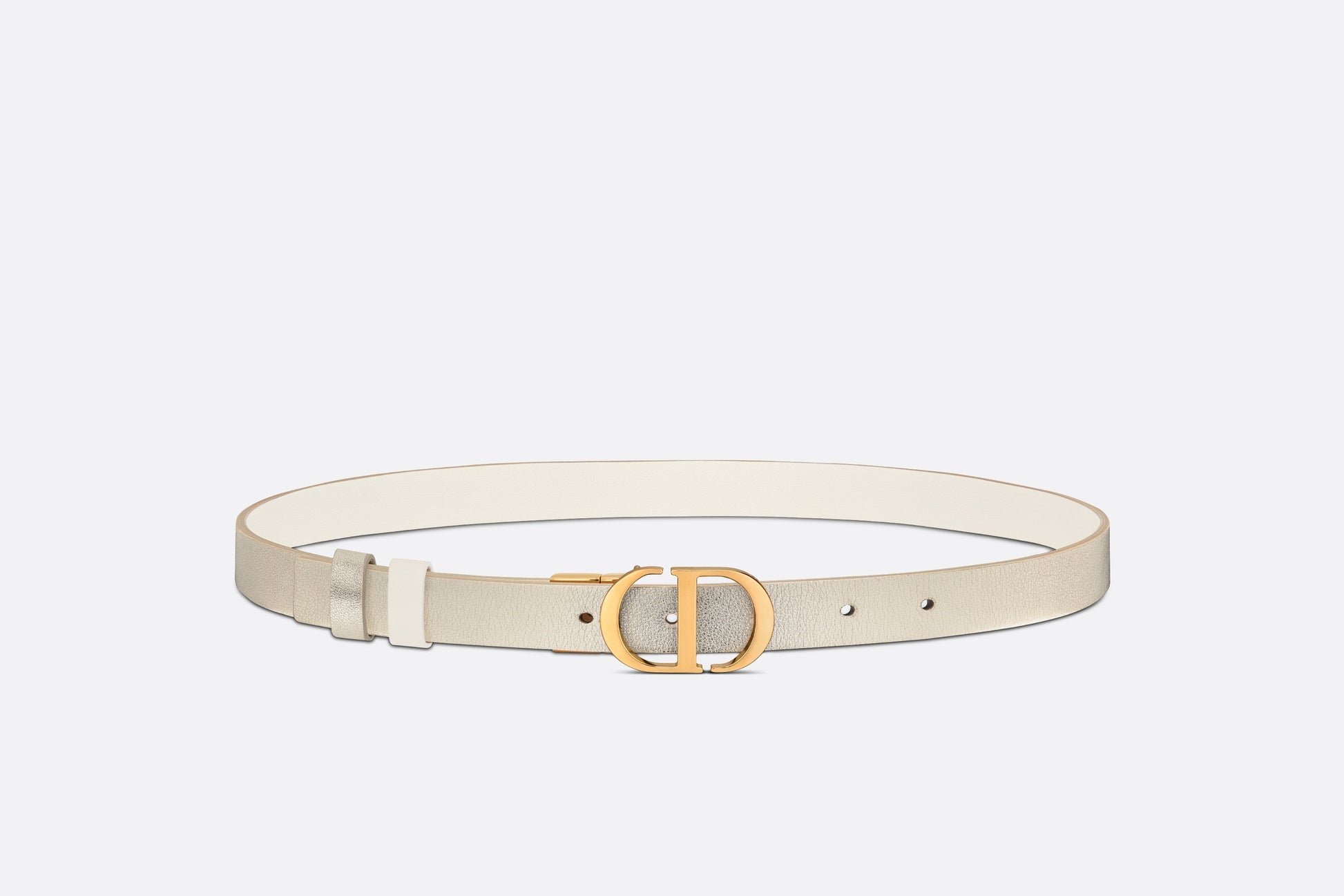Inspired by the hallmark namesake bag, the 30 Montaigne belt is offered in a reversible variation thanks to its swivel feature. Crafted in gold-tone smooth calfskin on one side and latte on the other, it is embellished with a shiny gold-finish metal iconic 'CD' buckle. The timeless accessory elegantly highlights the waist and pairs well with jeans, a skirt or dress.