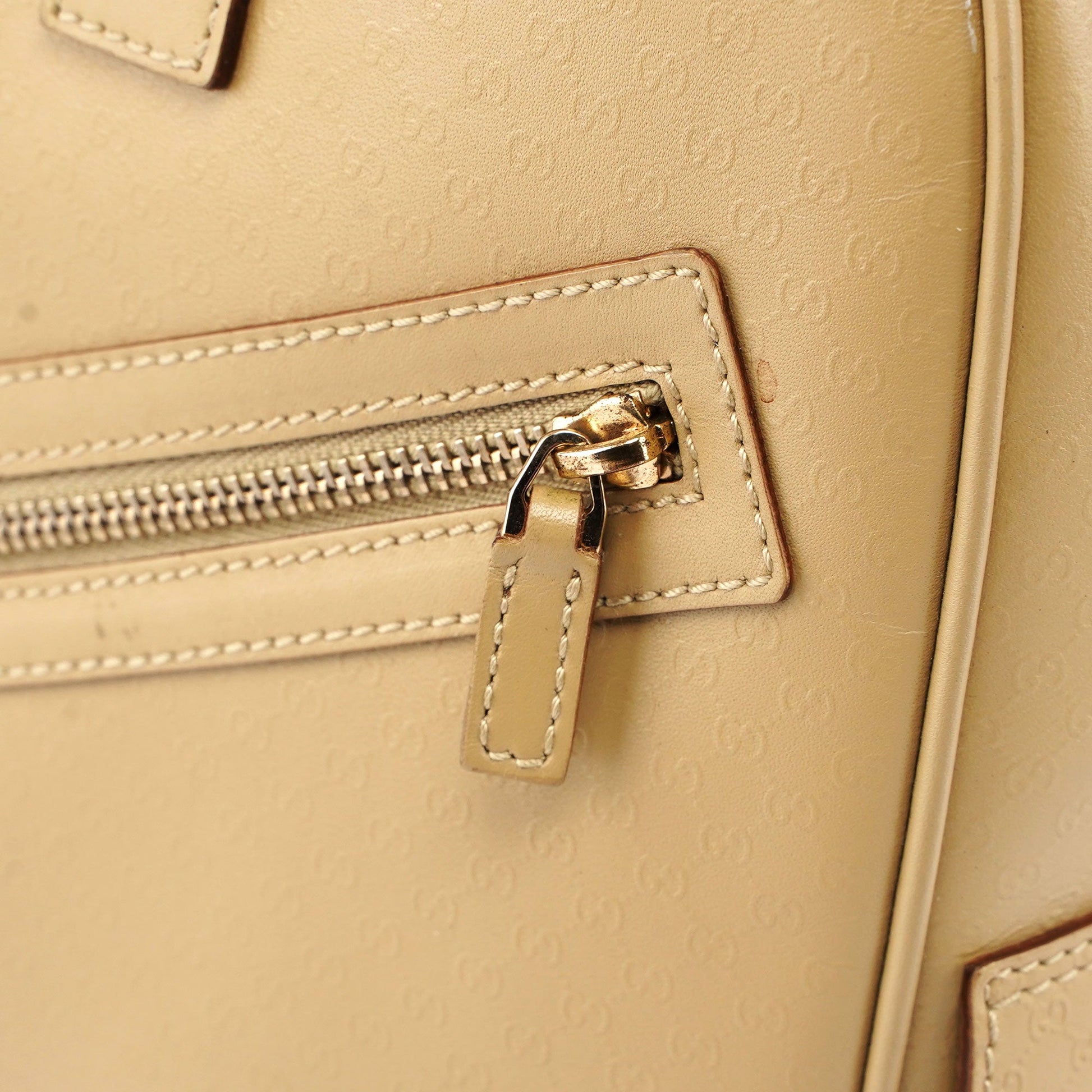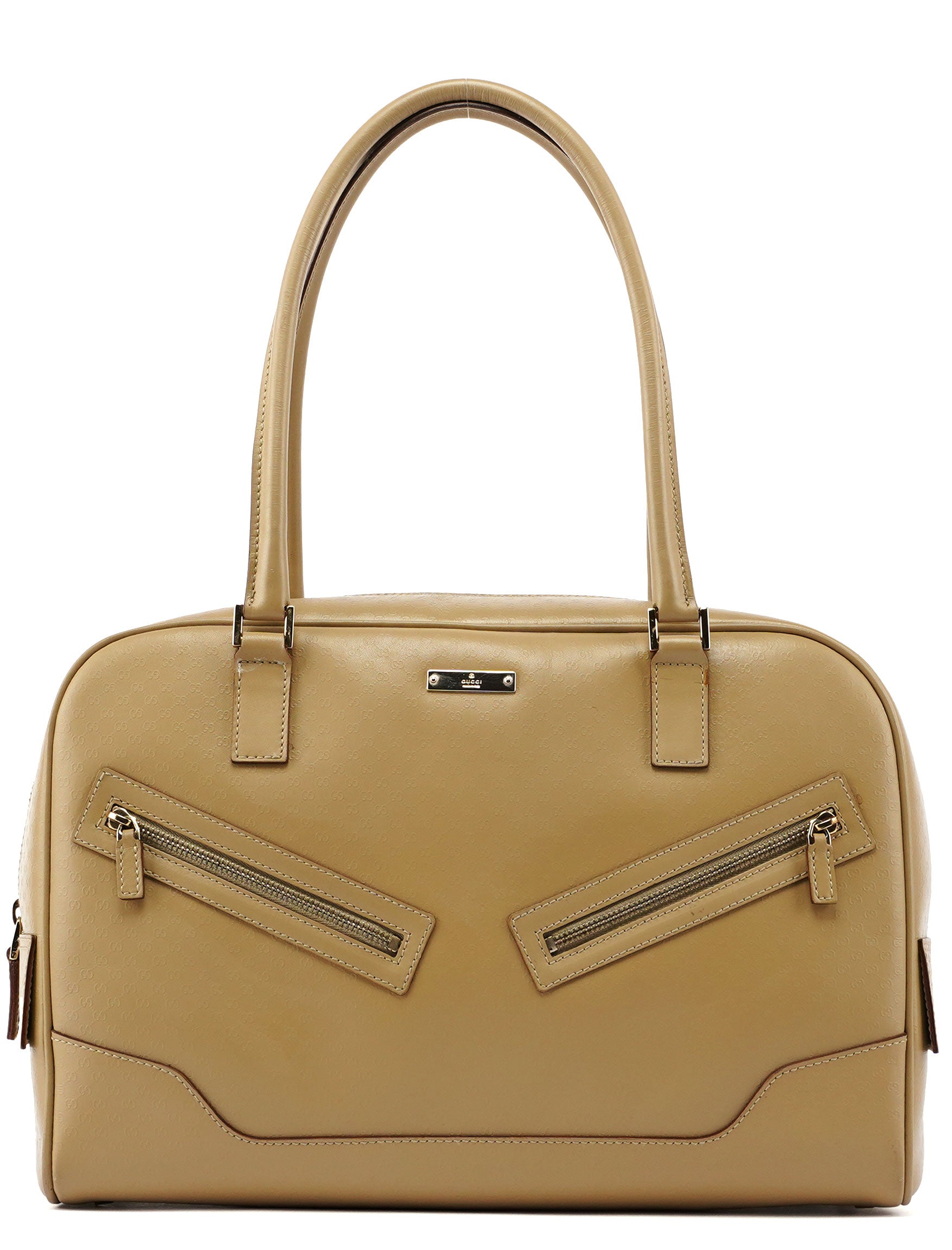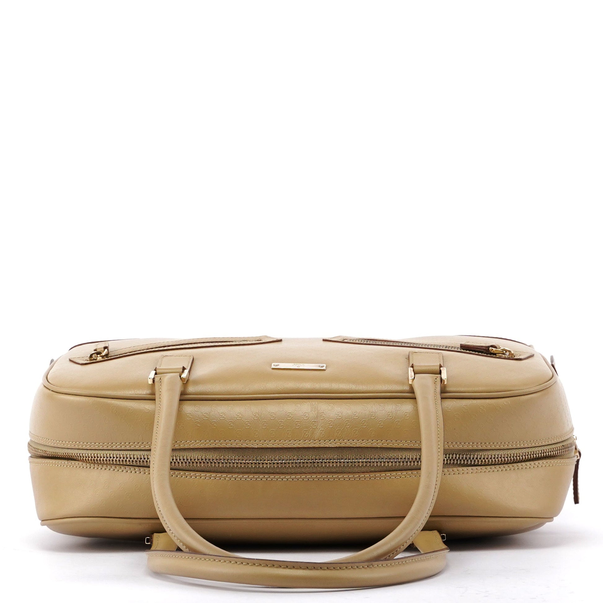 Designed by Tom Ford in the late 1990s, this Gucci tote bag exudes timeless elegance. Handcrafted from beige leather and embossed with the GG monogram with sgold-tone hardware, it features two zipper pockets at the front for added convenience. The main compartment boasts a zipper closure and a satin-lined interior with an additional zipper pocket. Completing the design is the iconic Gucci logo plate at the front.