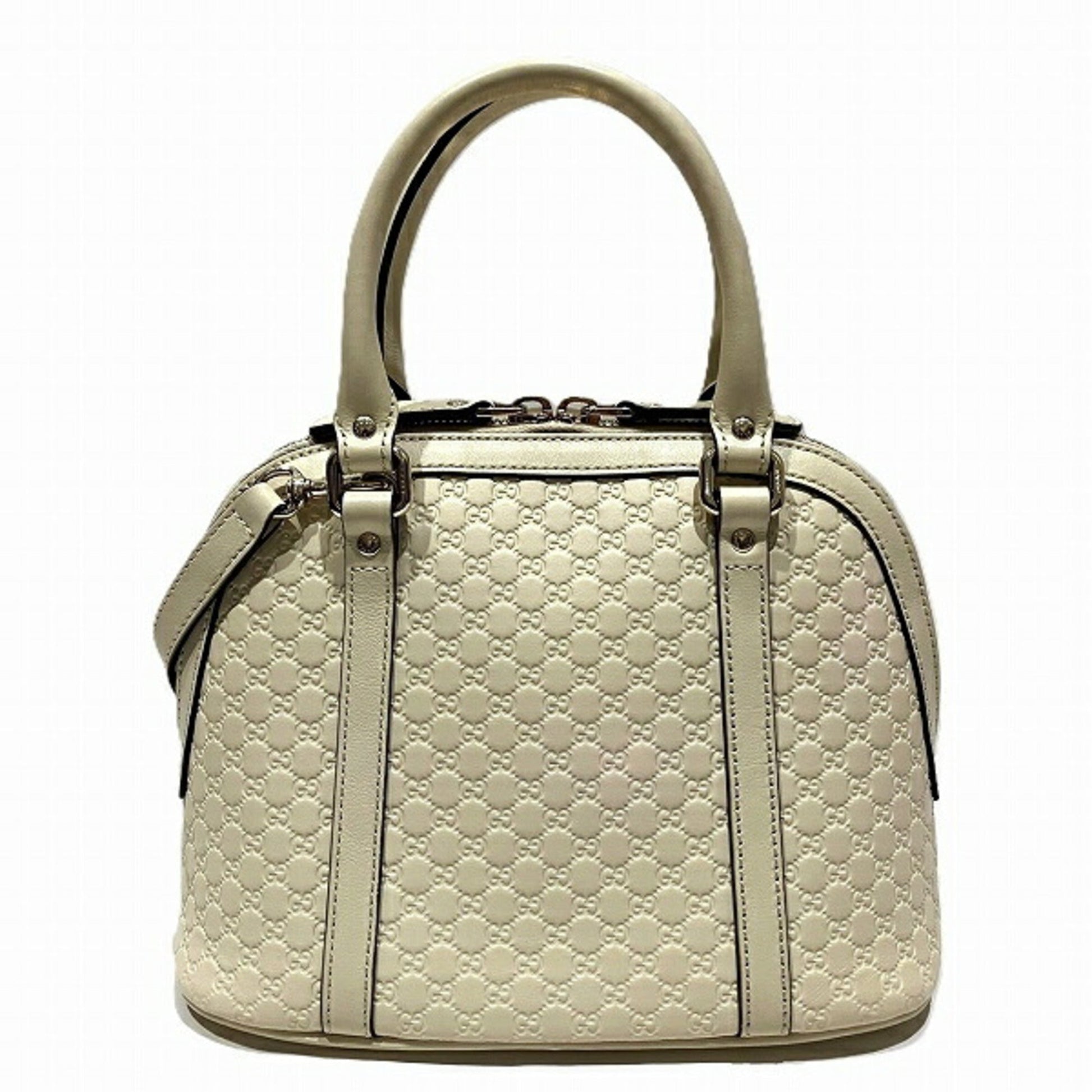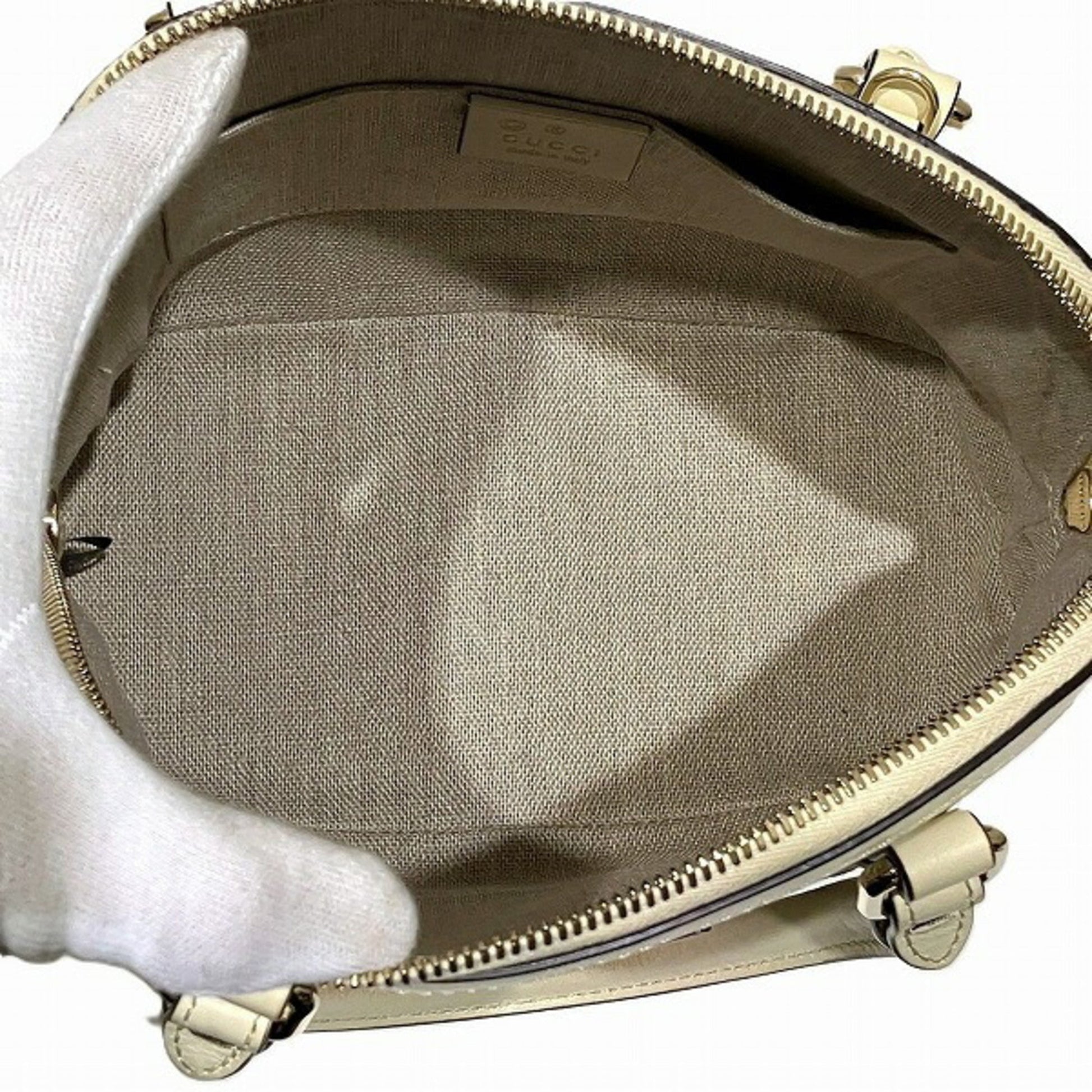 Brand: Gucci, Color: Ivory, Material: Leather, Dimensions: 19cm x 22cm x 11cm / 7.48'' x 8.66'' x 4.33'', Condition: Rank B. Rank B Used - Traces of usage, damages / dirt can be seen but it is still in acceptable condition for continued usage. Before purchasing, please refer to the images for the exact condition of the item. Before purchasing, please refer to the images of the accessories included with the item. Damage Ranking: Insignificant, Slight