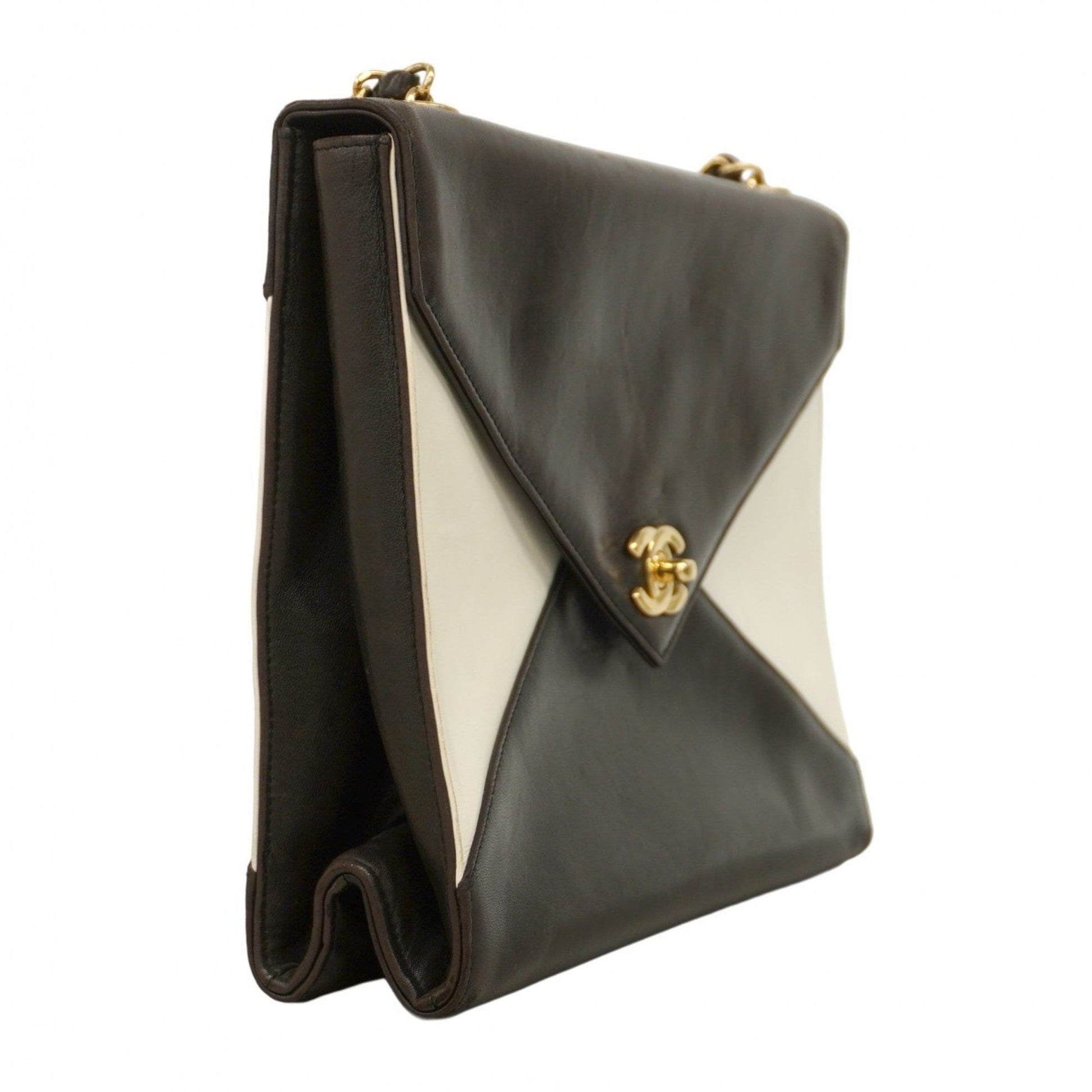 Chanel Black White Leather Shoulder Bag ()