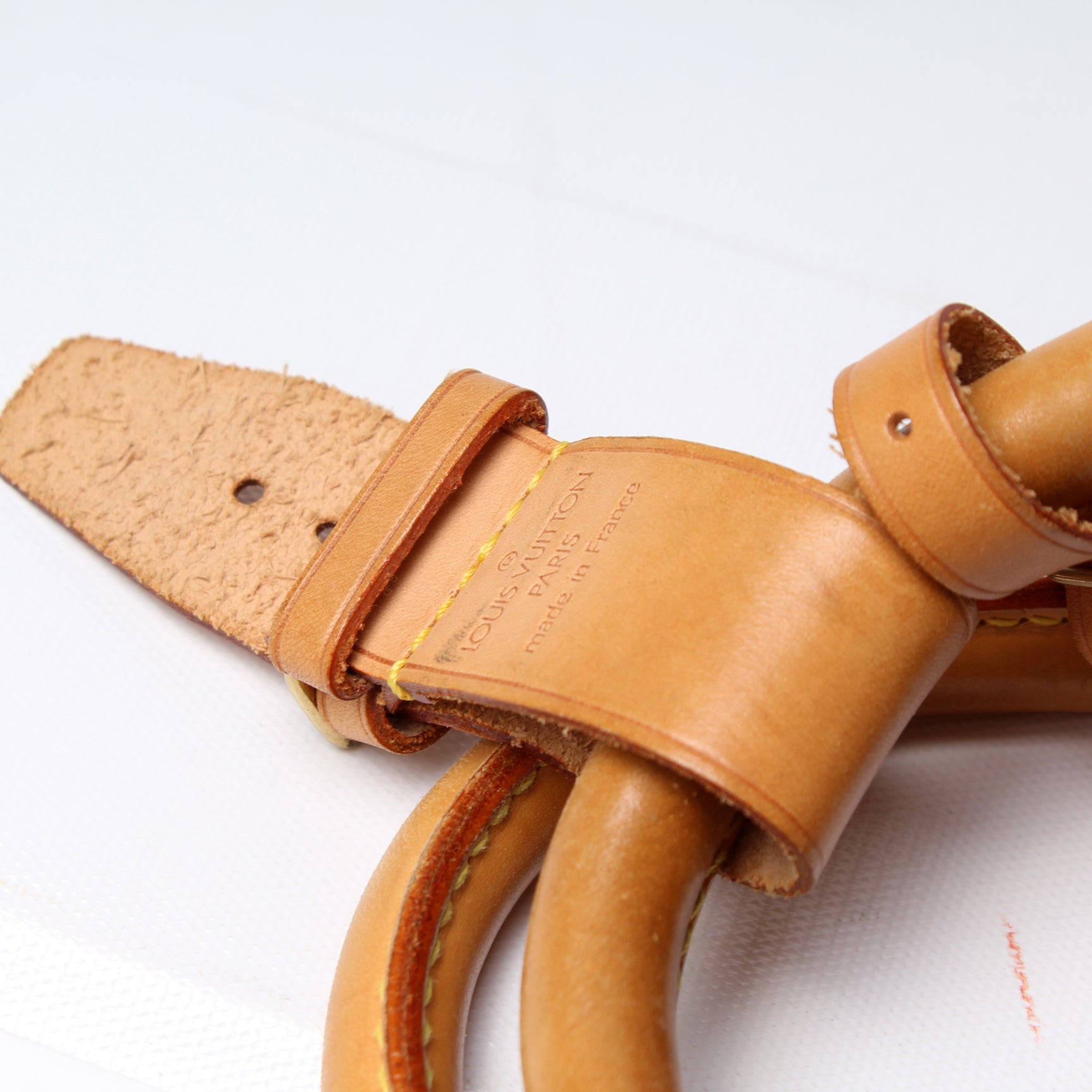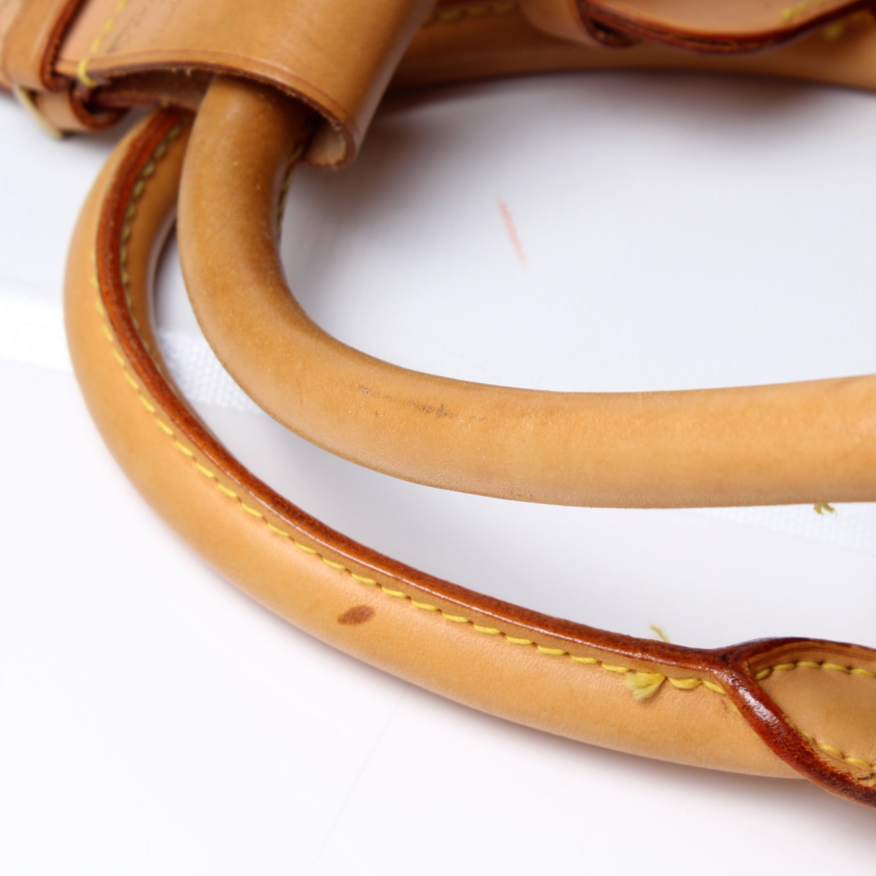 Exterior: The exterior coated canvas is free of any rips or cracks. The leather trim has discoloration and minor signs of wear. The corners have minor signs of wear.
