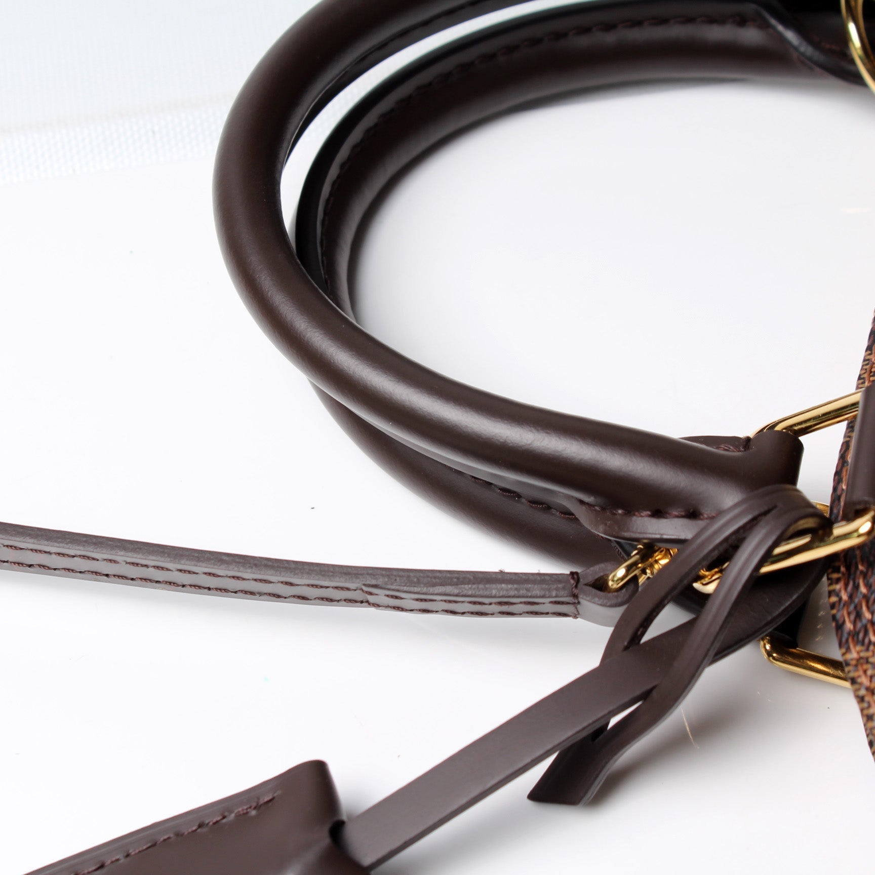 Exterior: The exterior canvas is free of any cracking. The leather details show minor scratching.