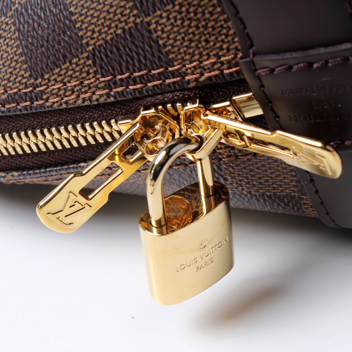 This Louis Vuitton Alma BB is guaranteed 100% . The exterior is in the classic Damier Ebene coated canvas.