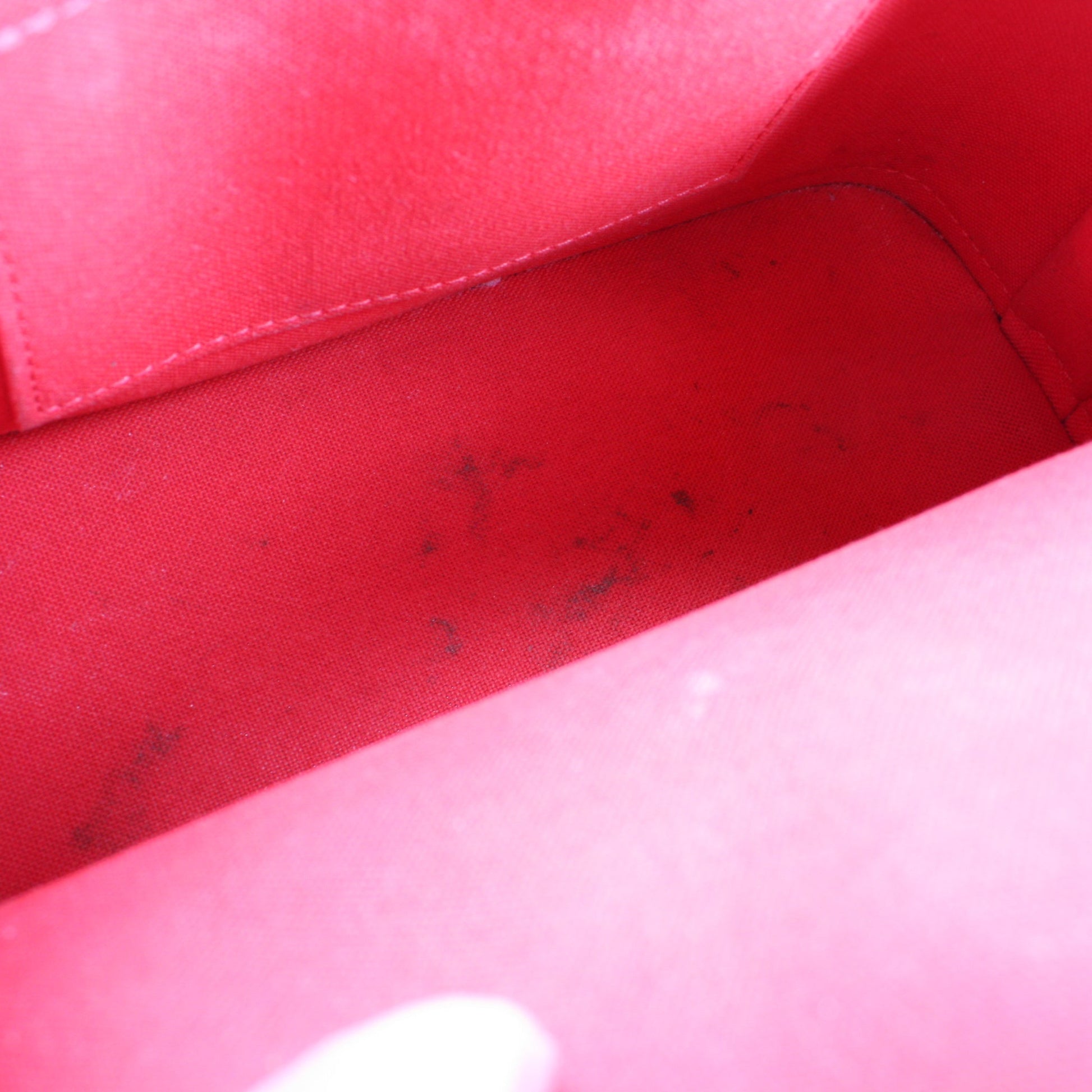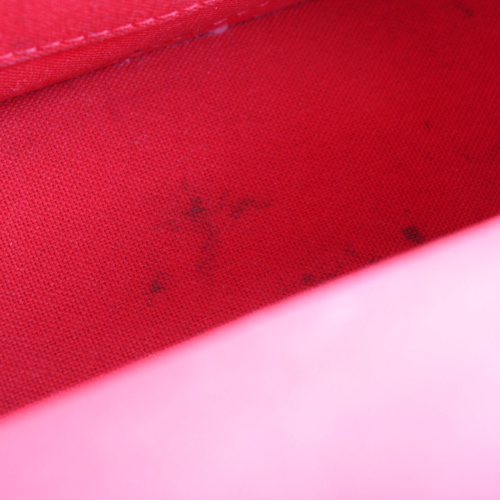 Interior: The interior has staining on the base of the bag. It features one open pocket.