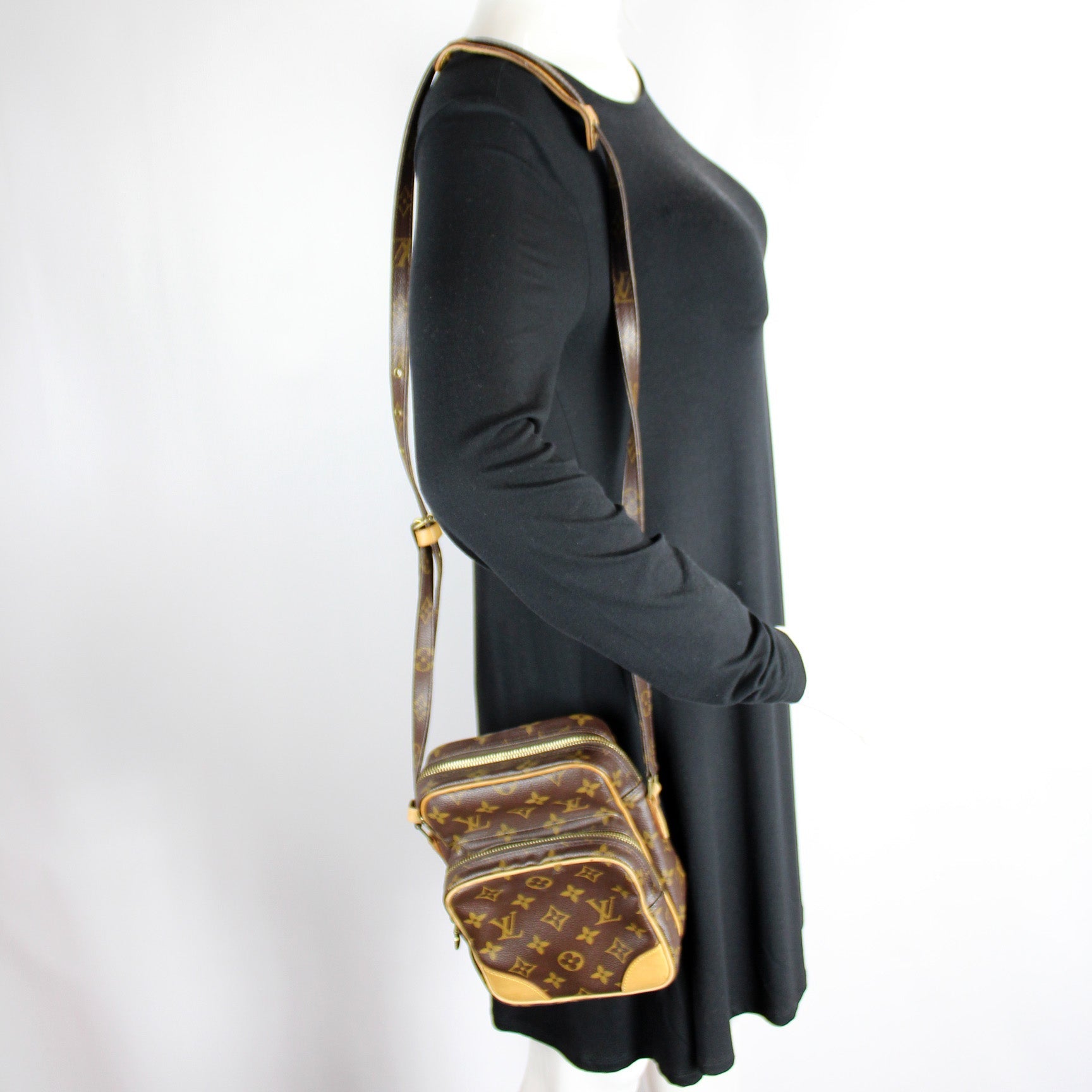 This Louis Vuitton Amazone is guaranteed 100% . The exterior is in the classic Louis Vuitton Monogram coated canvas.