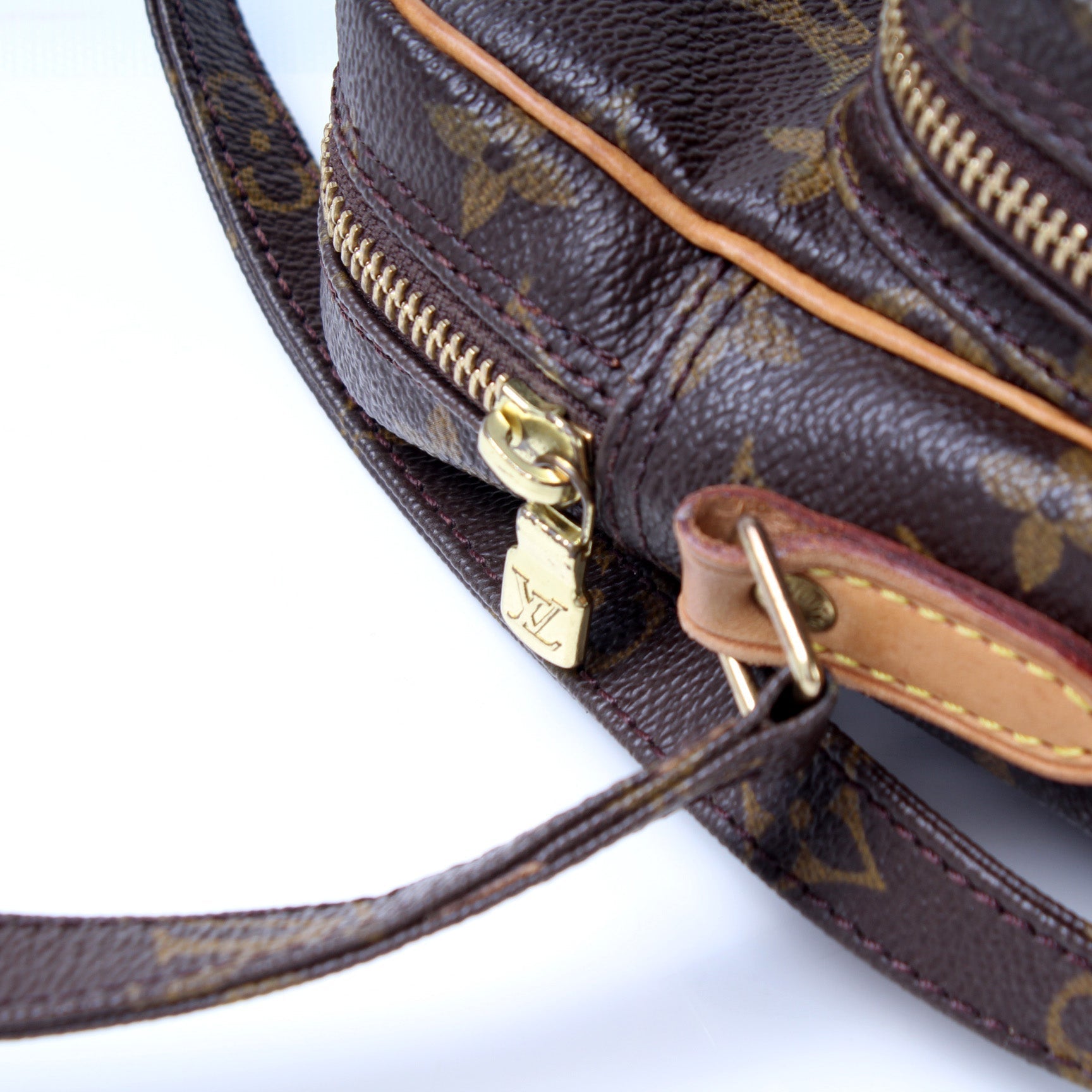 This Louis Vuitton Amazone Mini is guaranteed 100% . The exterior is in the classic Louis Vuitton Monogram coated canvas.
