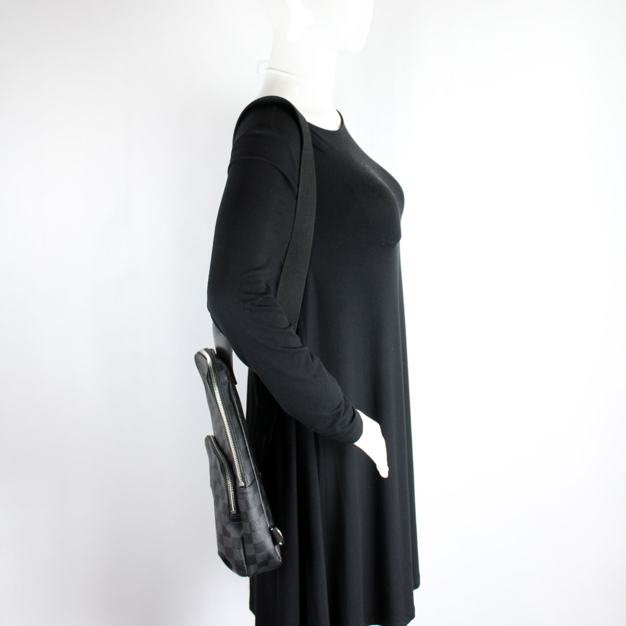 This Louis Vuitton Avenue Sling Bag is guaranteed 100% . The exterior is the Damier Graphite coated canvas.