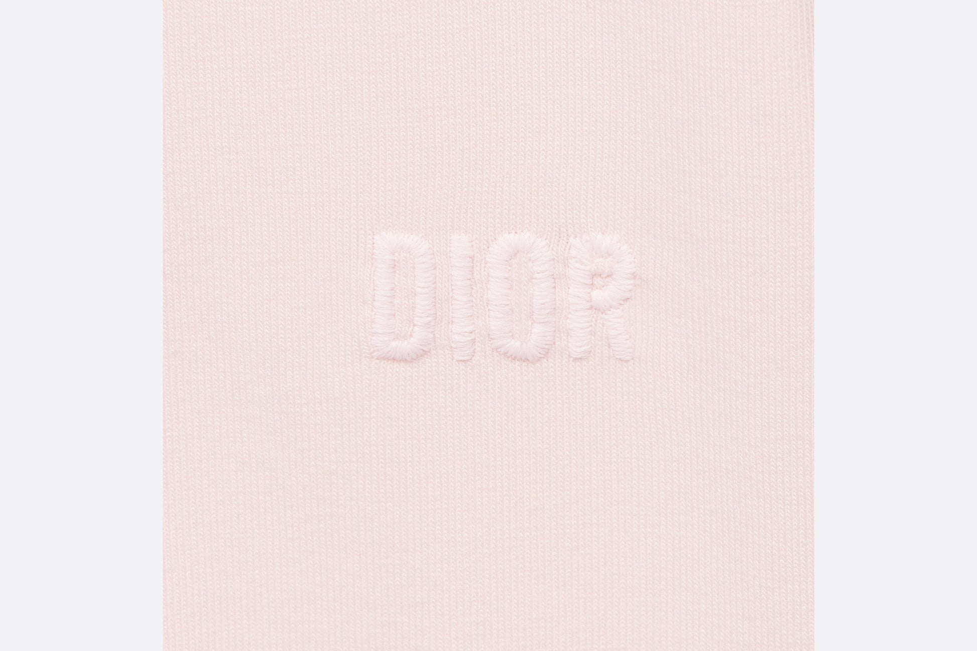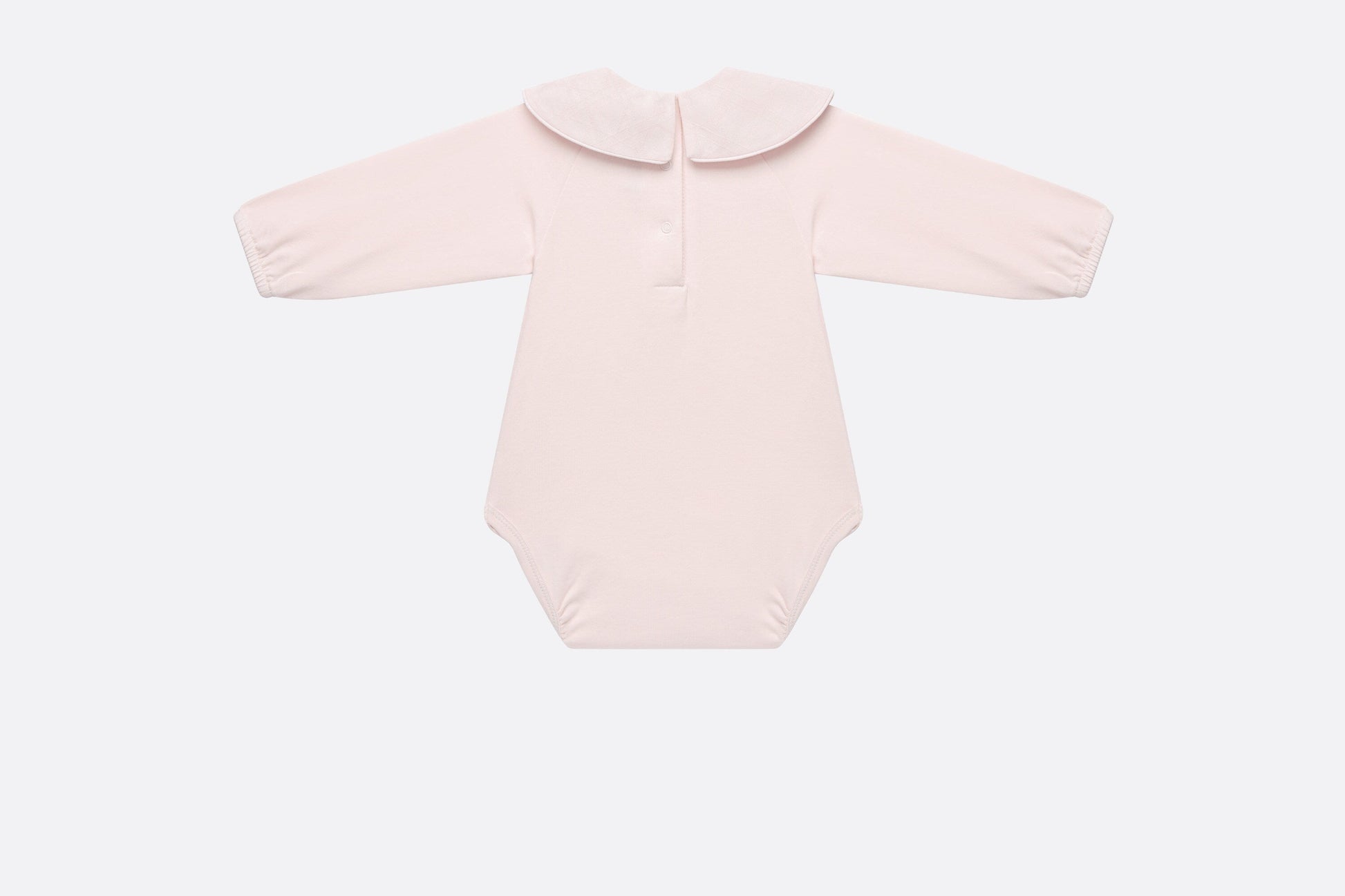 This season, the timeless Cannage line is revisited with soft, round forms inspired by a pebble. Crafted in pale pink jersey and cotton voile, the onesie features a ruffled collar accentuated by the House's iconic tonal motif. Boasting a button placket on the back and inseam for easy dressing, it is enhanced by a tonal Dior embroidery on the bottom left. A true ode to softness, the comfortable, delicate onesie will create an ideal newborn gift.