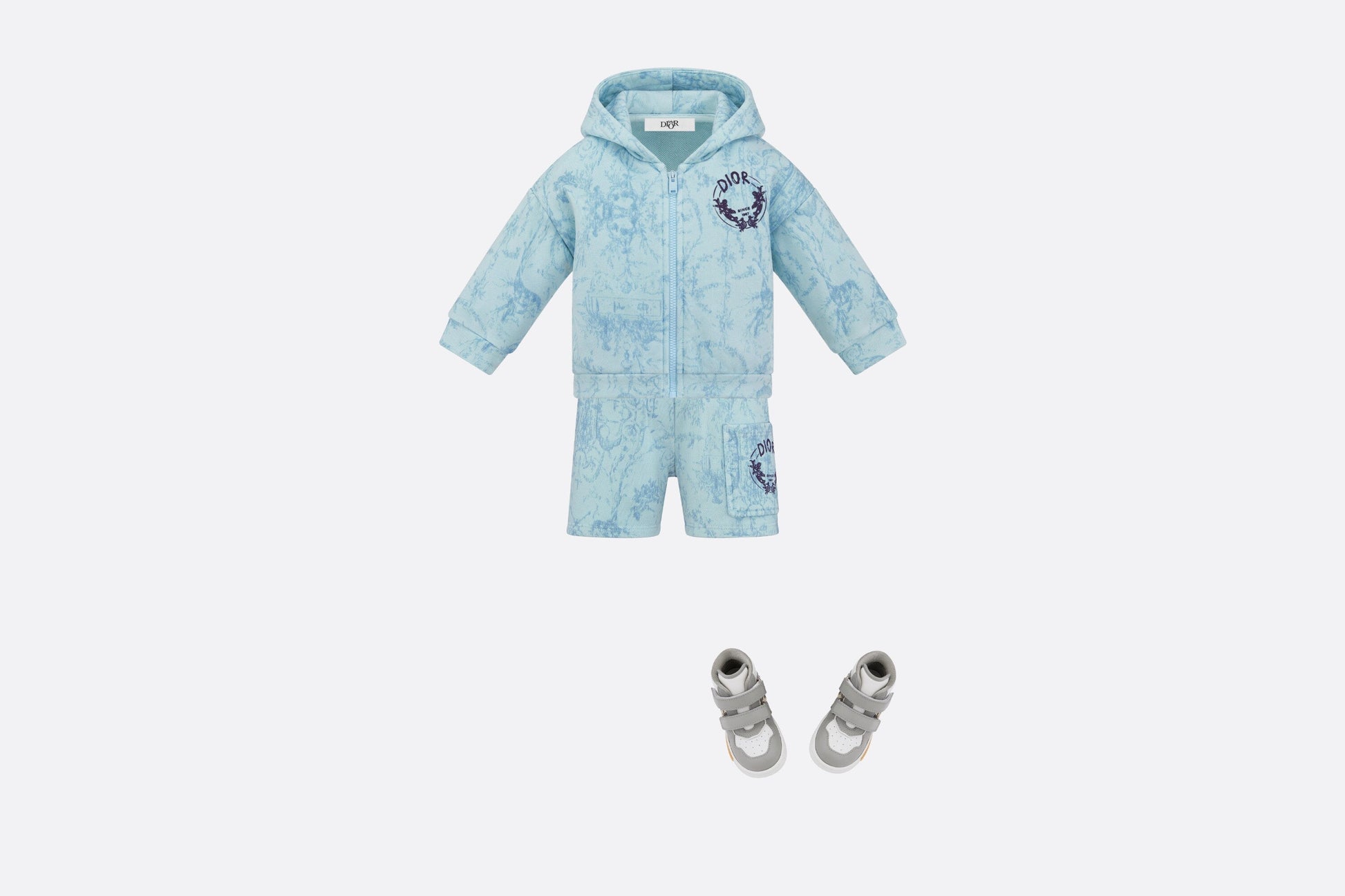 The shorts display the classic Toile de Jouy motif inspired by House archives. Crafted in light blue cotton fleece with the hallmark tonal print in a faded effect, they are completed by a side patch pocket and a stretch waist for an ideal fit. Embellished with a blue Dior 1967 print on the front, the shorts can be worn with the matching sweatshirt from the collection to complete an iconic look.