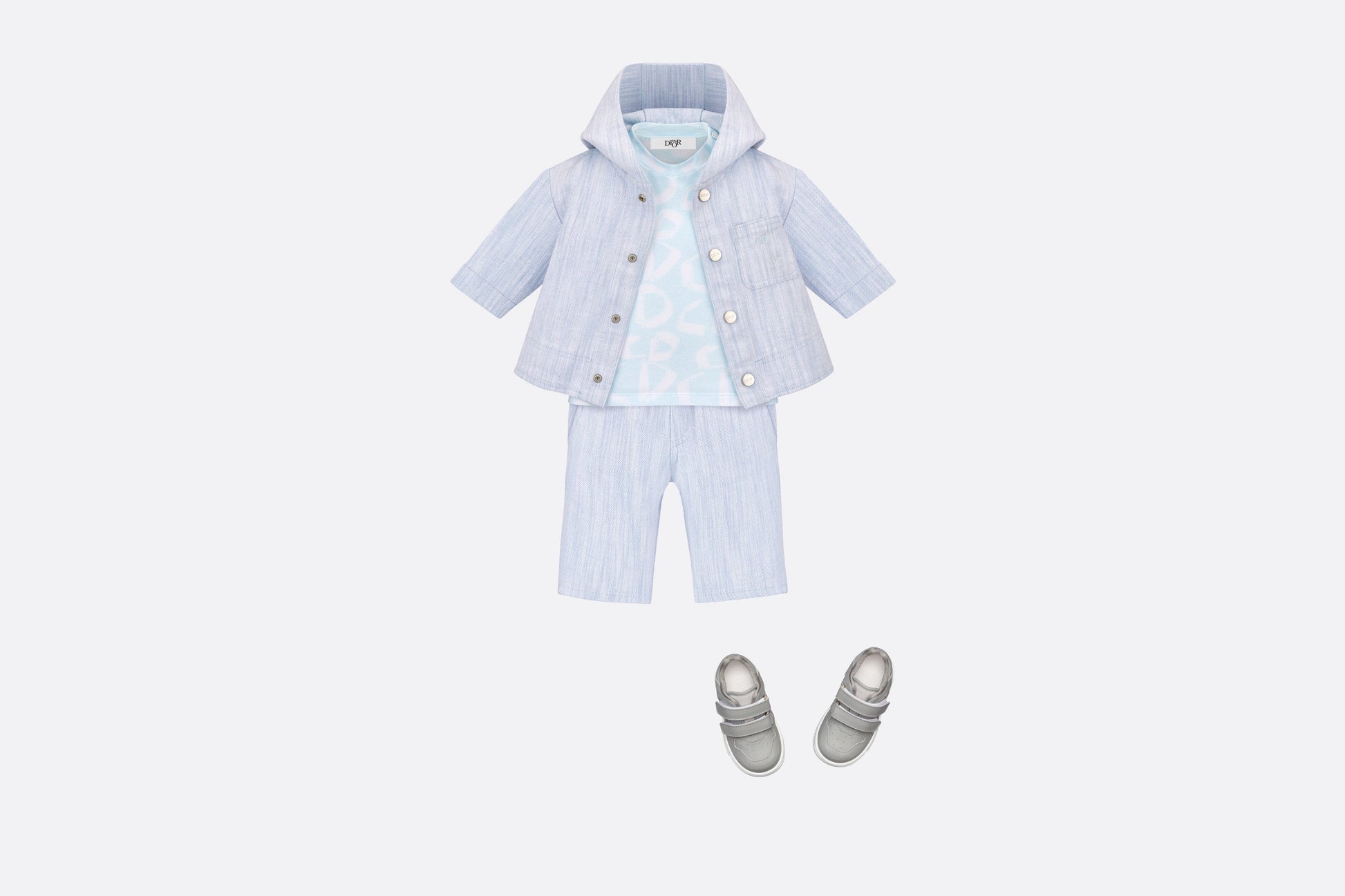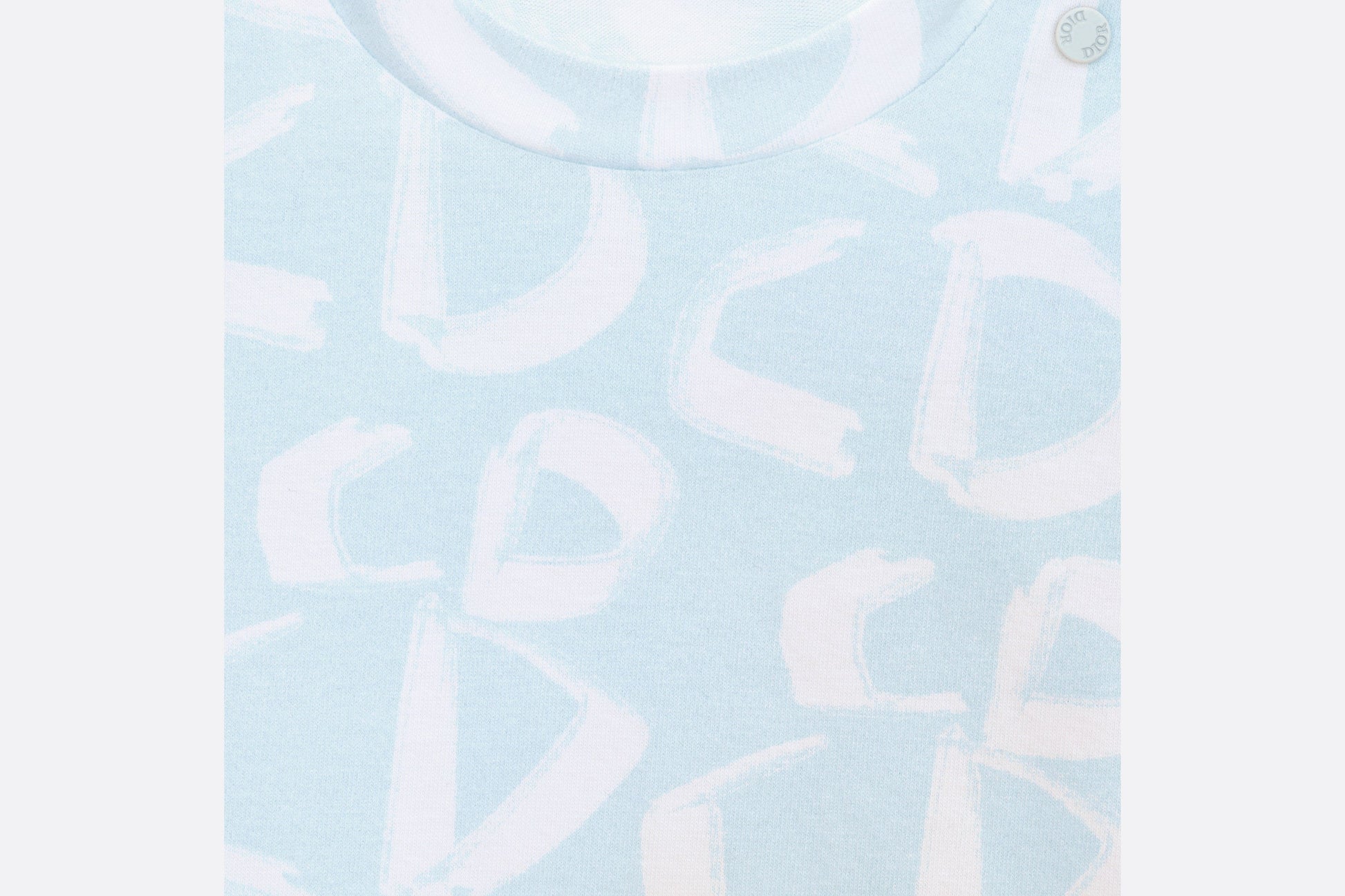 The light blue cotton jersey T-shirt stands out with the all-over ivory revisited CD signature. Its comfortable cut is completed by a snap placket on the shoulder for easy dressing. The dynamic T-shirt can pair effortlessly with pants from the collection to complete a laid-back look.