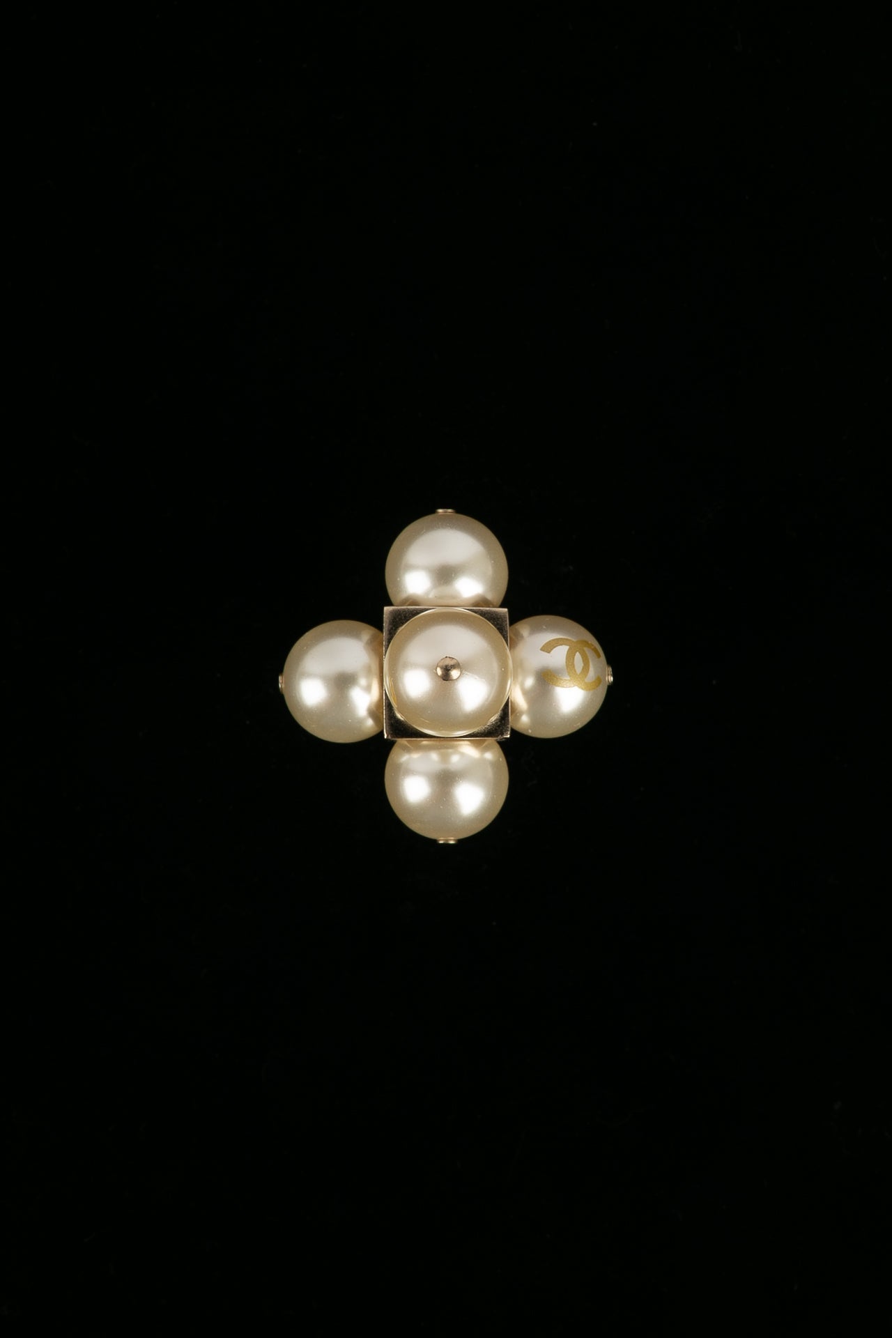 CHANEL -(Made in France) Bague en métal doré et perles nacrées. Collection 2014.