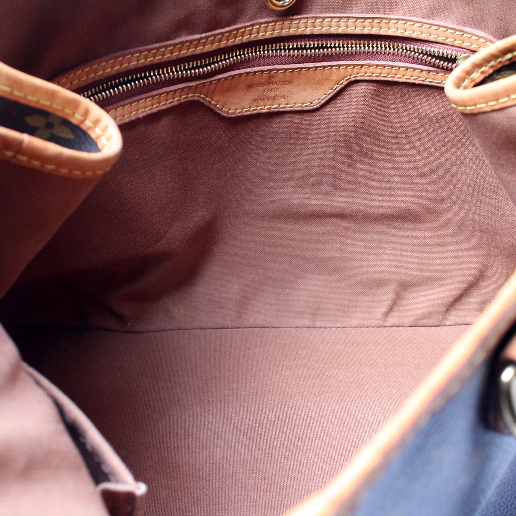Exterior: The exterior Monogram coated canvas is free of any rips or cracks. The corners and leather details show signs of wear as pictured.