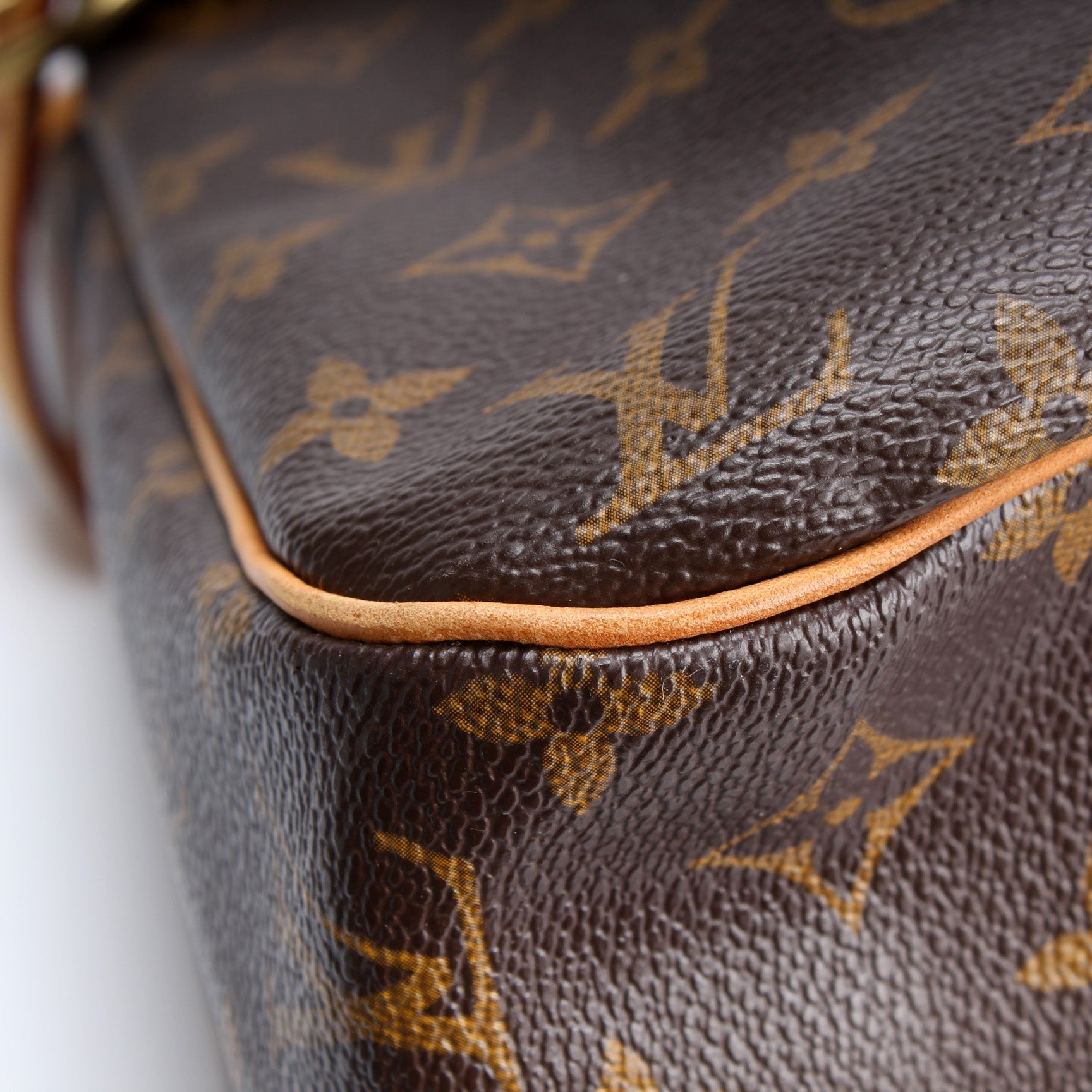 Exterior: The exterior Monogram coated canvas is free of any rips or cracks. The corners and leather details show minor signs of wear as pictured.