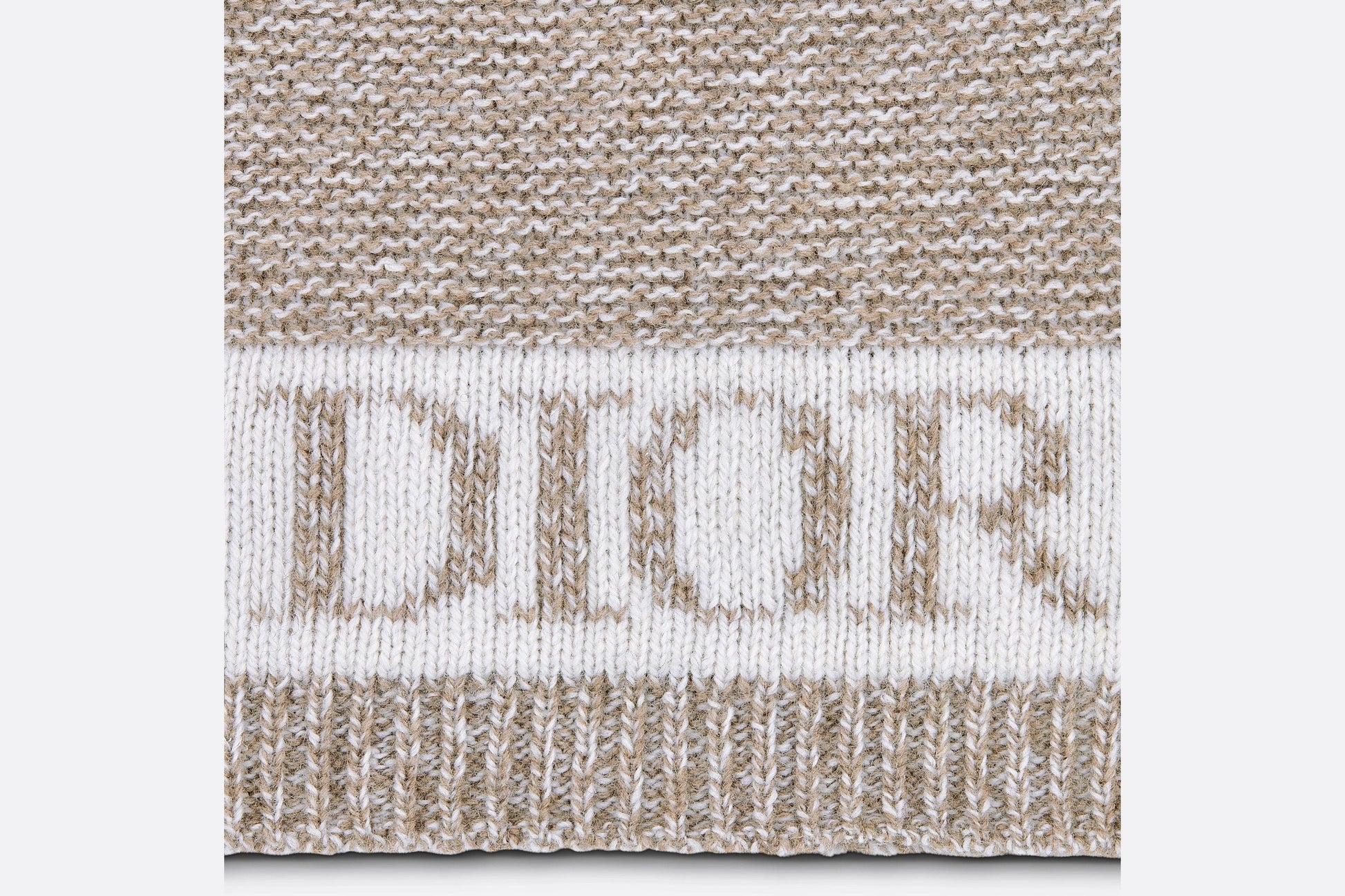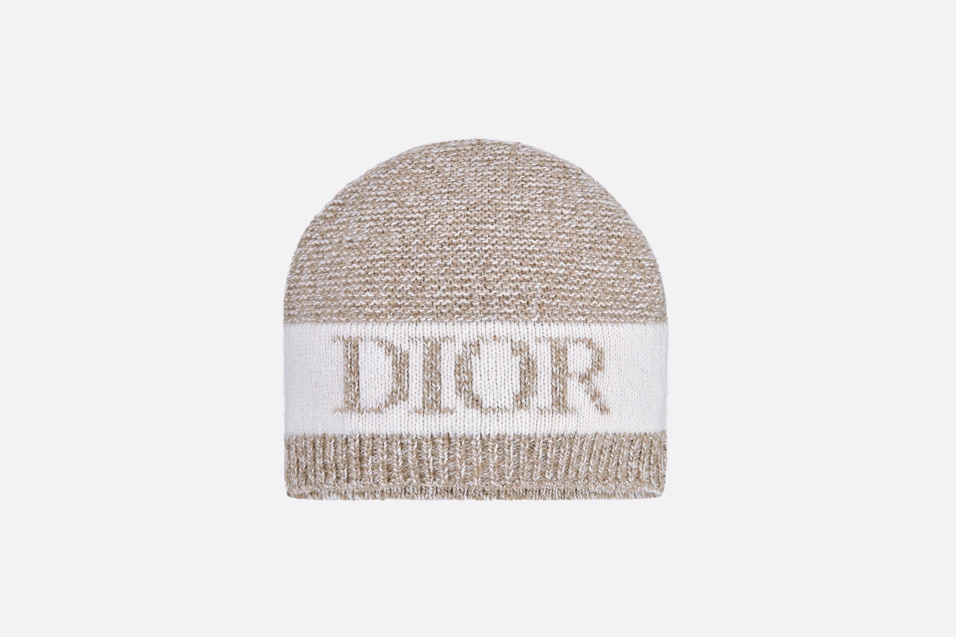 The warm beanie offers a play on contrasts. Crafted in a wool and cashmere blend, it combines a garter stitch and an ivory jersey knit band with a heathered beige jacquard 'DIOR' signature. The beanie will complete a contemporary seasonal look when paired with the collection’s sweater and pants.