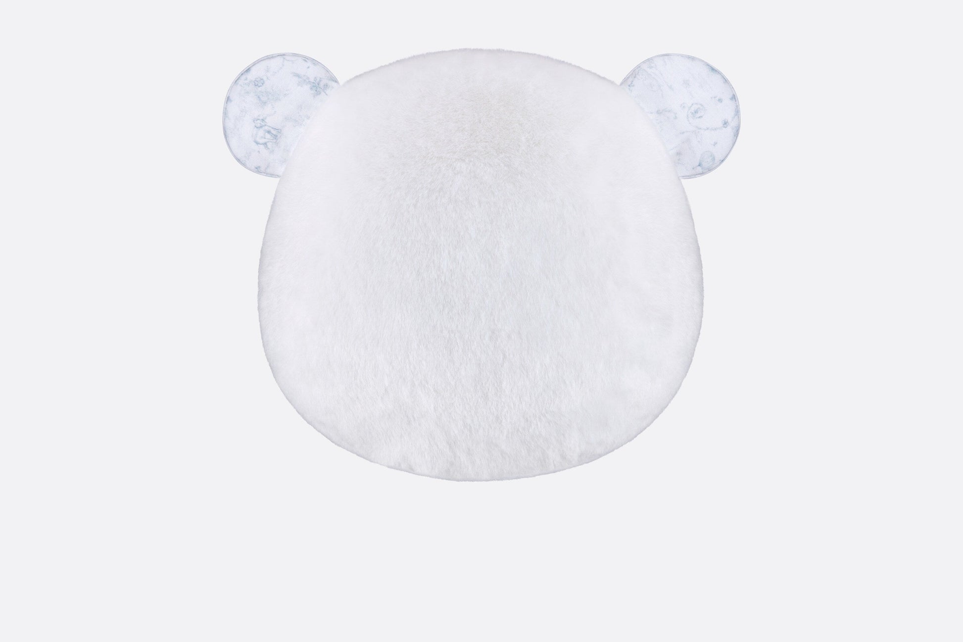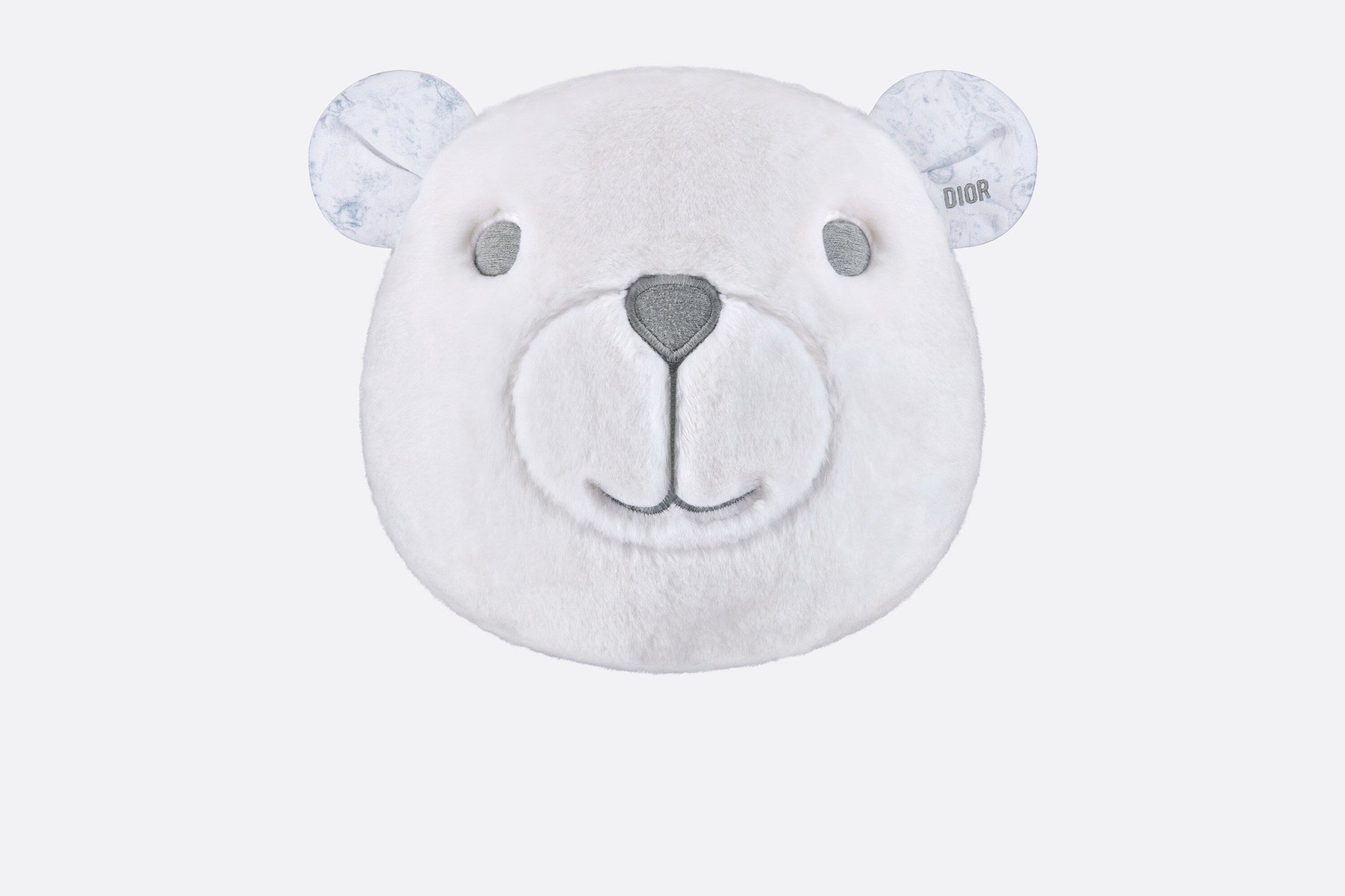 The stuffed toy showcases a bear head and pays homage to the House's Toile de Jouy icon. Crafted in ivory faux fur, it is enhanced by cotton jersey ears featuring the hallmark motif. The large stuffed toy is soft and warm and will accompany children from their earliest moments as both a pillow and lovey, and is an ideal gift for newborns.