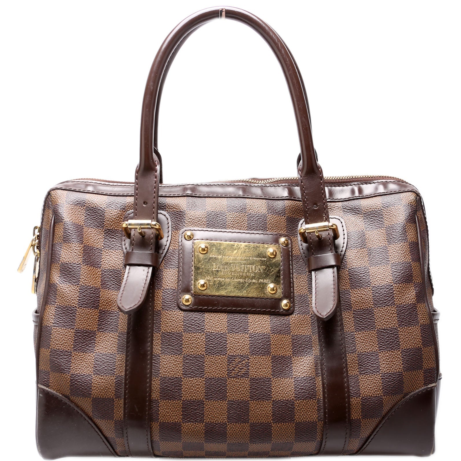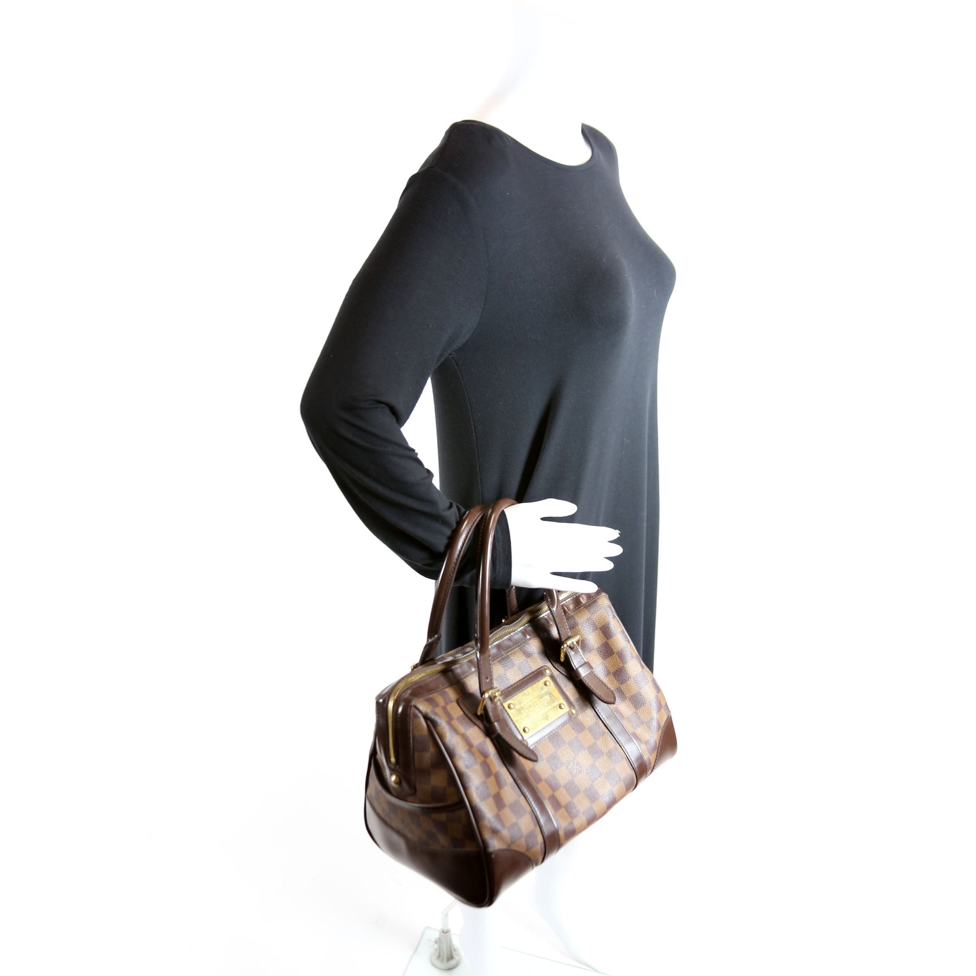 This Louis Vuitton Berkeley is guaranteed 100% . The exterior is in the classic Louis Vuitton Damier Ebene coated canvas.