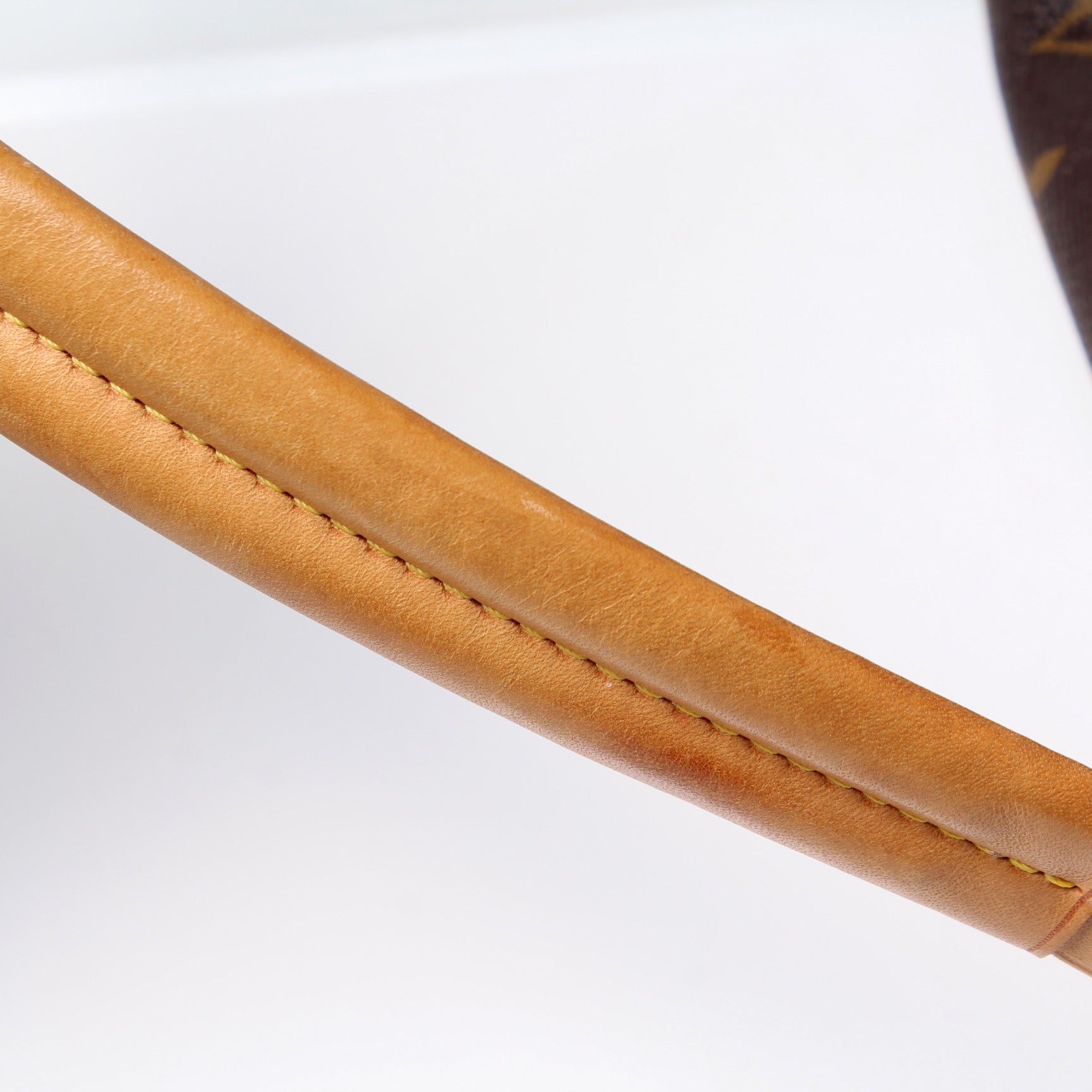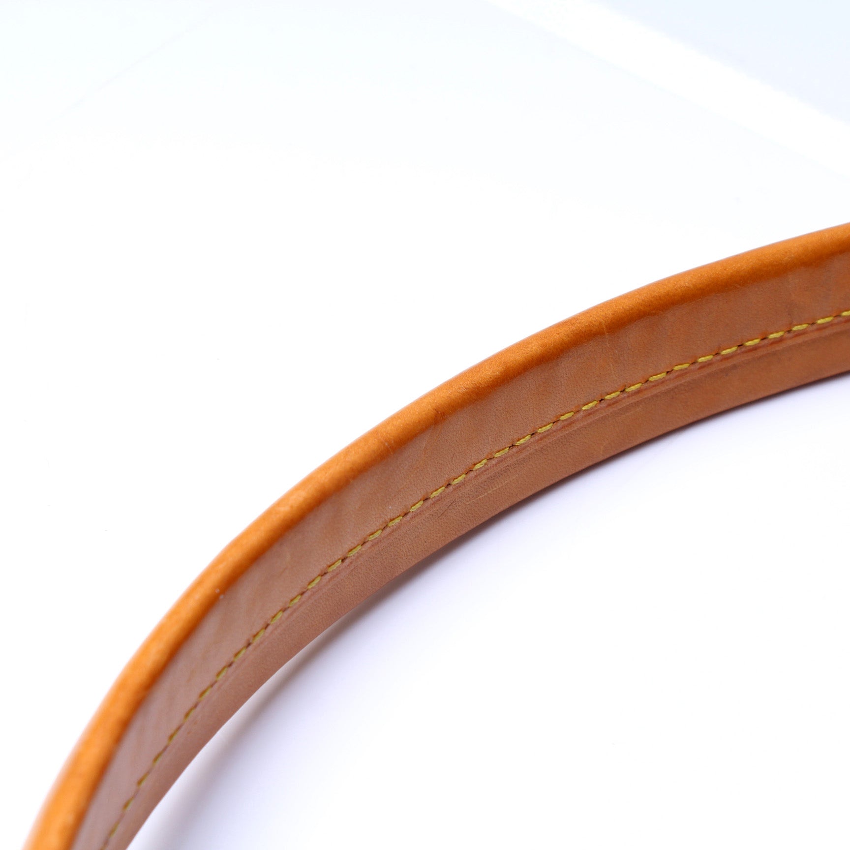 Strap: The leather shoulder strap has minor discoloration throughout.