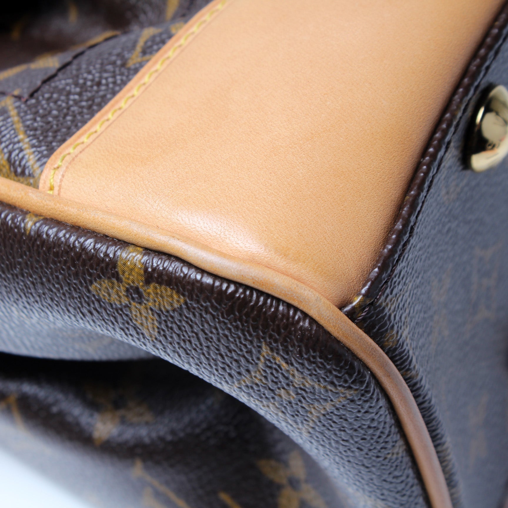 Exterior: The exterior Monogram coated canvas is free of any rips or cracks. The corners and leather details show minor signs of wear.