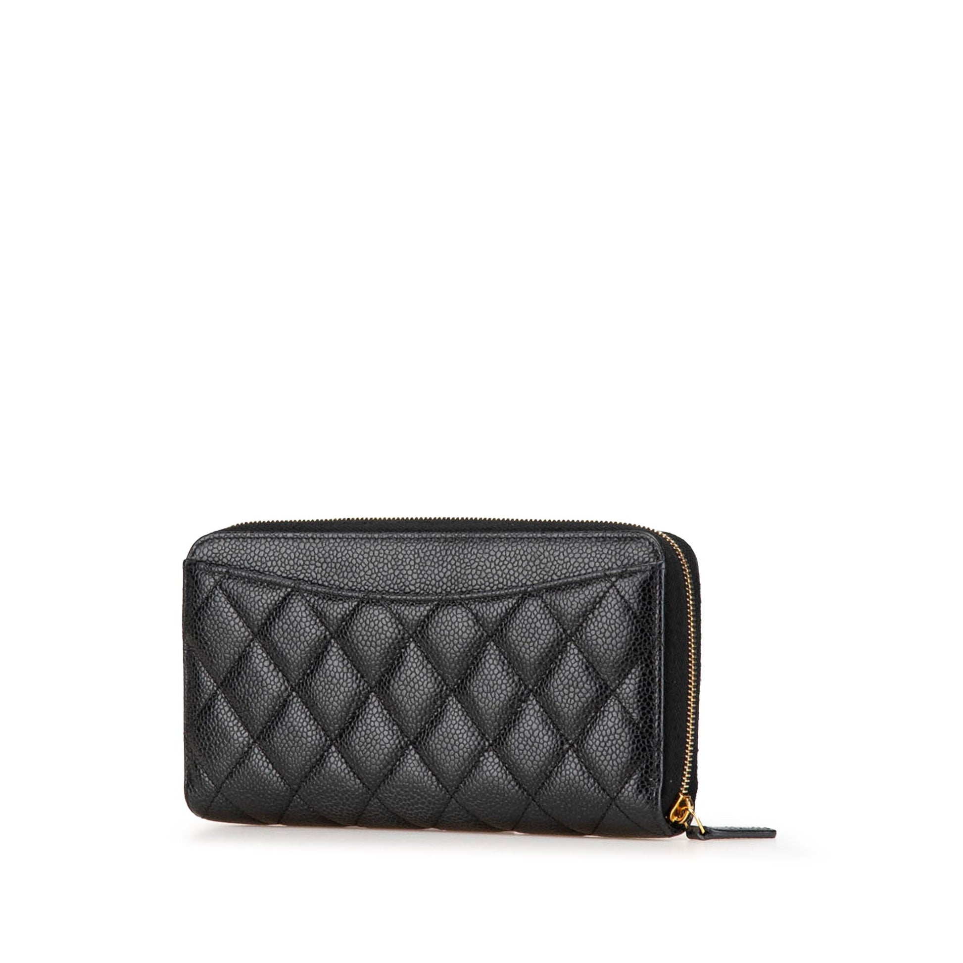 Black Chanel Quilted Caviar CC Zip Around Long Wallet