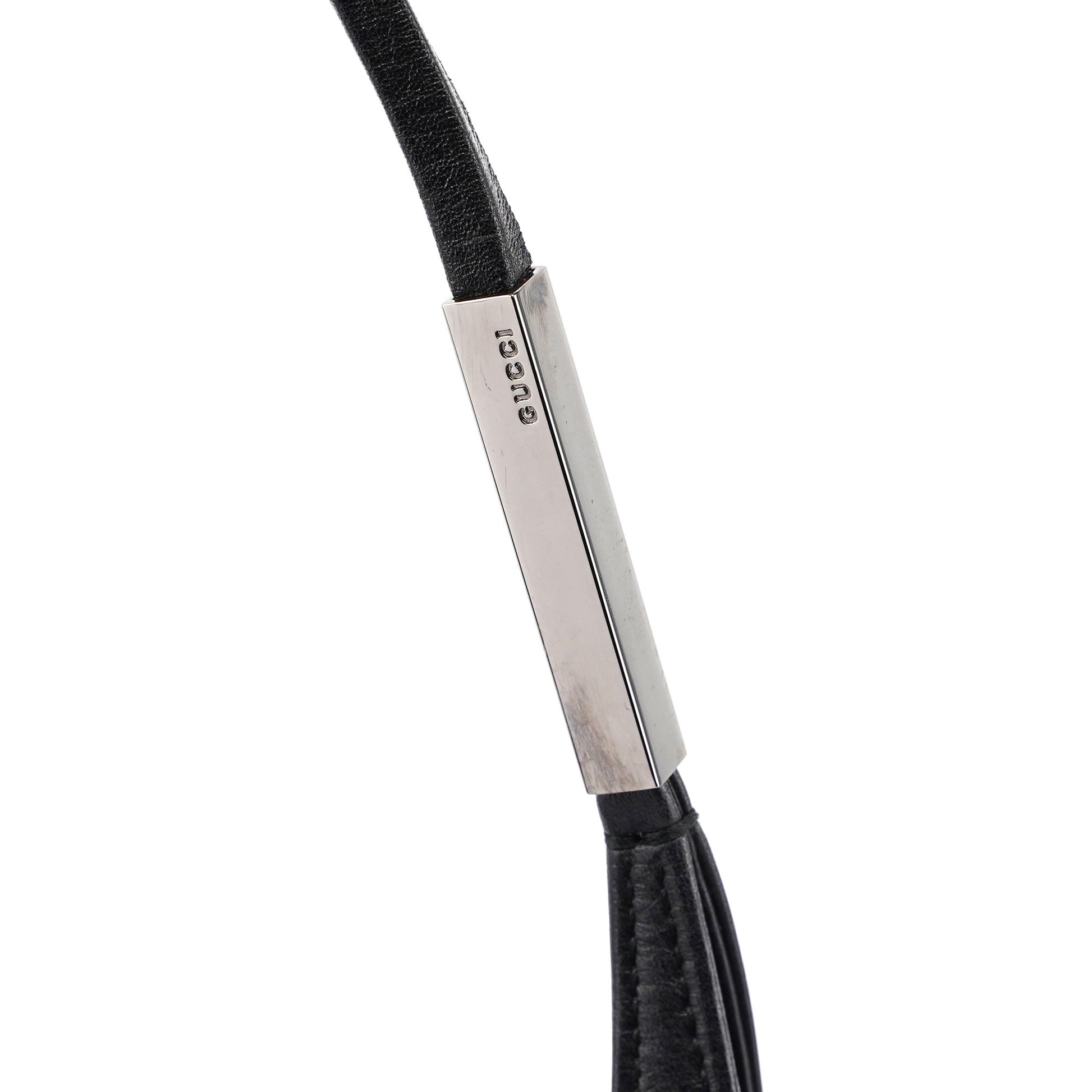 Designed by Tom Ford in the late 1990's, this Gucci Vitello shoulder bag exudes elegance. Handcrafted in black calfskin leather, it boasts silver-tone hardware engraved with the Gucci logo. The magnetic closure opens to a calfskin-lined interior featuring a zipper pocket.