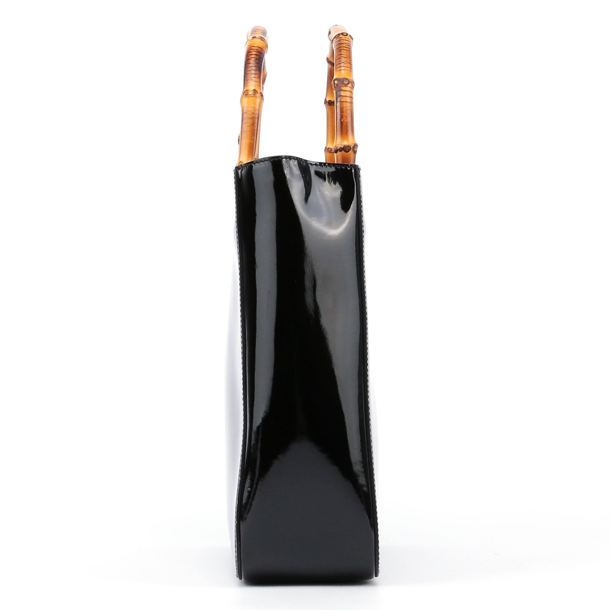 REPOST Black Patent Leather Bamboo Tote