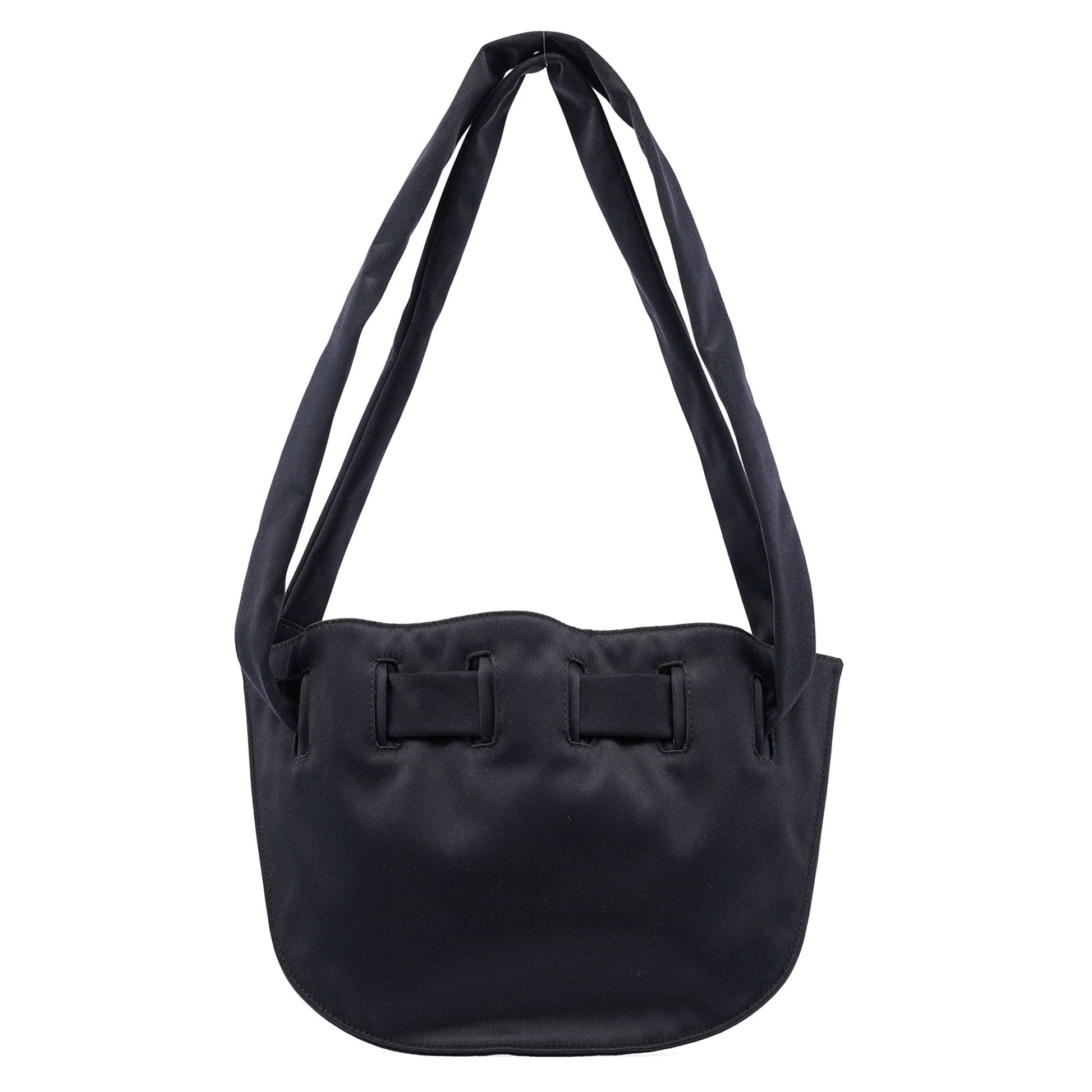 Black Satin Drawstring Shoulder Bag