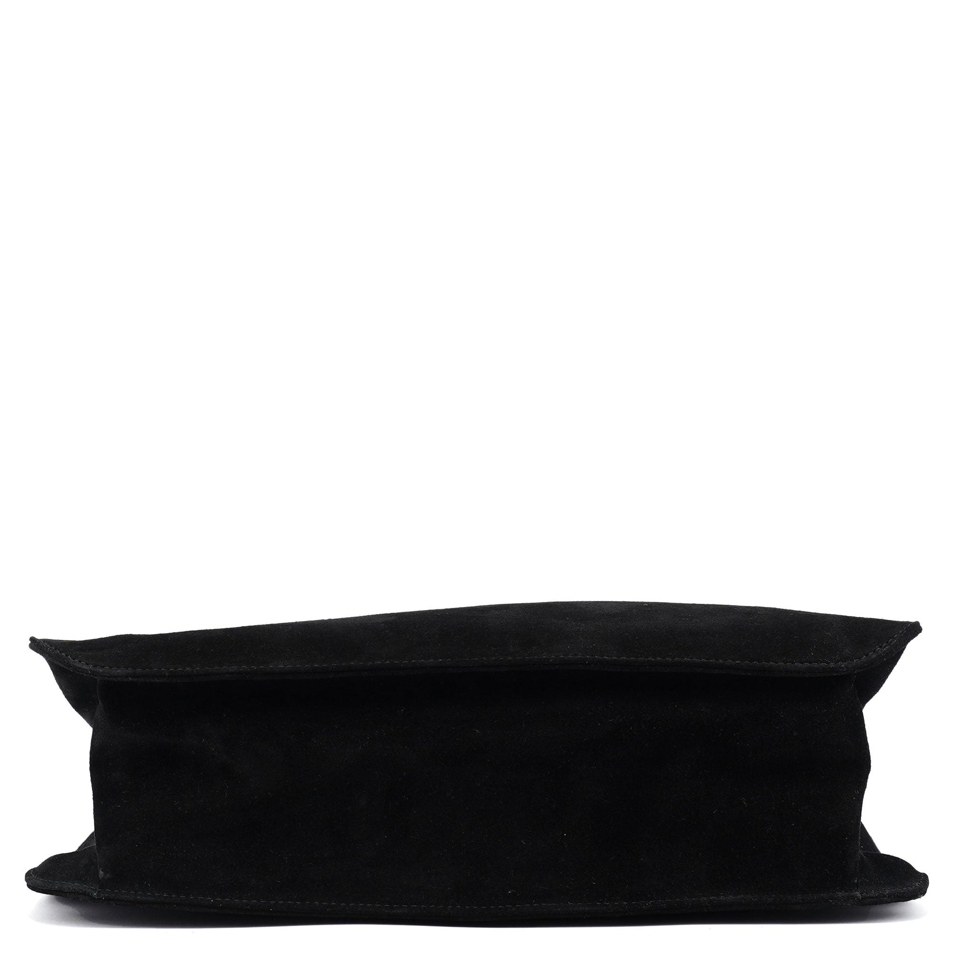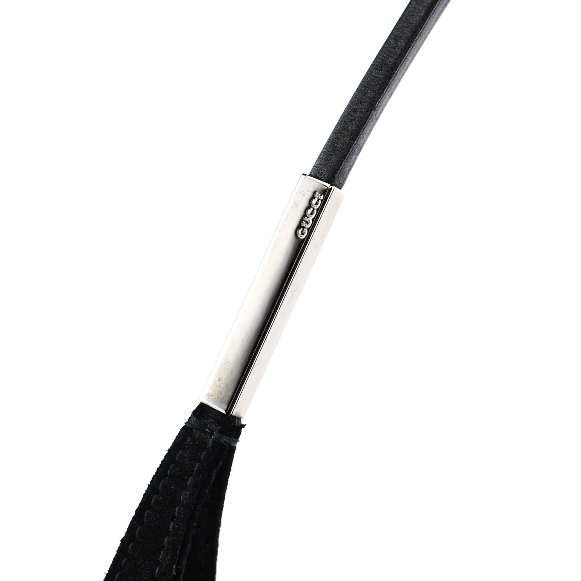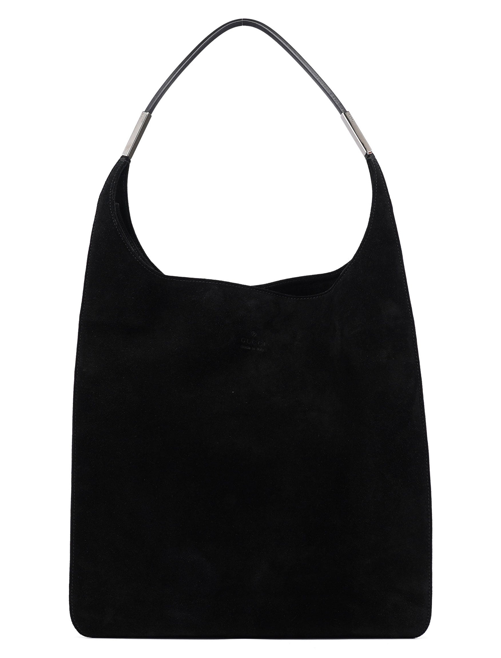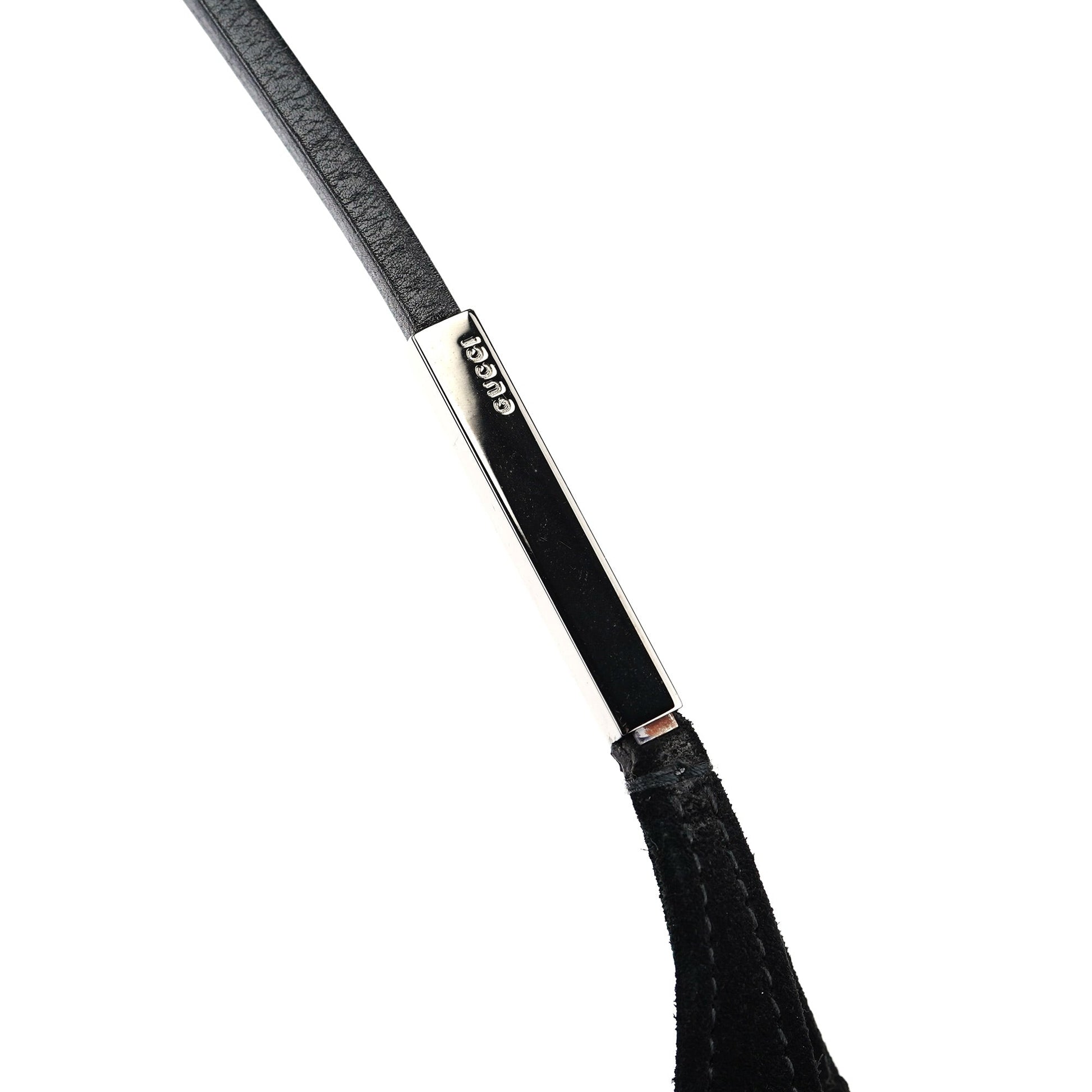 Designed by Tom Ford in the late 1990s, the Gucci Scamosciato shoulder bag is handcrafted from black suede and tonal calfskin leather. It features silver-tone hardware with Gucci logo engraving, a magnetic closure, and a suede-lined interior with a zipper pocket. The Gucci logo is embossed at the front, adding a signature touch.
