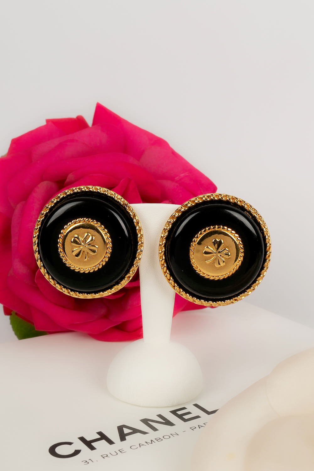 CHANEL -Boucles d'oreilles clips en métal doré et bakelite.