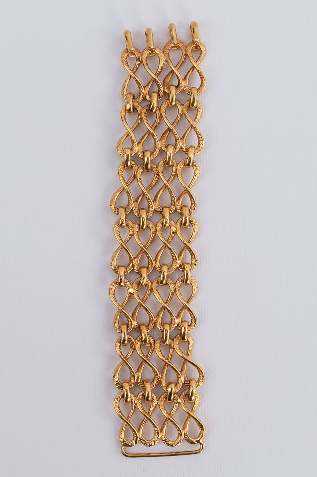 CHANEL (Made in France) Bracelet articulé en métal doré composé de rangs de chaines.