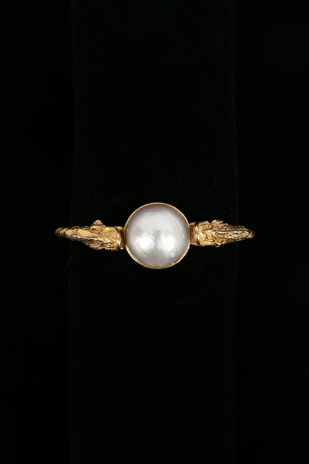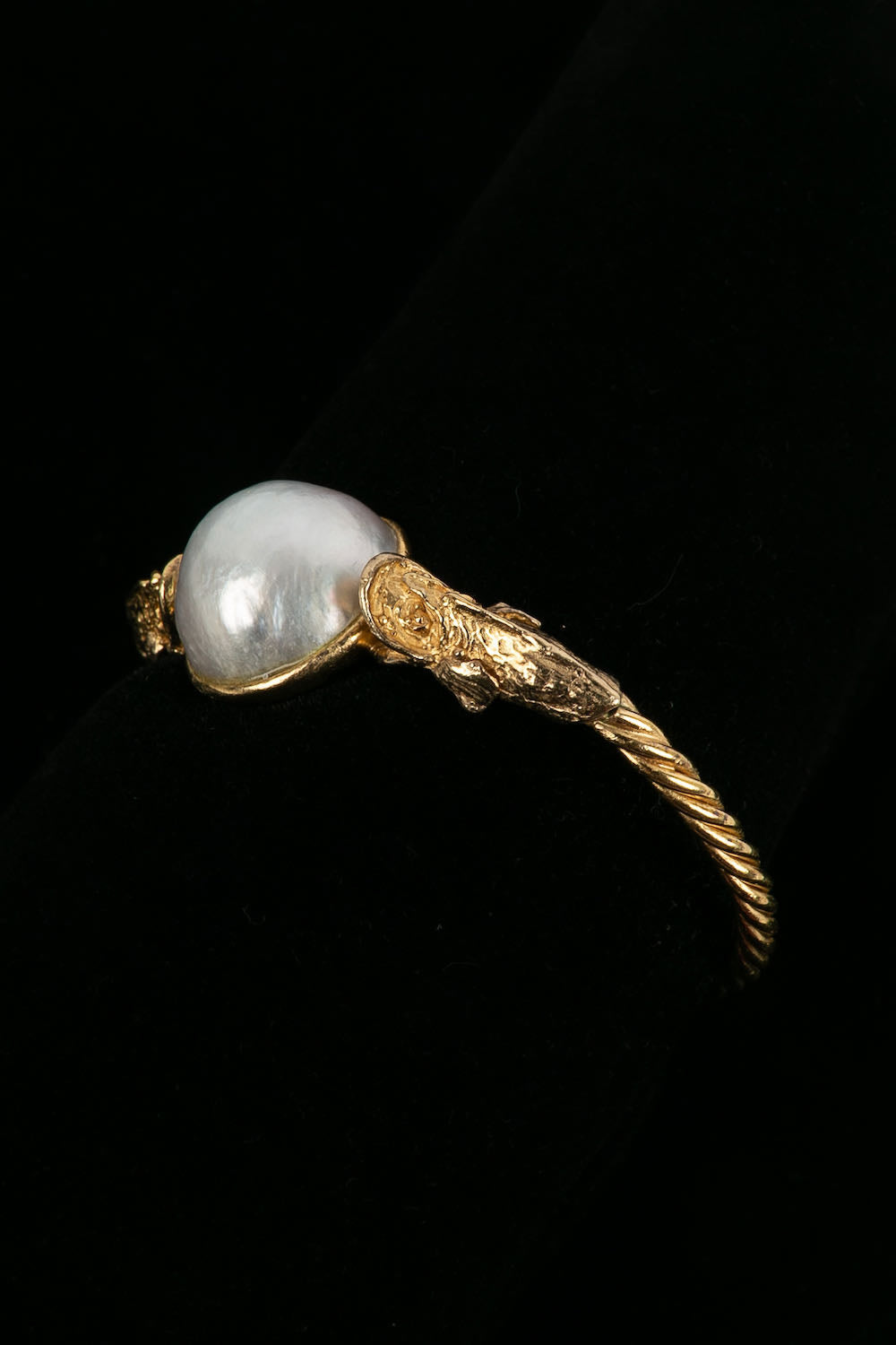 CHANEL -Bracelet ancien en métal doré et cabochon nacré.