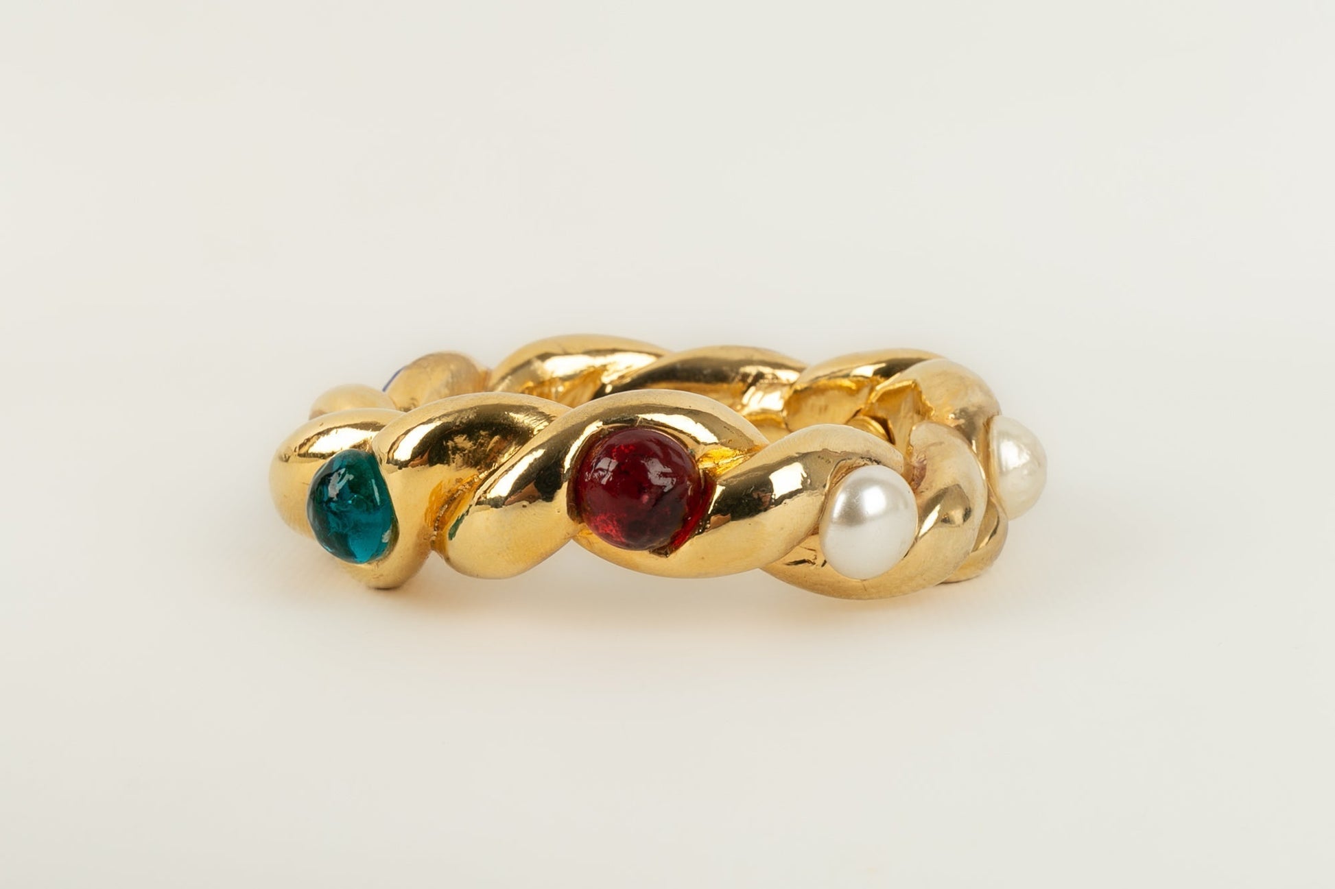CHANEL - (Made in France) Bracelet en métal doré et pâte de verre.