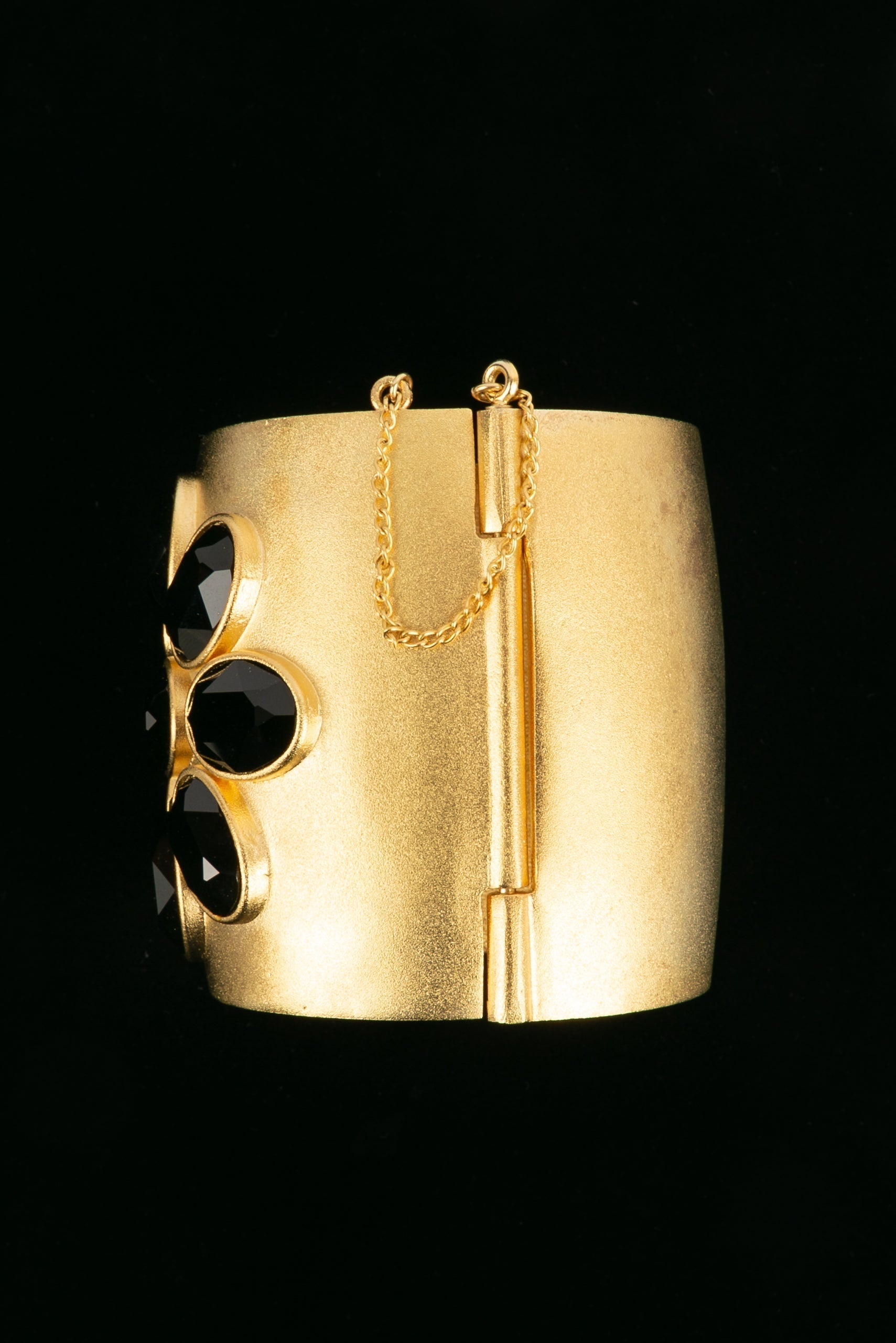 CHANEL -(Made in France) Bracelet manchette en métal doré et strass noir. Collection Automne-Hiver 2001.