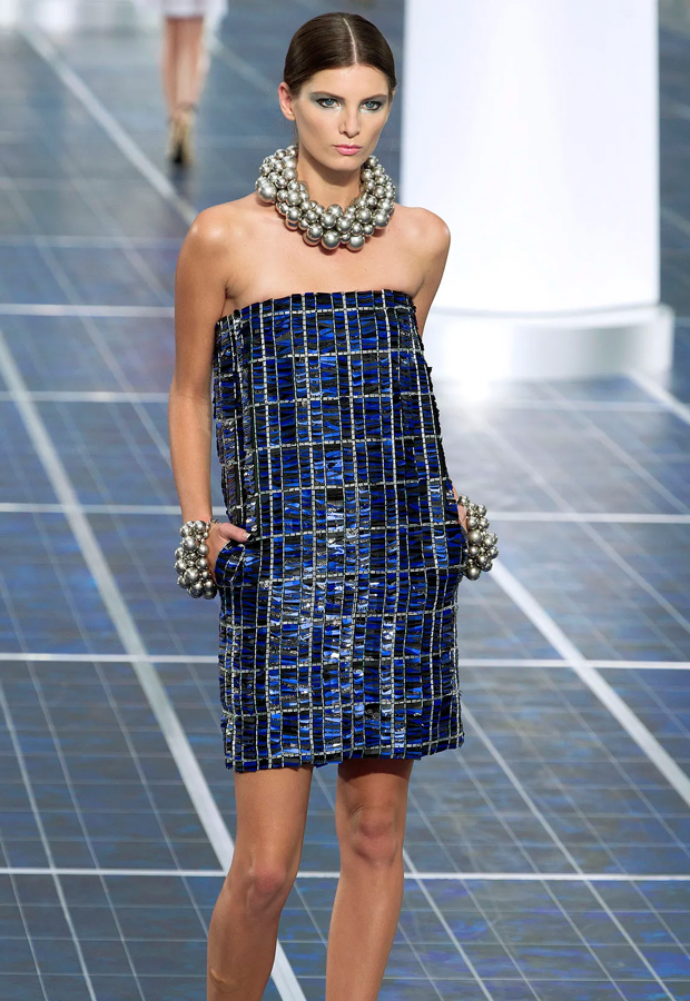 CHANEL -(Made in Italy) Bracelet composé de sphères en métal argenté. Collection Été 2013.