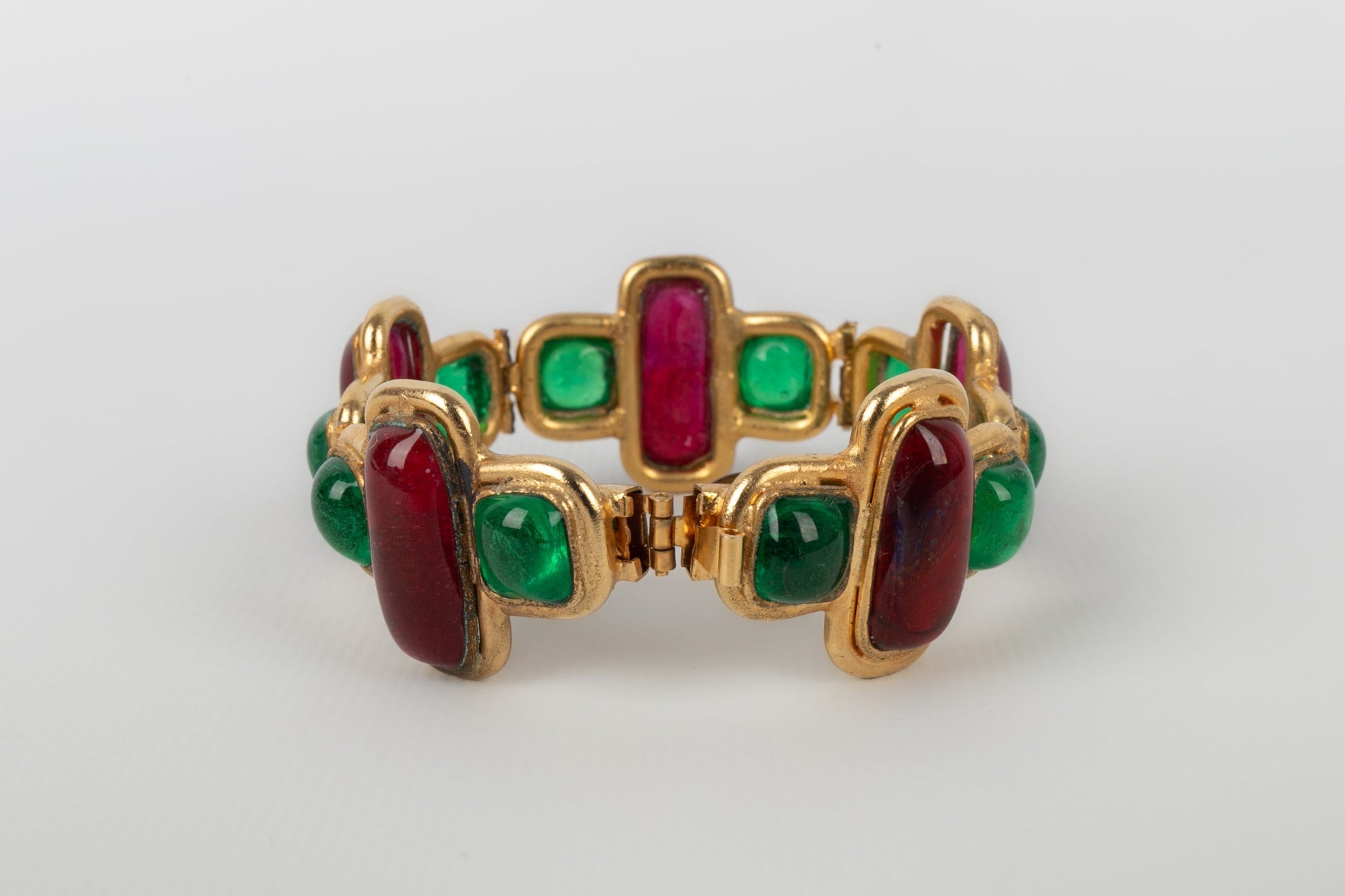 CHANEL - Bracelet en métal doré et pâte de verre. Travail de l'atelier Gripoix pour la maison Chanel.