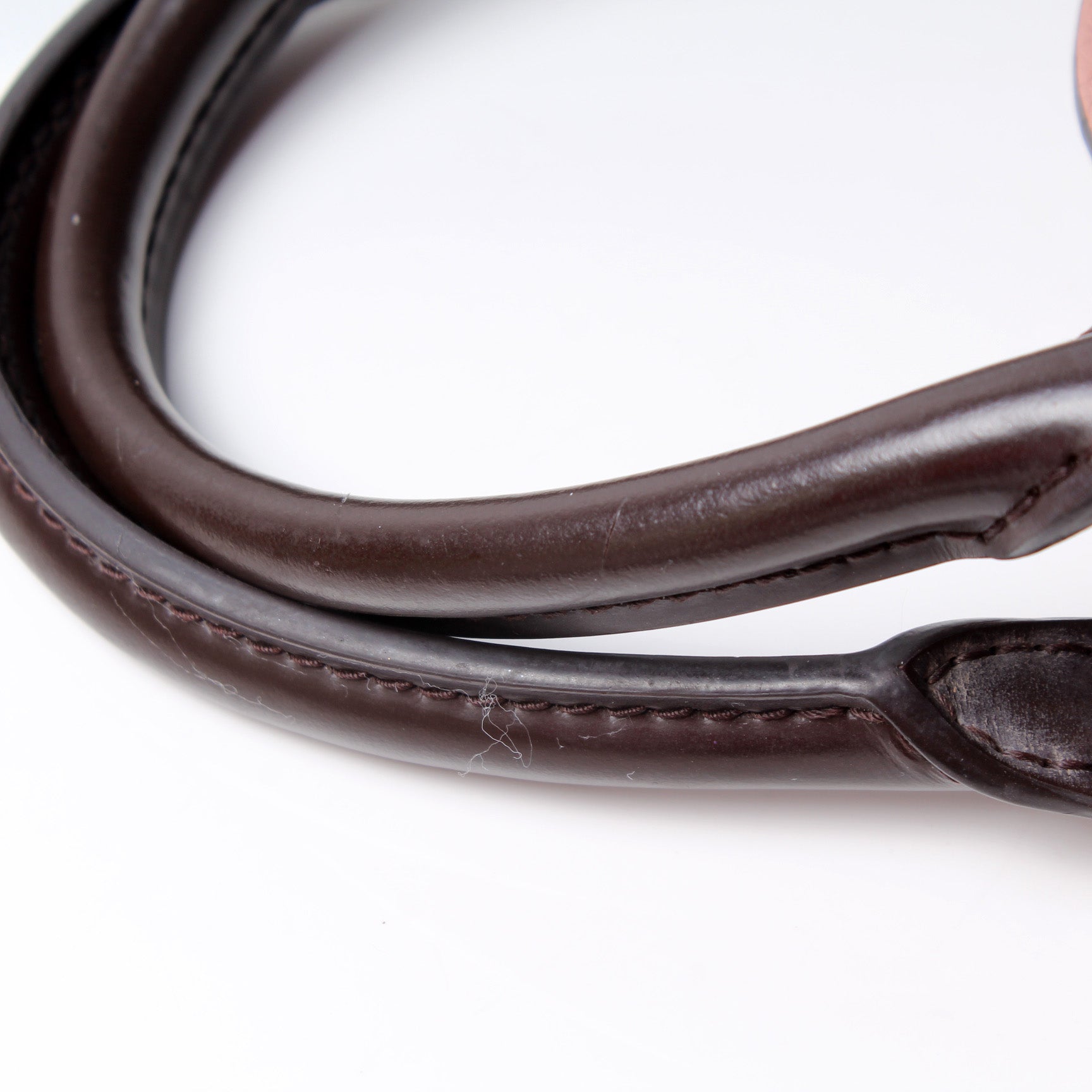 Exterior: The exterior canvas is free of any cracking. There is discoloration near the strap connection points. The corners show signs of wear.
